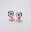 One of Deakin & Francis’ most enduring designs, this elegant dress set pairs warm rose gold with the luminous beauty of mother-of-pearl and the brilliance of sapphire. Handcrafted in England, each cufflink and stud features a perfectly hand-cut white nacre inlay, centered with a striking sapphire blue stone that adds depth and refinement.