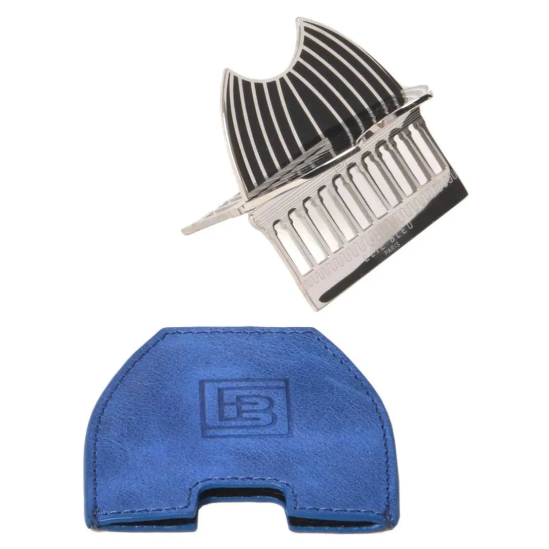 A Kirby Allison Petrol Blue Cigar Stand featuring a calfskin leather case for holding a Les Fines Lames cigar.