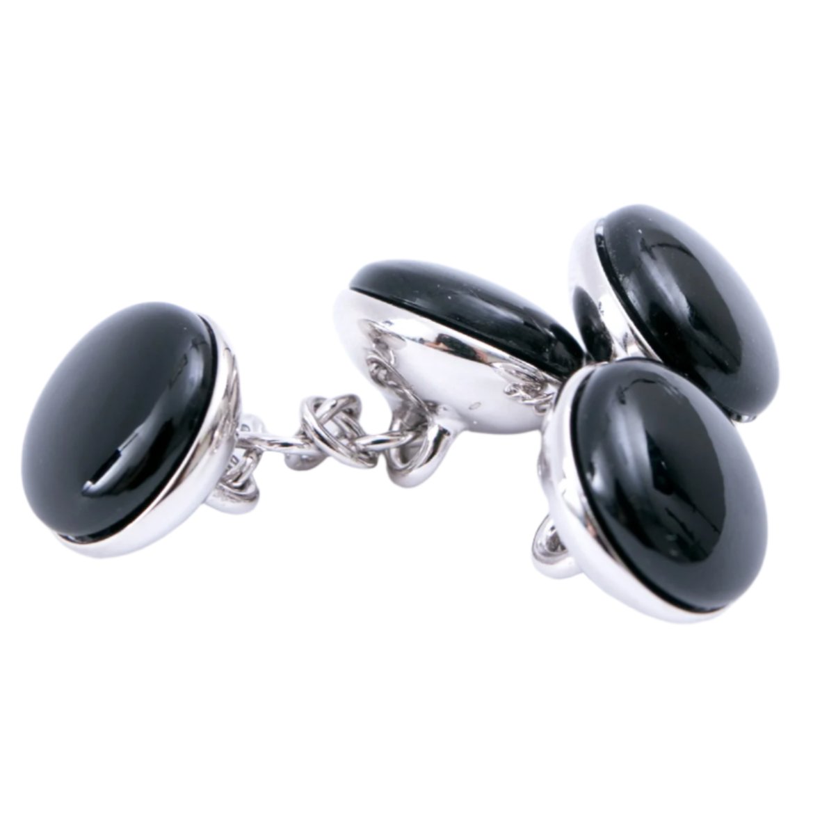 Onyx Stone Rhodium Plated Capsule Cufflinks