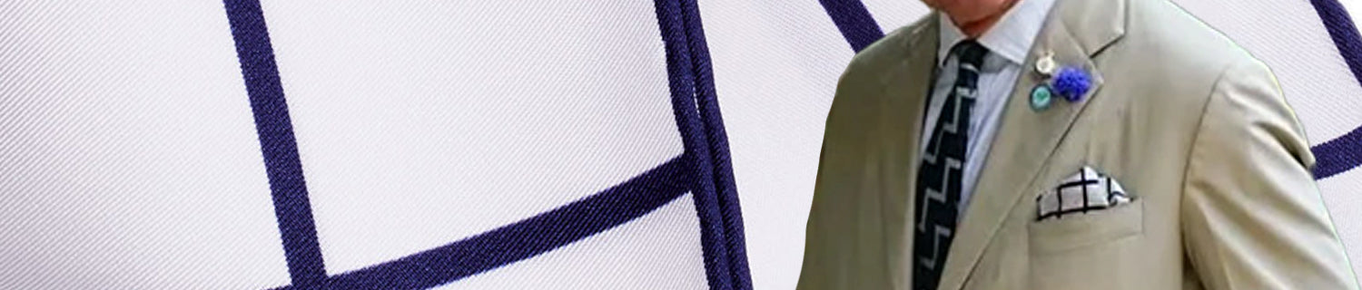 Our Sovereign Grade Prince of Wales Pocket Square is inspired by a favorite pocket square of King Charles (formerly Prince of Wales) is often seen wearing.