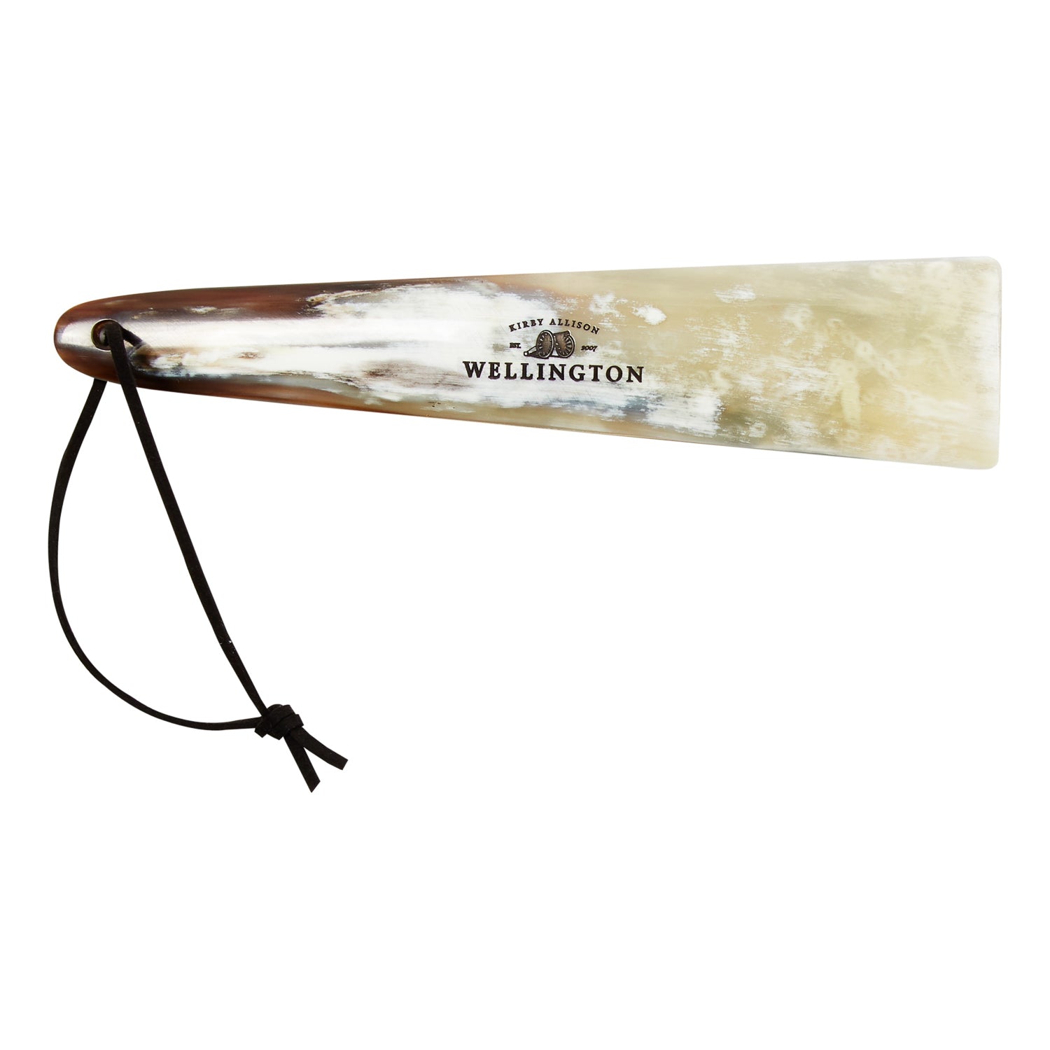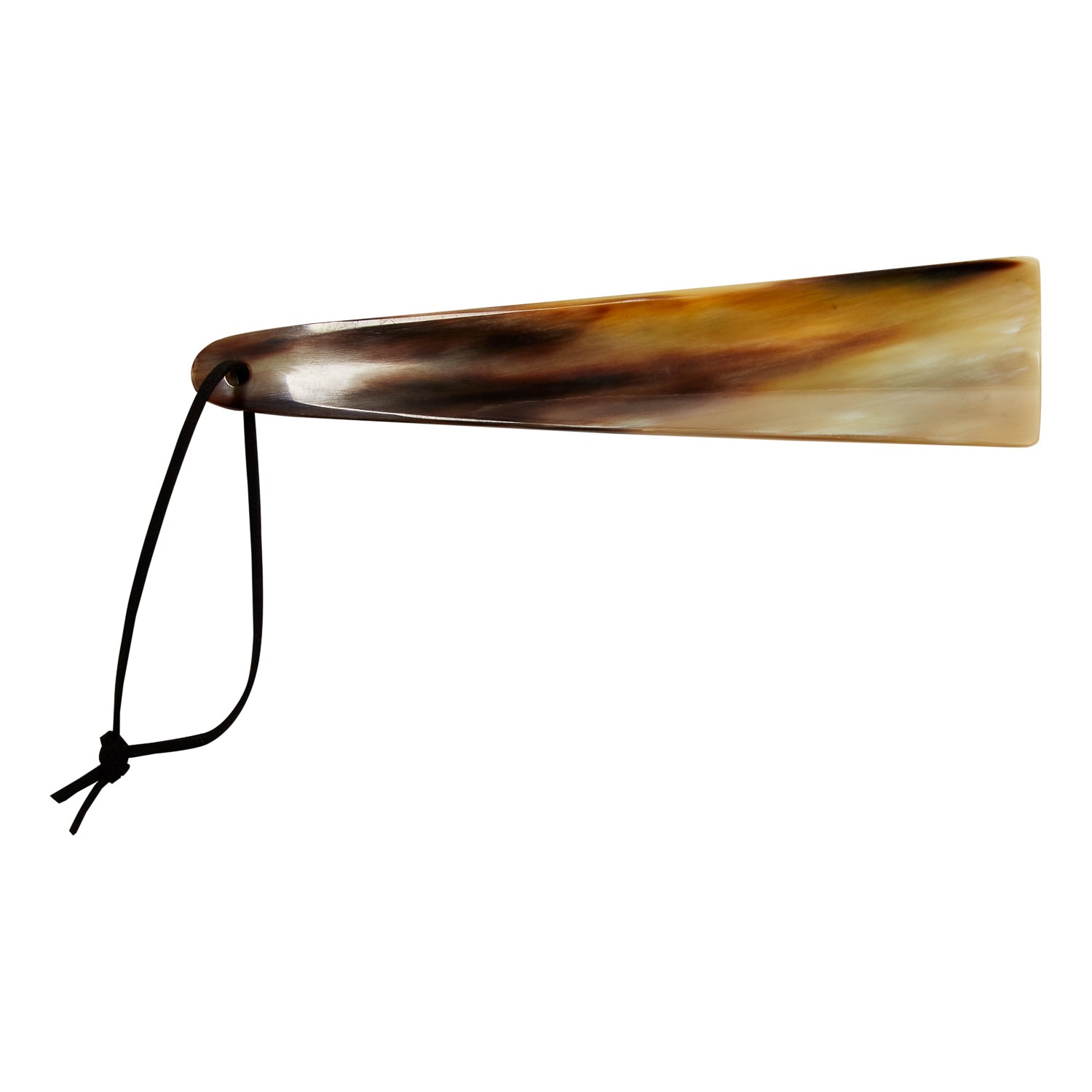Handcrafted from ox horn in Cumbria, England, by skilled artisans using techniques that have remained unchanged for decades, each shoehorn features a totally unique marbling of creams, browns, and black.