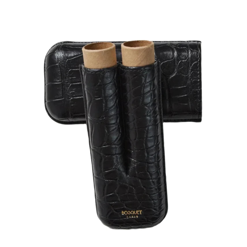 Bosquet Black Crocodile Leather Cylindrical Cigar Case (2 Cigars)