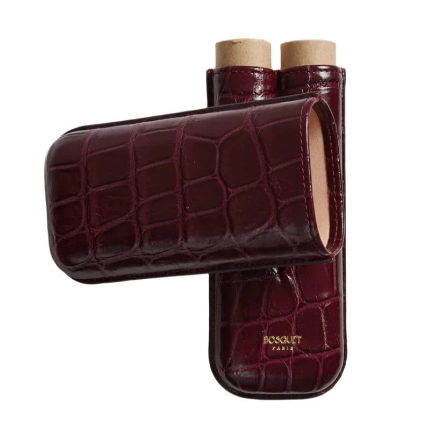 Bosquet Burgundy Crocodile Leather Cigar Case (2 cigars)