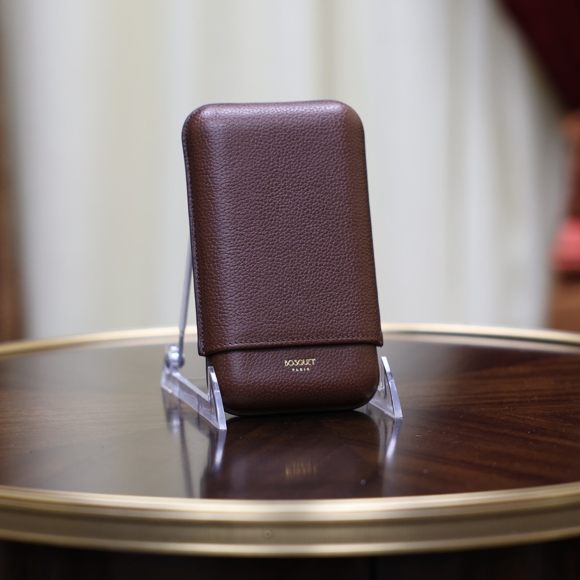 Bosquet Dark Brown Grained Leather Cylindrical Cigar Case (3 Cigars)