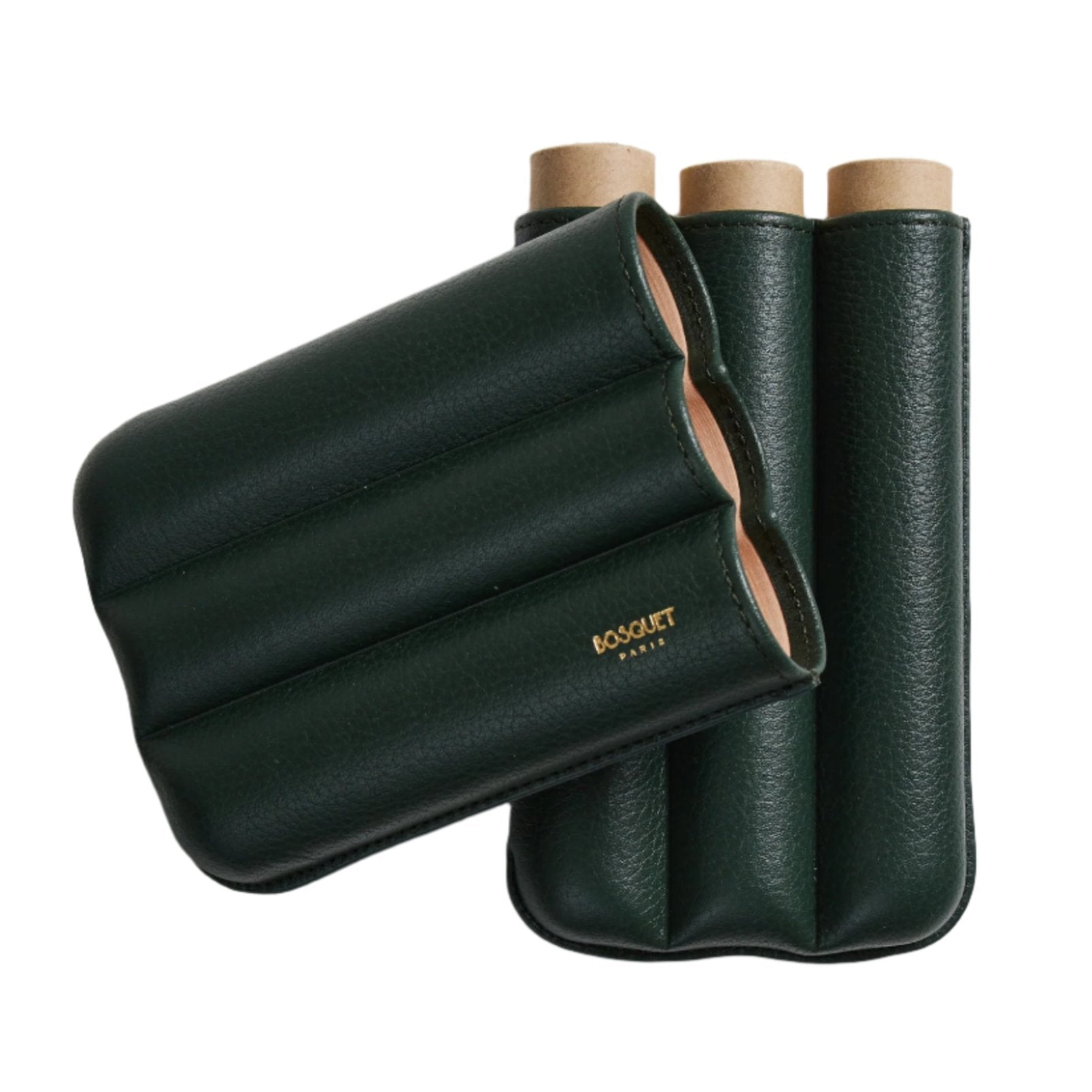 Bosquet Forest Green Grained Leather Cylindrical Cigar Case (3 cigars)