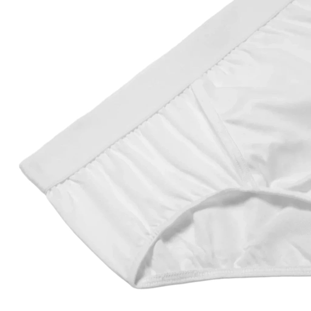 When it comes to underwear, the importance of 100% cotton construction free of synthetic fibers cannot be overstated. Synthetic fibers trap moisture (contrary to most marketing material) and can lead to the buildup of bacteria that causes jock itch. With a 100% cotton brief - increasingly difficult to find these days - this is not an issue.