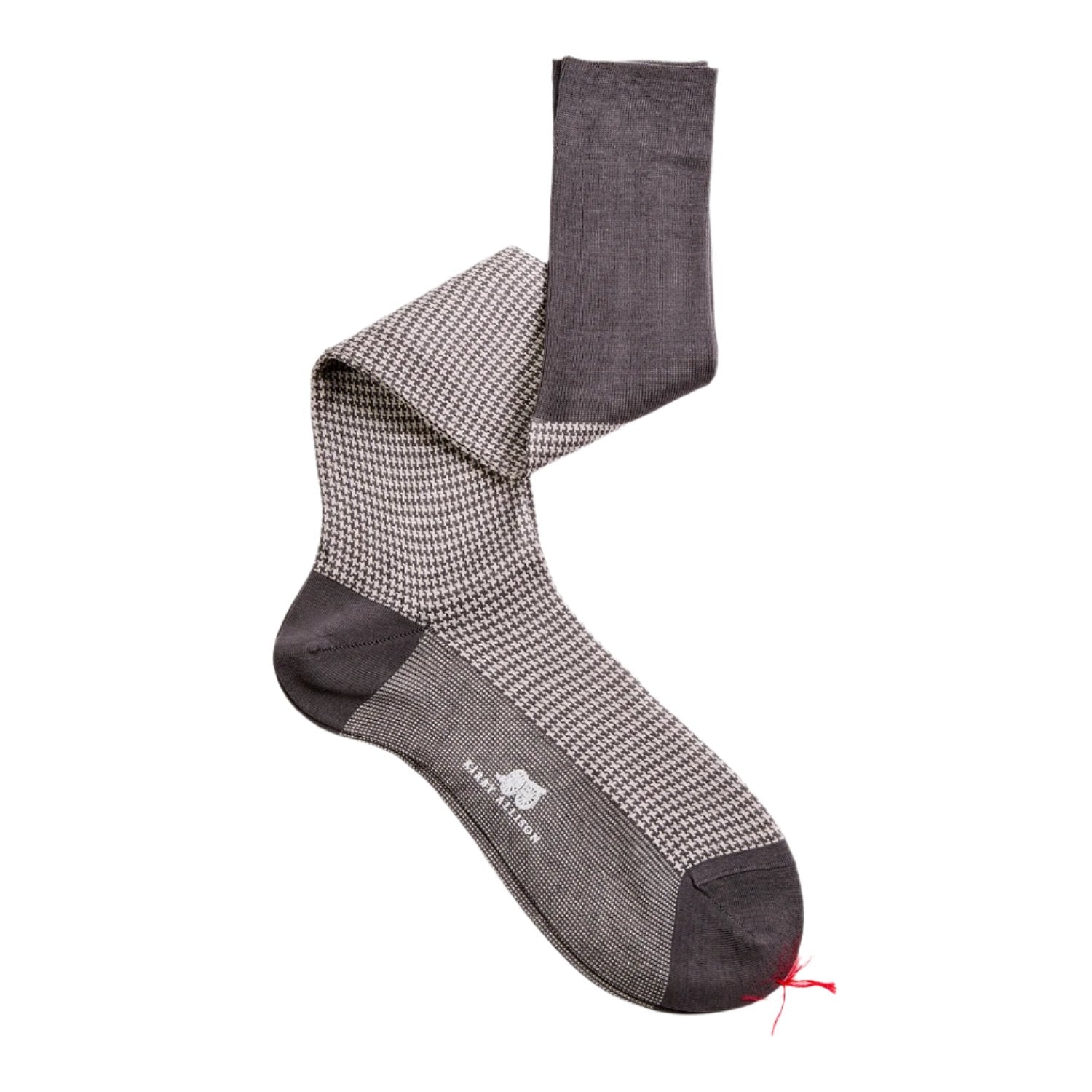 Bresciani Houndstooth OTC Cotton Dress Socks