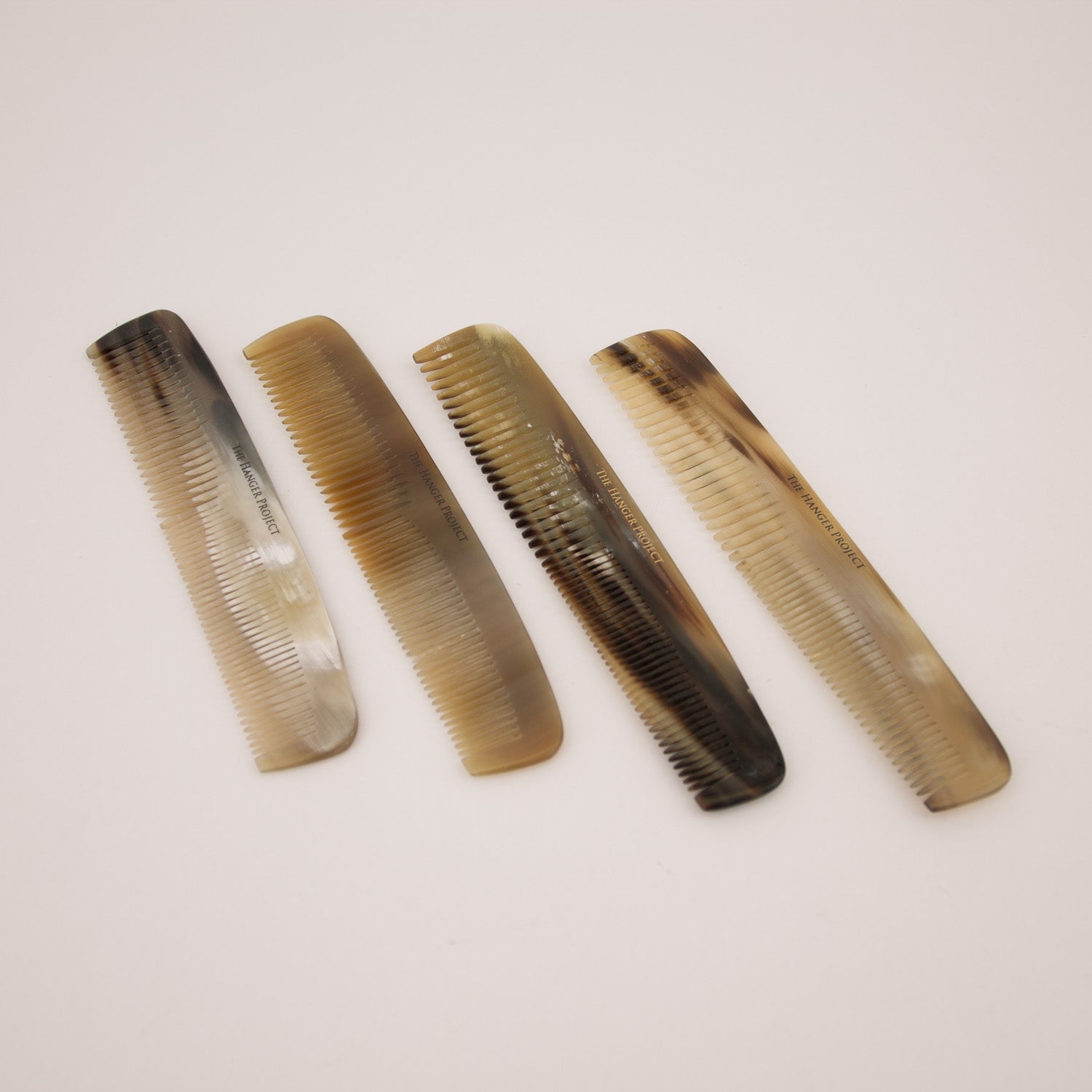 Our attractive and hard-wearing 7" (18 cm) dress comb is hand-crafted from genuine oxhorn. The largest of our combs, it has double teeth with a good strong feel and is perfect for a dressing table.