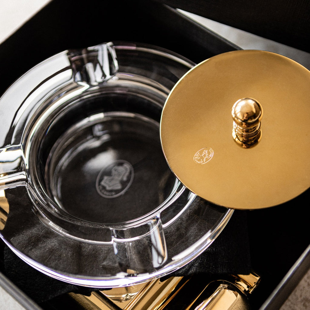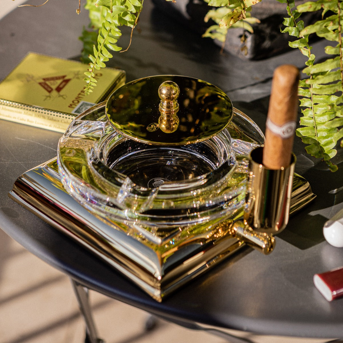If you're familiar with Kirby's affinity for cigars, you know that he loves to begin his smoke by using our El Casco cigar cutter. Now we are proud to offer ashtrays from El Casco as well! Finished in a brilliant hand-polished 23kt gold, our new cigar ashtray is a beautiful addition to your cigar smoking ritual.