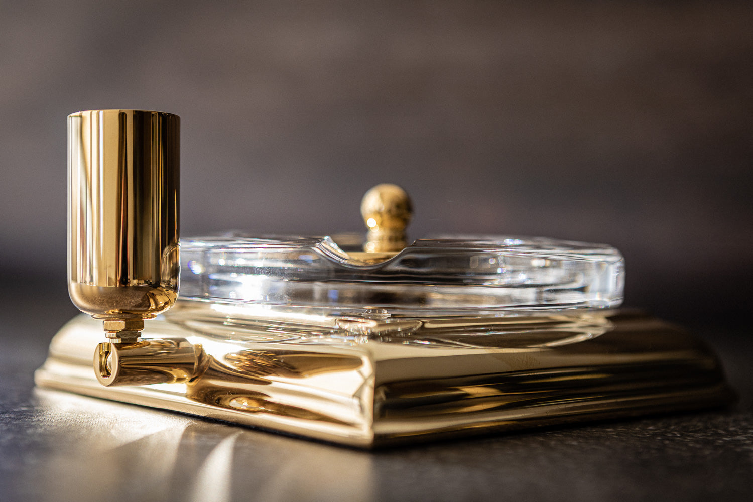 Our El Casco 23kt Gold Executive Cigar Ashtrays are manufactured without the cigar tube per Kirby's preference