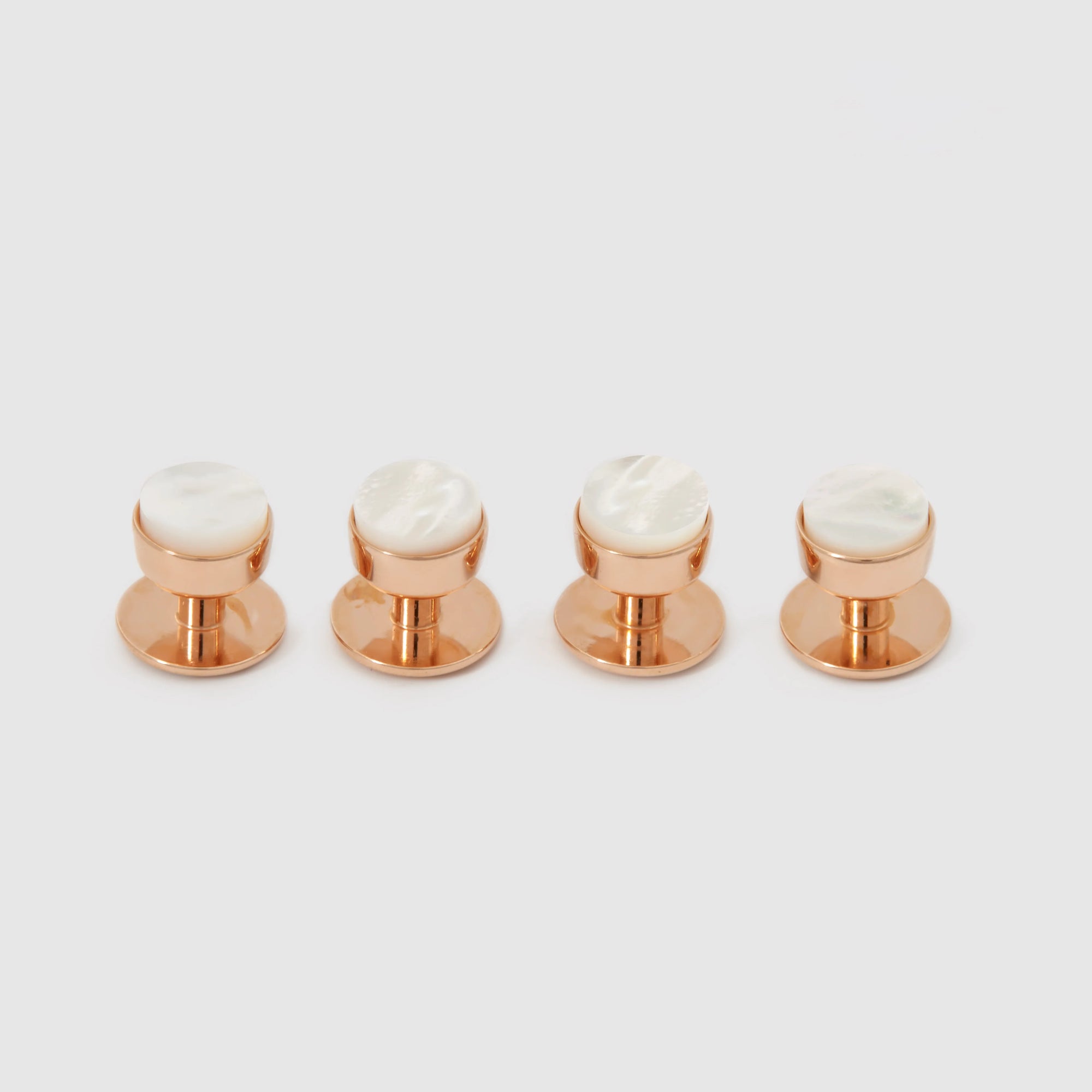 Enhance your formal attire with our Mother of Pearl Sterling Silver Stud Set, elegantly finished with gold plating. These studs, each 8mm in diameter, offer a refined and luxurious addition to any dress shirt.