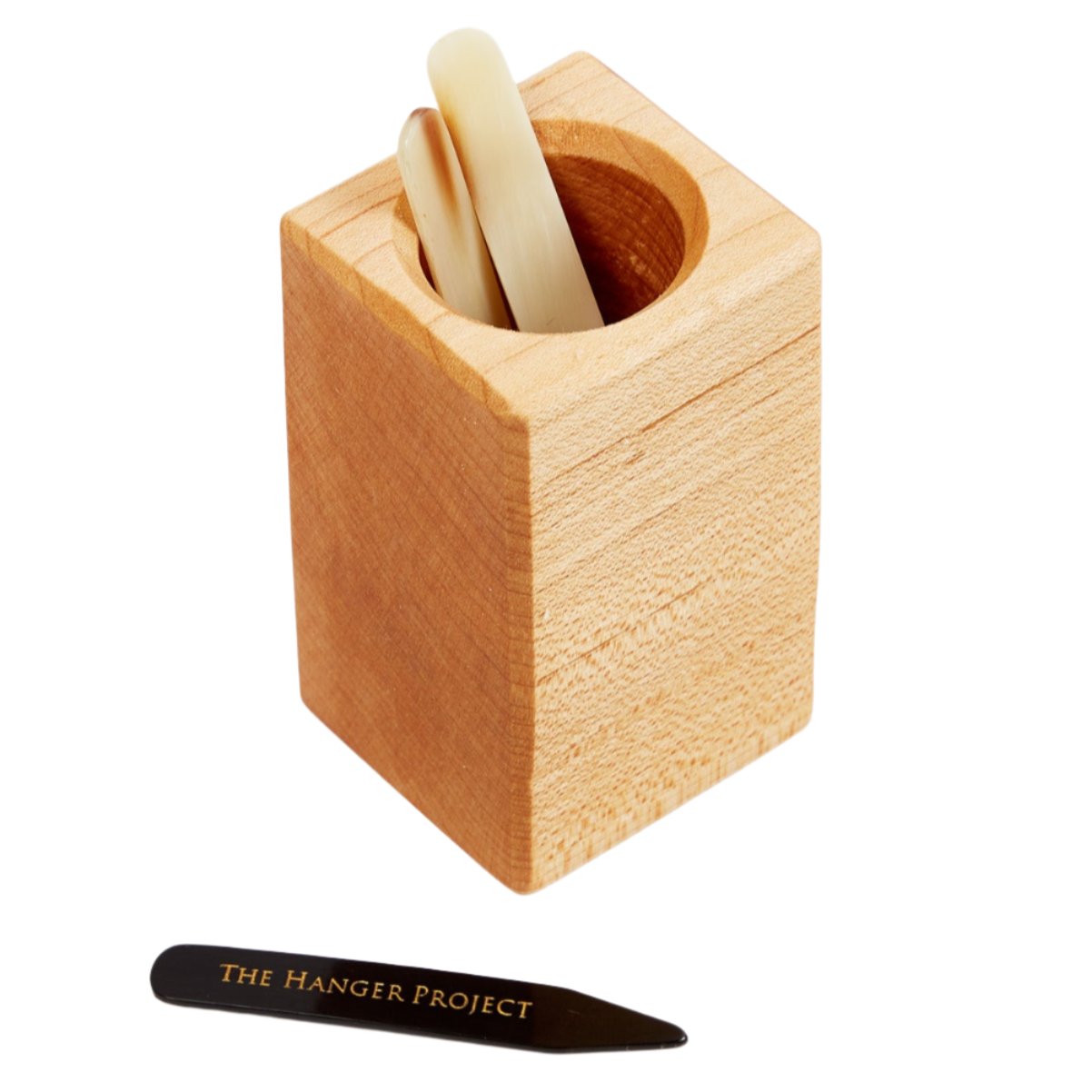 Our Hanger Project Small Collar Stay Holder is crafted in Dallas out of solid hardwood in a variety of premium woods.