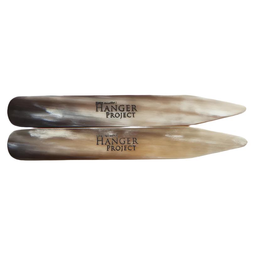 Our Horn Collar Stays are beautifully crafted in the U.K. by skilled artisans from cow horn. Each set of collar stays are totally unique, showcasing their own marbling of black, cream, and brown. Available in four lengths these Horn Collar Stays offer more flexibility than our Mother of Pearl Stays but slightly less than our Bone Collar Stays.