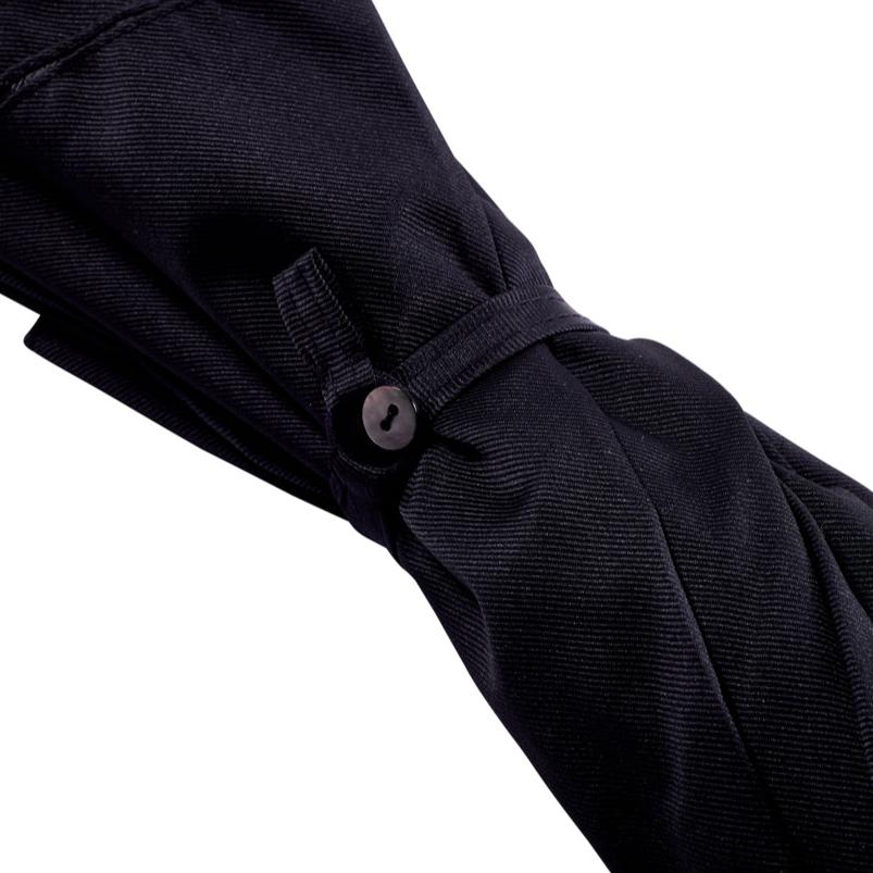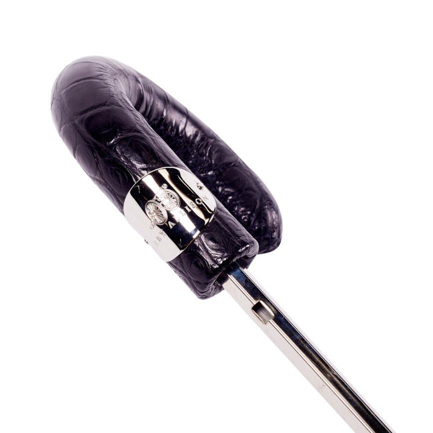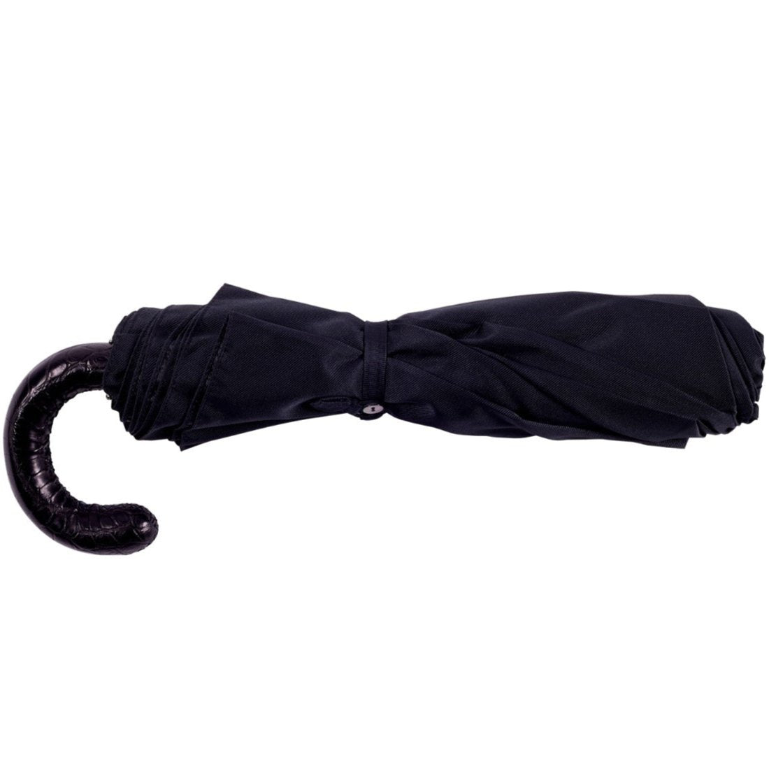 Handcrafted in Milan, Italy, by one of the oldest and most prestigious Italian umbrella makers, this Kirby Allison umbrella features a hand-sewn alligator handle with a solid black polyester canopy. The umbrella is compact enough when folded to easily fit into a briefcase, making it perfect for driving cities or travel.