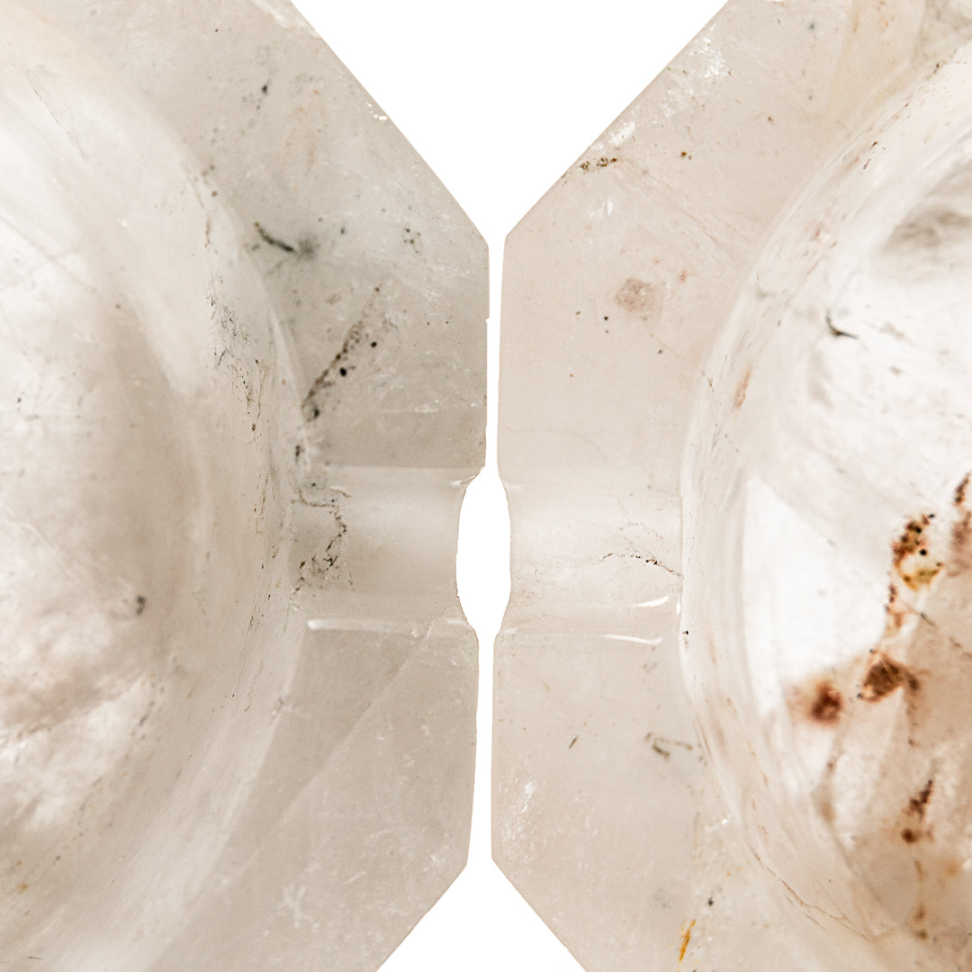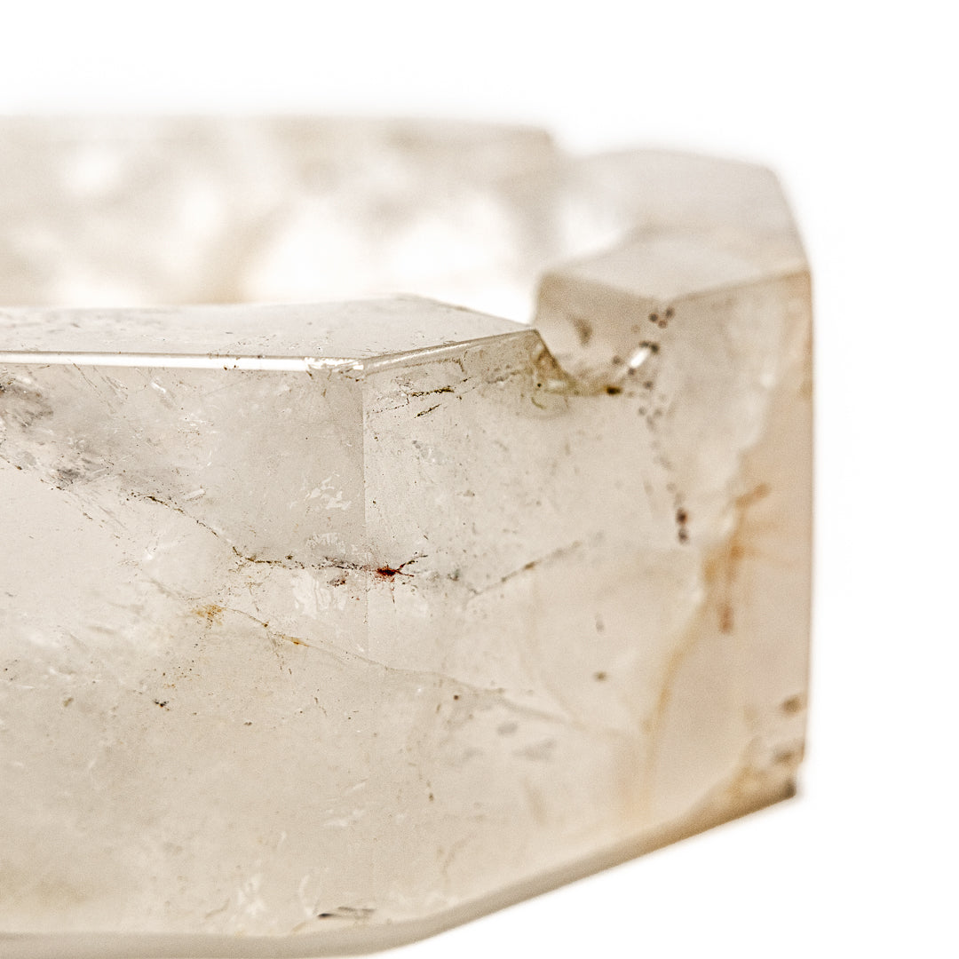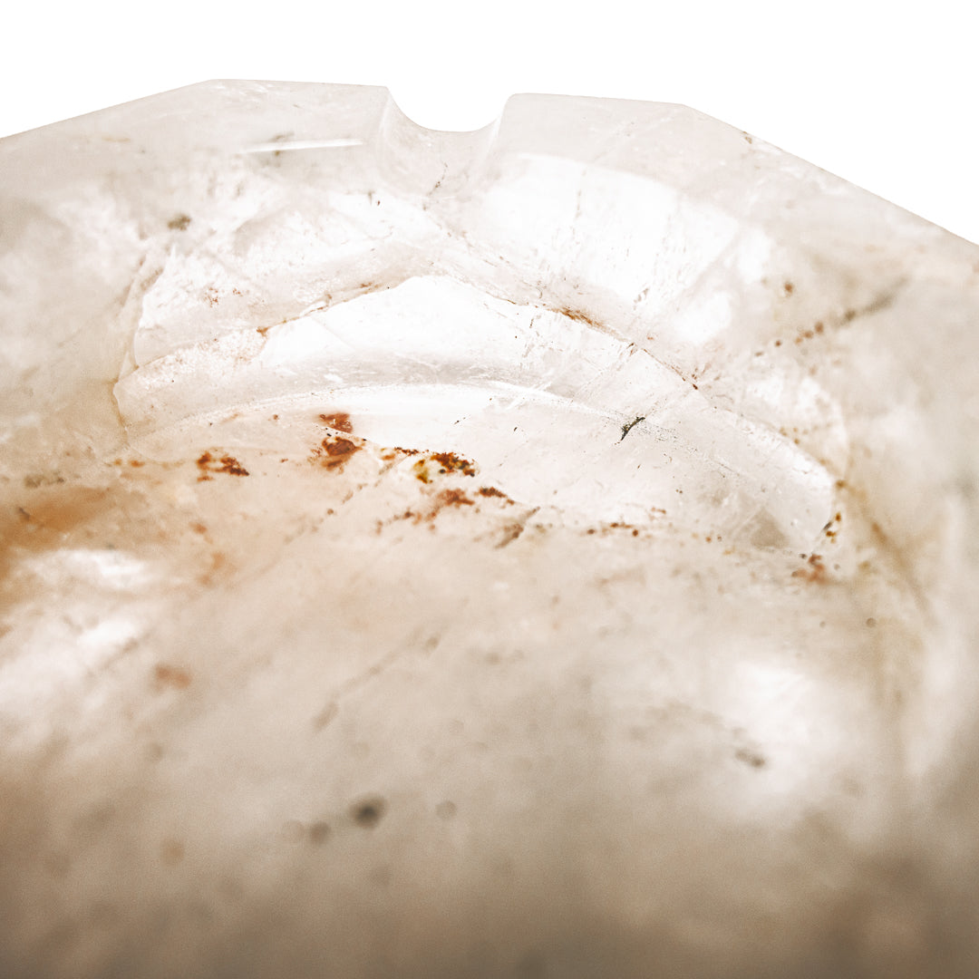 Handcrafted by a master stoneworker in India, these exquisite quartz ashtrays highlight the natural beauty and organic variations of genuine quartz. Unlike synthetic alternatives, each piece is shaped from solid quartz, showcasing its unique translucency, veining, and color variations—no two ashtrays are ever alike.