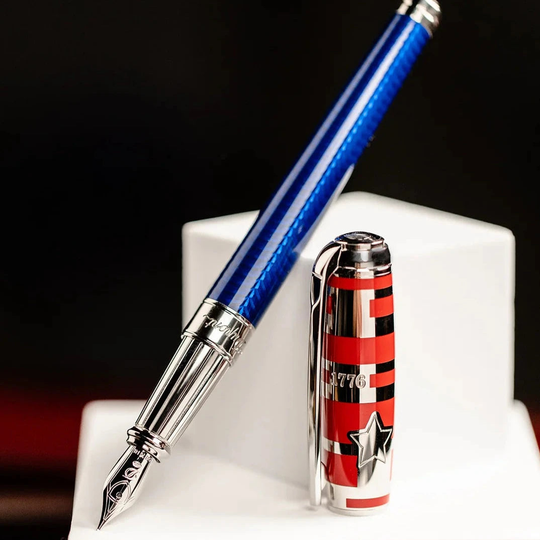 S.T. Dupont honors America's inception with a contemporary rendition of the American flag in their latest Line D Declaration of Independence collection. Expert craftsmen from S.T. Dupont skillfully blend vibrant red and bold blue lacquer, adorned with intricate goldsmith engravings of stars, creating a striking and modern tribute.