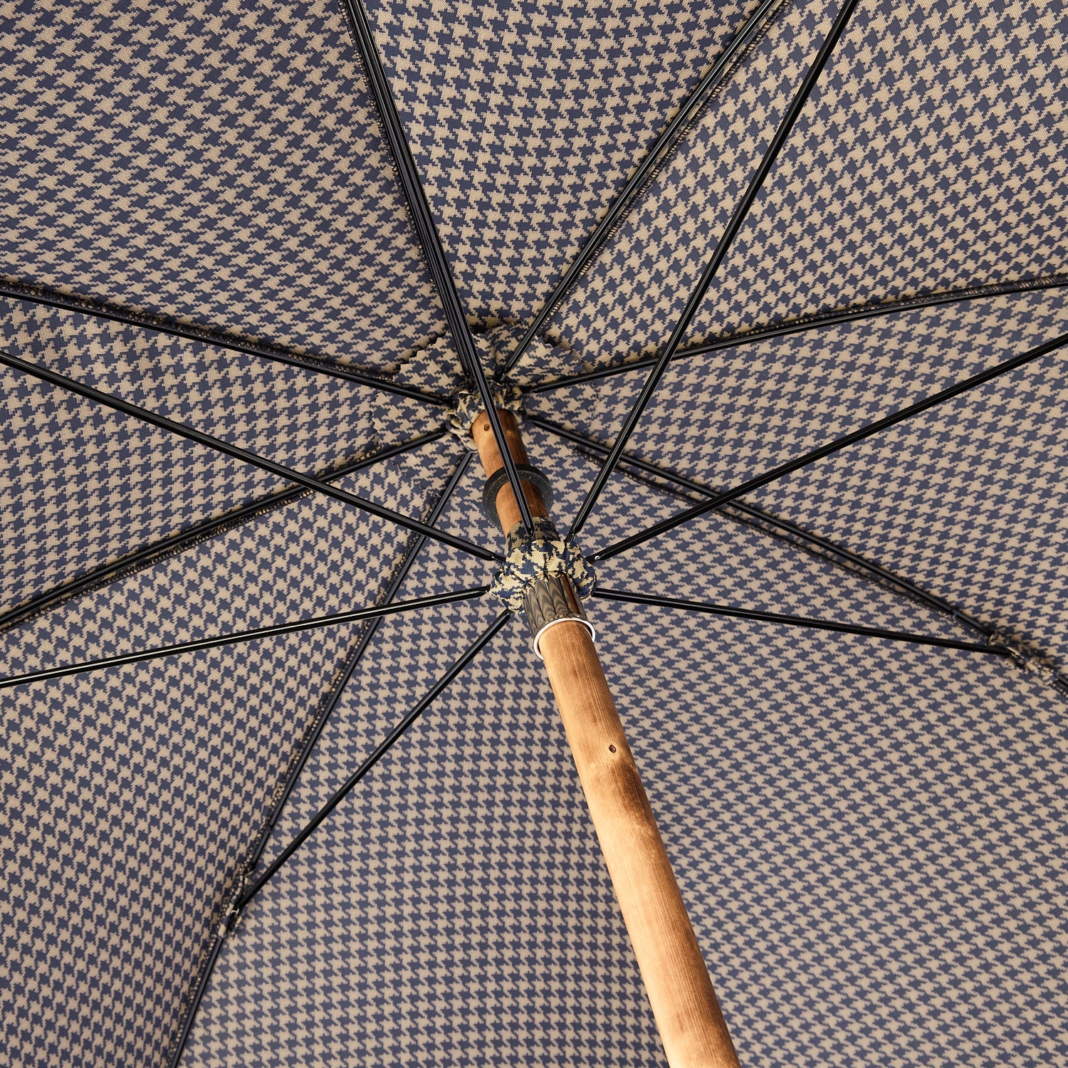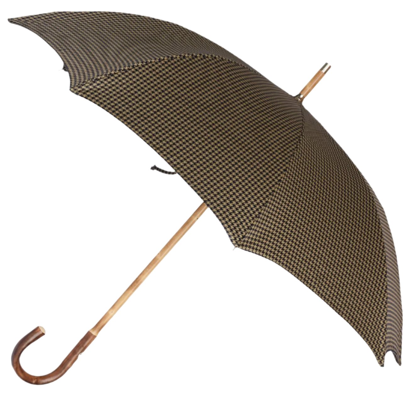 Handcrafted in Milan, Italy, by one of the oldest and most prestigious Italian umbrella makers, this Kirby Allison Solid Stick Umbrella features a beautiful chestnut handle and houndstooth canopy. Unquestionably a gentleman's umbrella, this is as much a statement piece as it is a bad-weather accessory.
