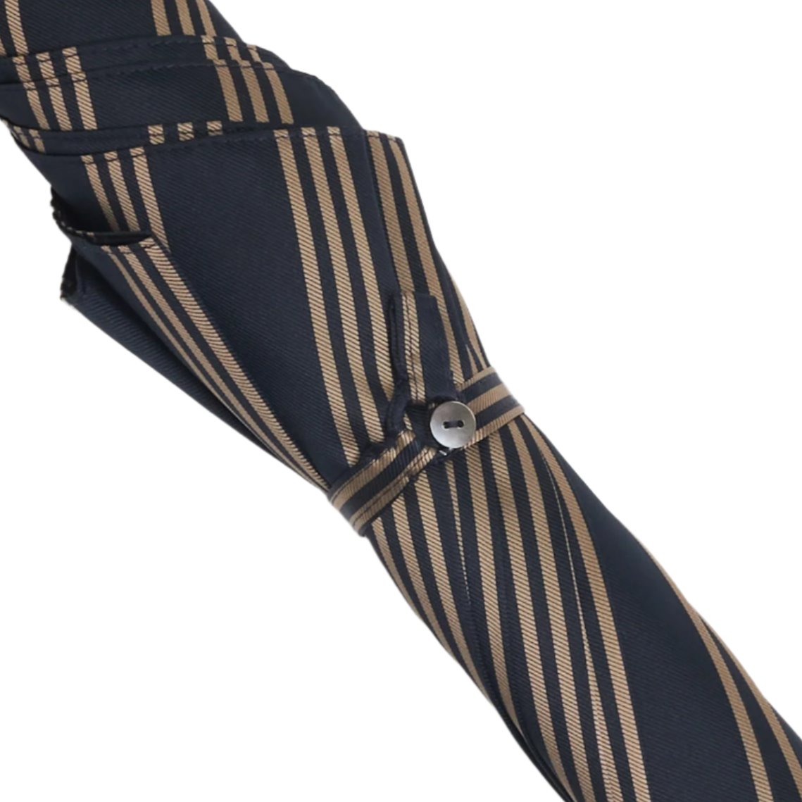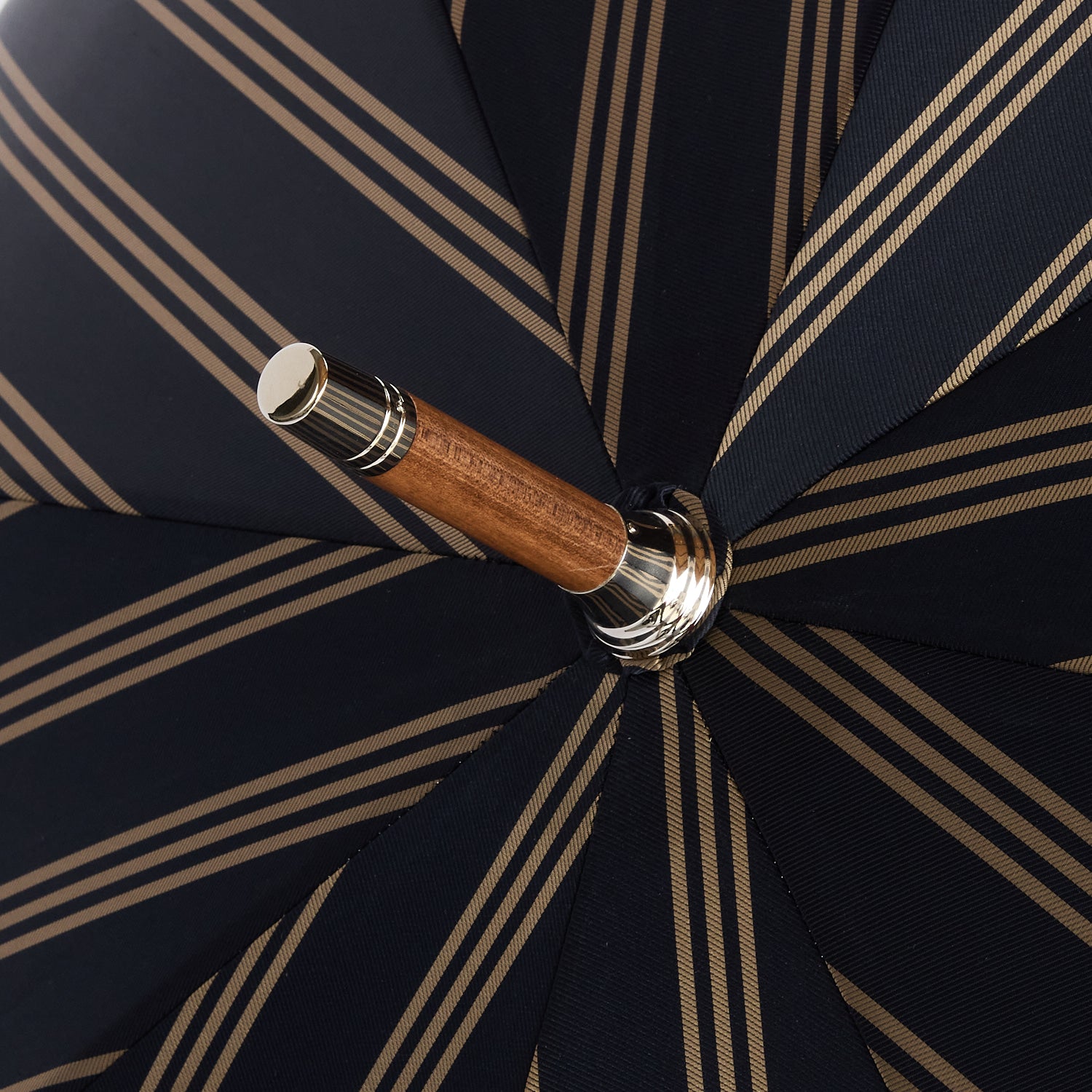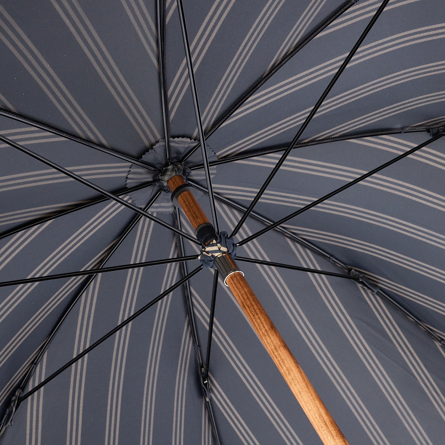 Handcrafted in Milan, Italy, by one of the oldest and most prestigious Italian umbrella makers, this Kirby Allison umbrella features a maple solid-stick construction and a handsome navy pinstripe canopy. Unquestionably a gentleman's umbrella, this is as much a statement piece as it is a bad-weather accessory.
