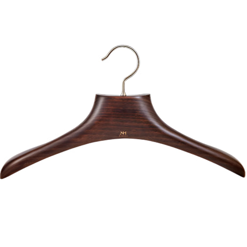 What sets the NH-2 apart is its uncompromising construction. Hand-carved and hand-planed from a single, solid block of European beechwood, this jointless hanger provides unmatched structural integrity and strength. Its substantial 60mm shoulder flare ensures exceptional support for the heaviest tailored garments, while the elegant curvature protects the jacket’s drape and collar shape.