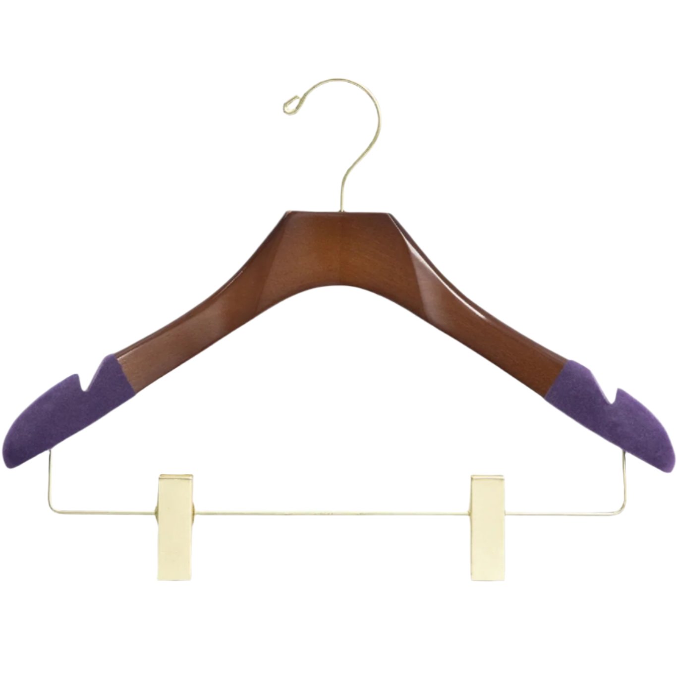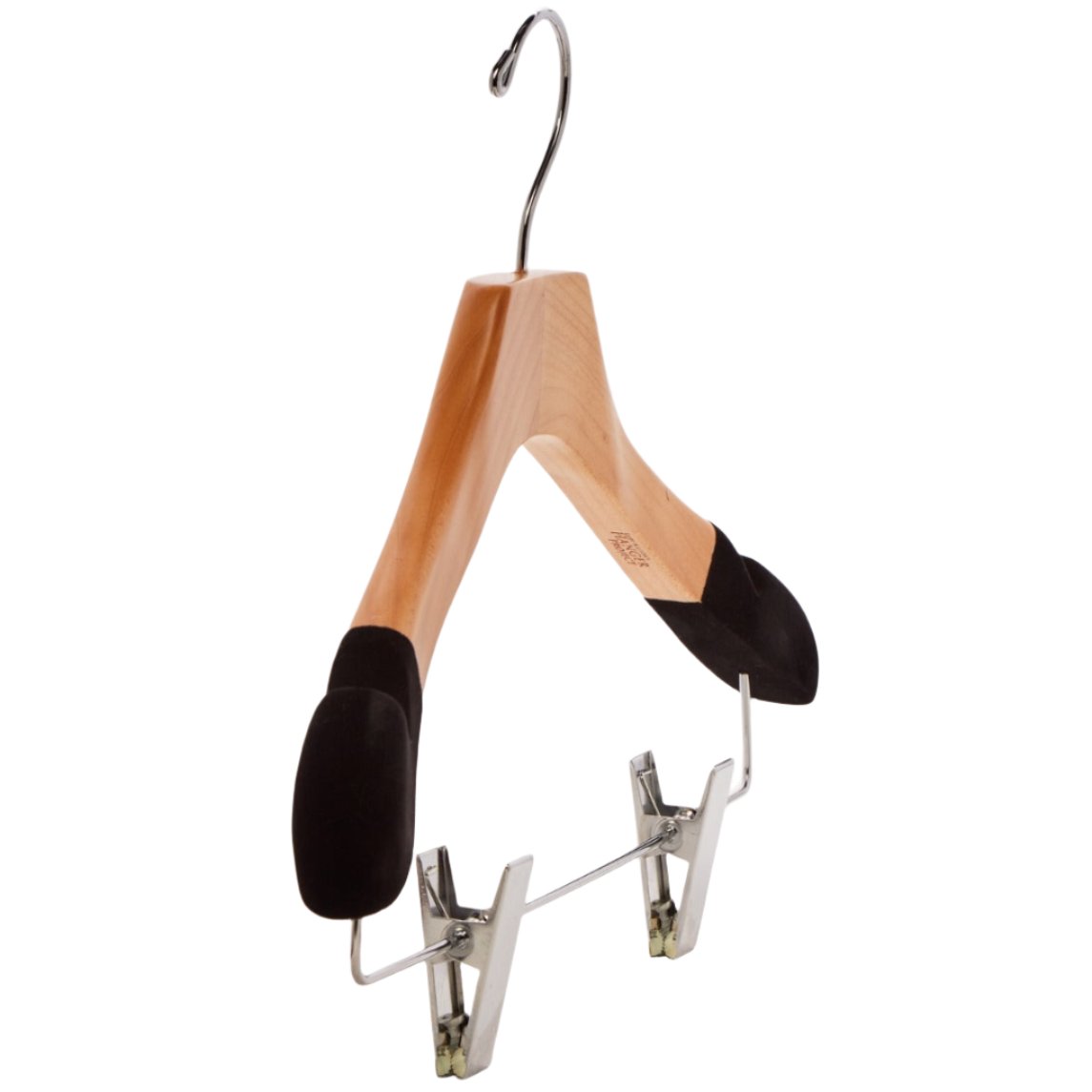 Our Blouse, Sweater, & Dress Hanger offers delicate items, such as cashmere sweaters, blouses, and dresses, the support they need in an efficient profile that conserves closet space. Fully contoured with a 1.15" shoulder flare. Available in two finishes with clip hardware.
