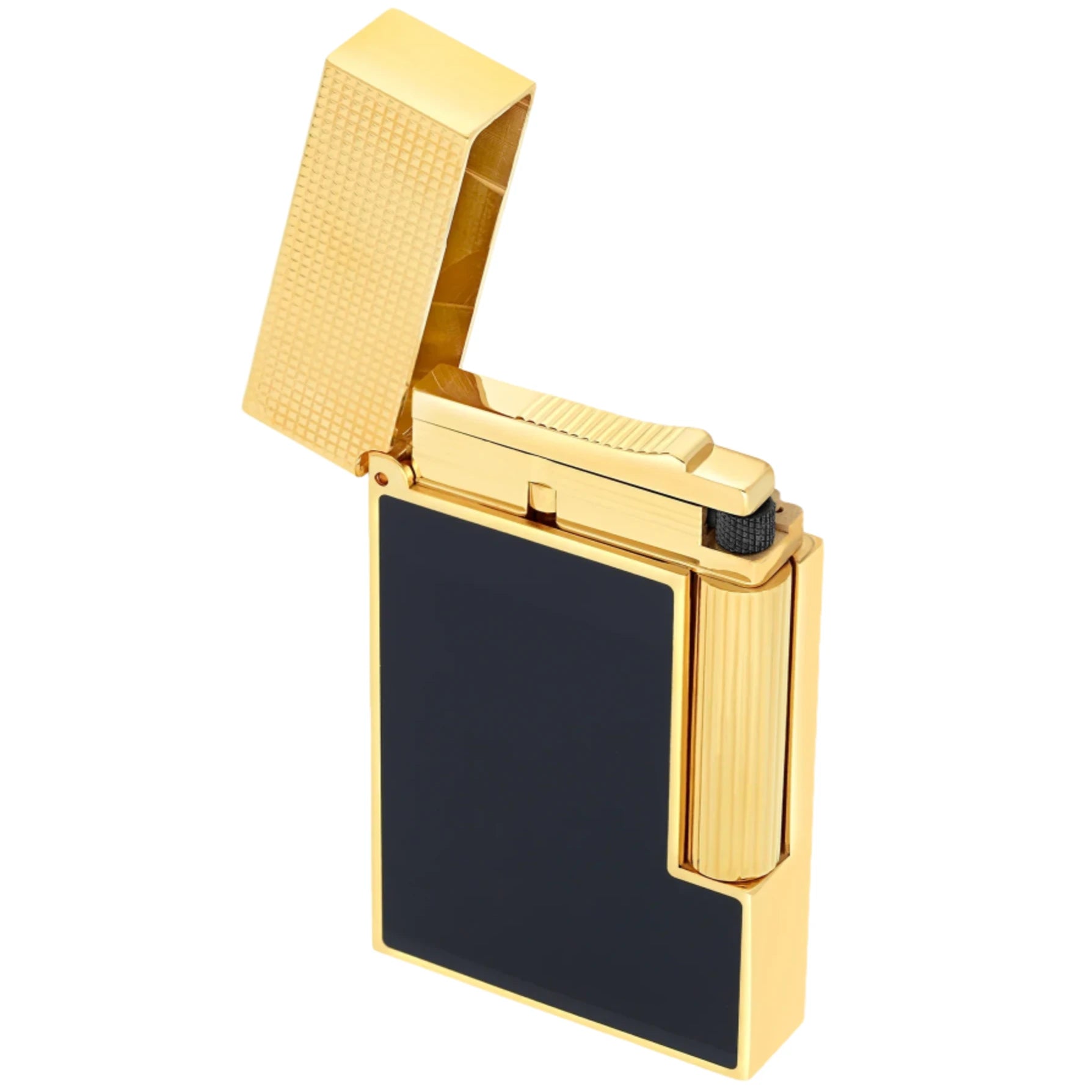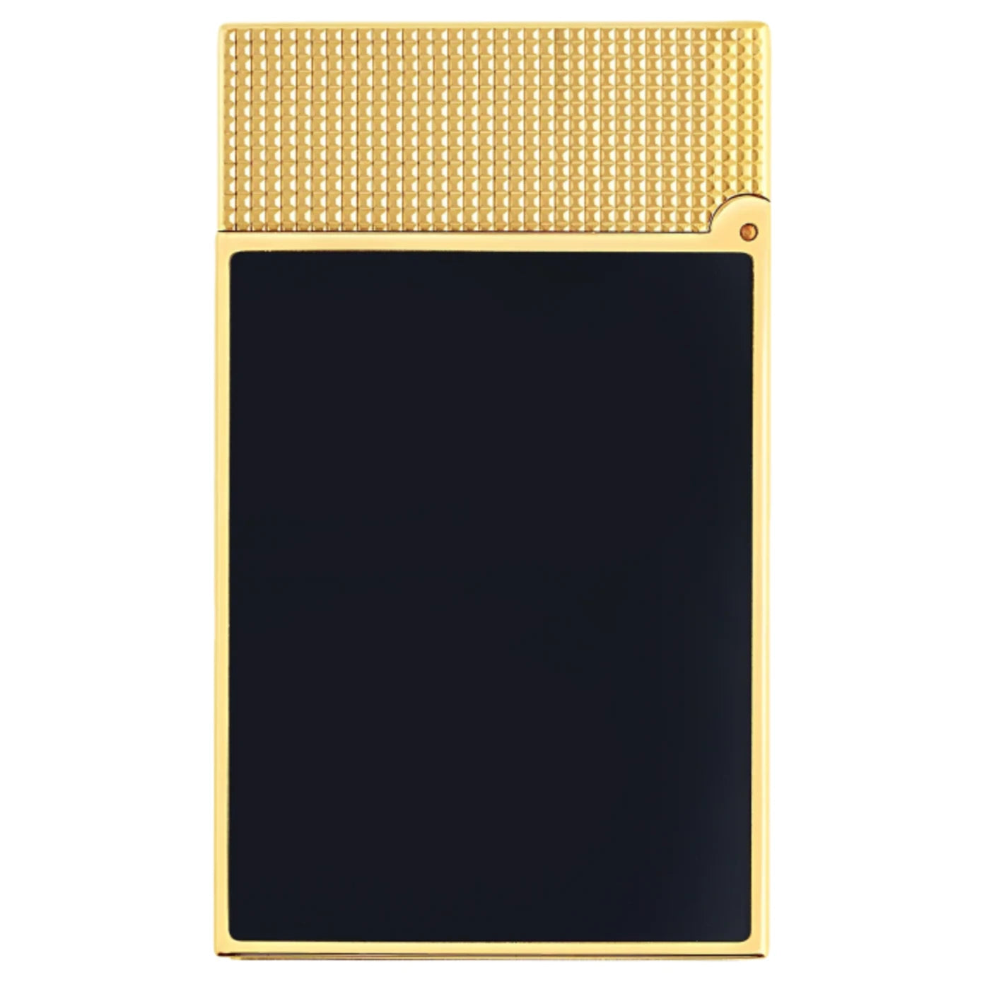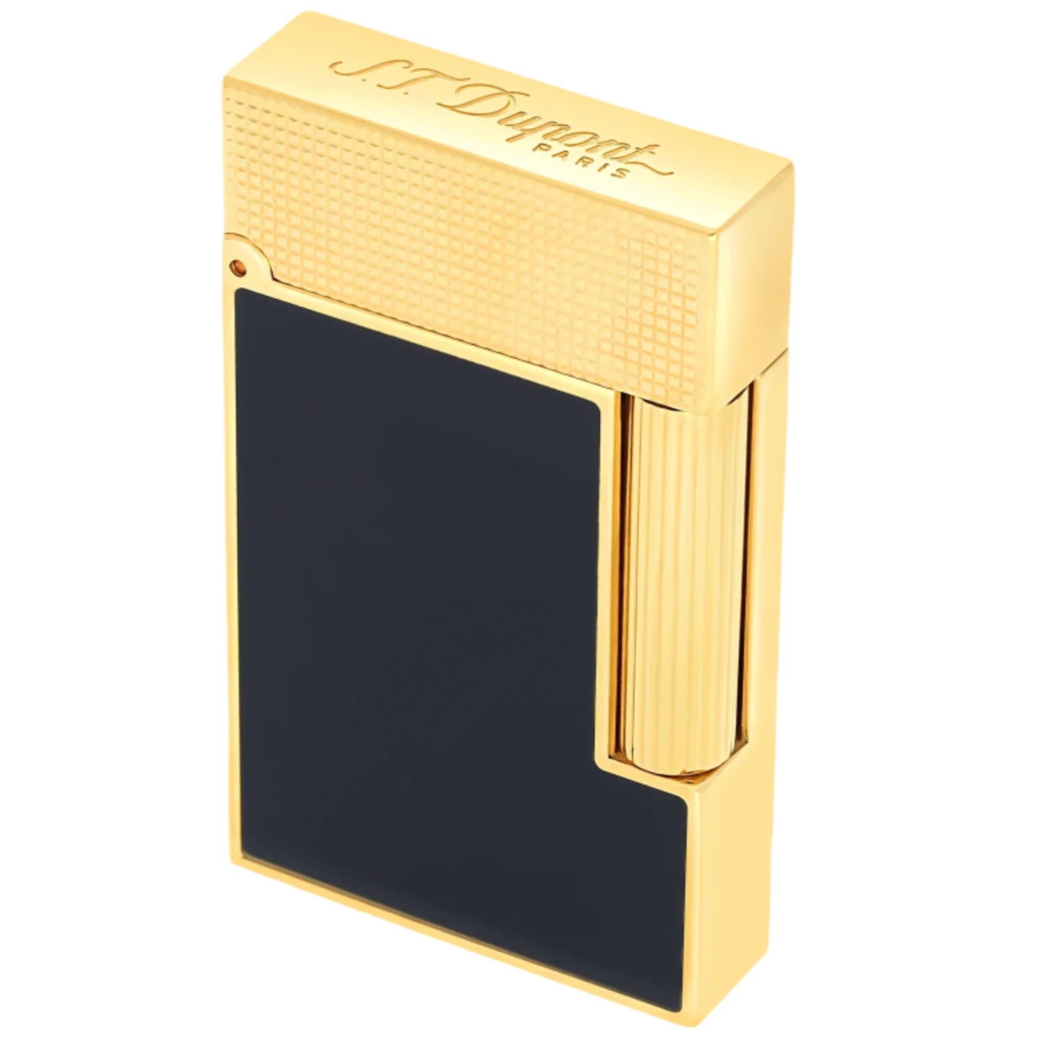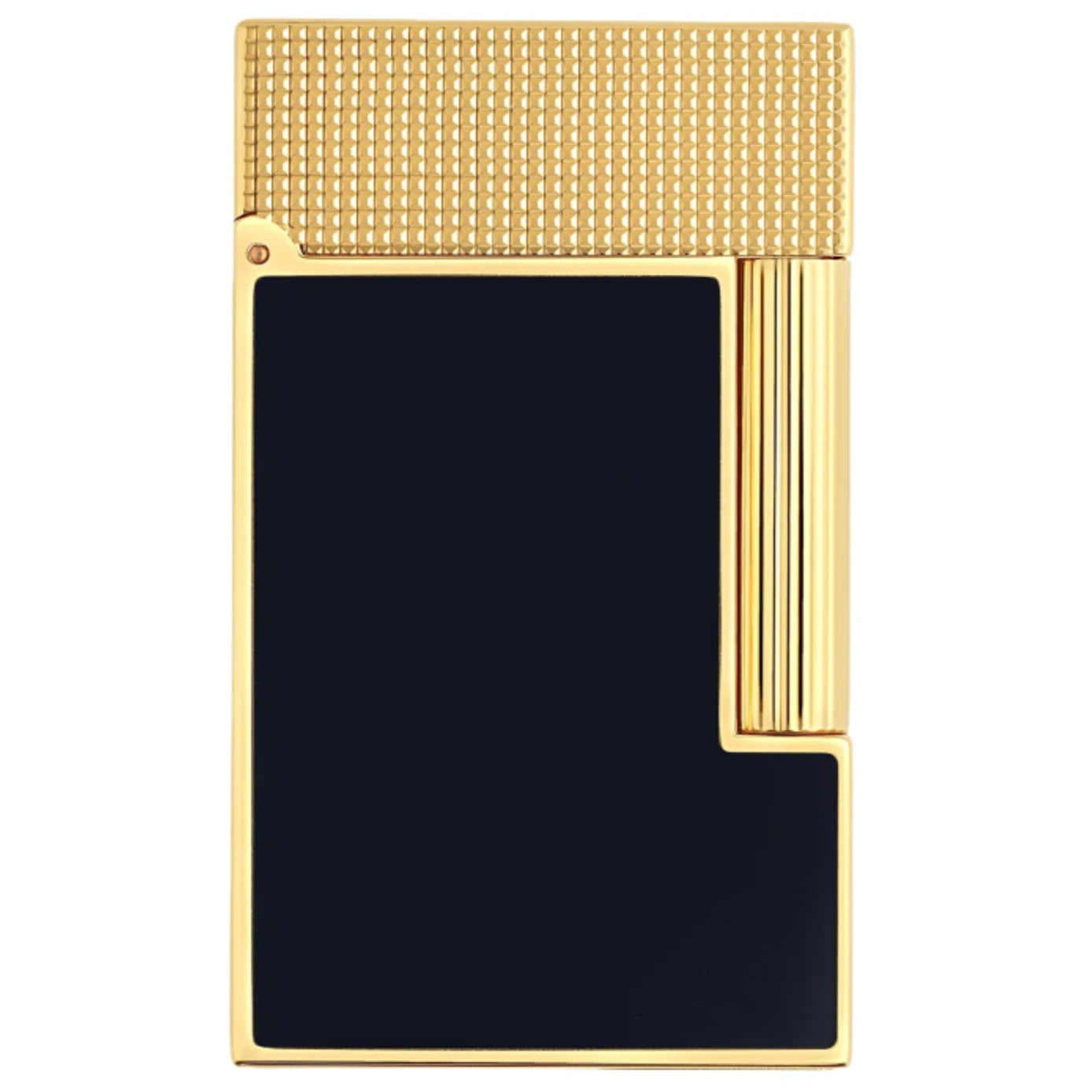 The body is adorned in deep blue natural lacquer, skillfully hand-applied in multiple layers to achieve a luminous finish. This rich hue contrasts beautifully with the brilliant yellow gold plating that frames the lighter and extends to its micro-diamond-patterned cap and roller, a guilloché motif introduced for this generation of Line 2 designs. The result is a sophisticated balance of texture and tone — both modern and enduringly classic.