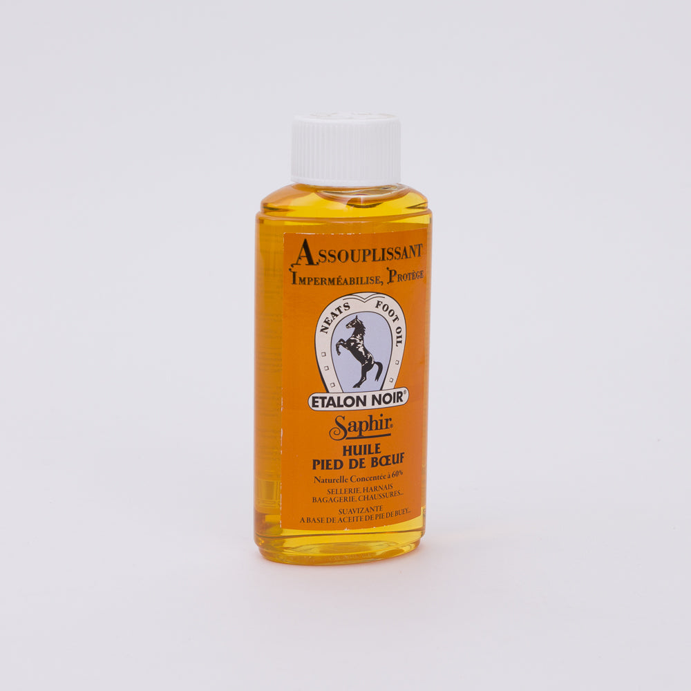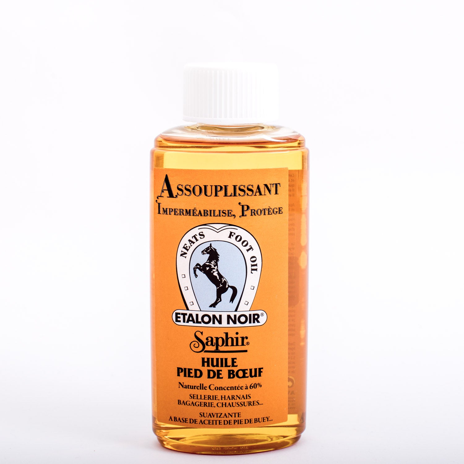 Made in France, Saphir Etalon Noir Neatsfoot Oil Softener is a natural, solvent-free formula designed to soften, nourish, protect, and waterproof leather while preventing it from drying or hardening. Crafted with genuine neatsfoot oil and a low paraffin content, it penetrates deeply without clogging pores, making it especially effective on thick, aged, or hardened leathers such as saddlery, harnesses, footwear, and outerwear.