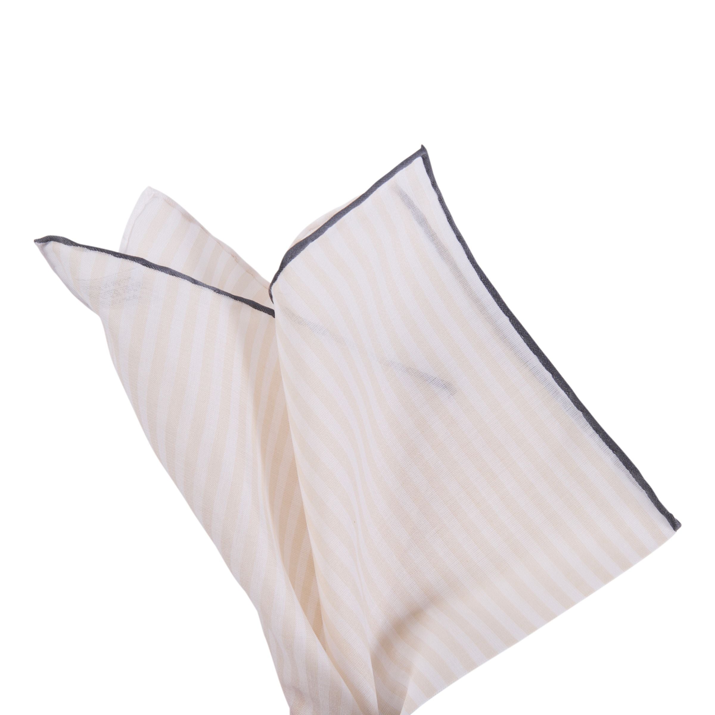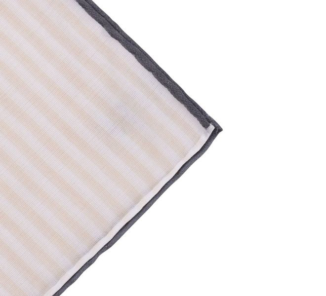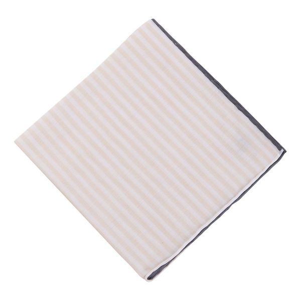 Simonnot Godard Ivory & White Striped Cotton Pocket Square
