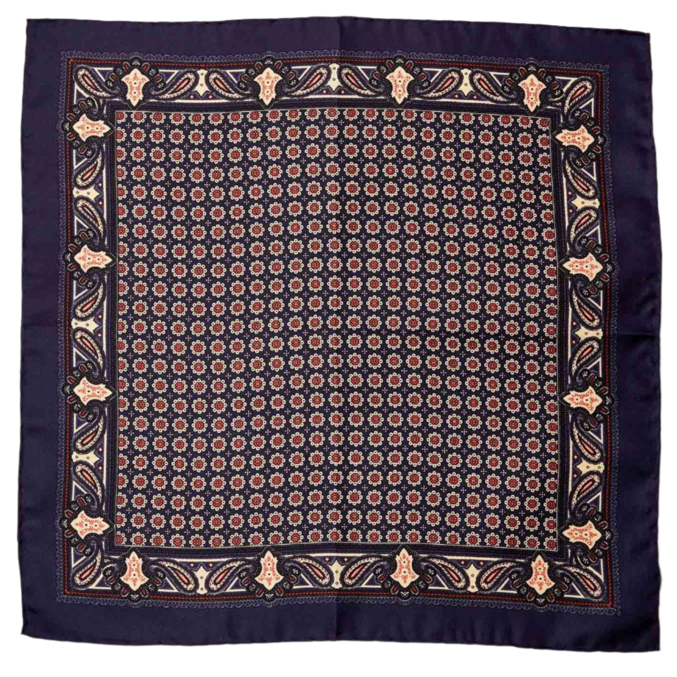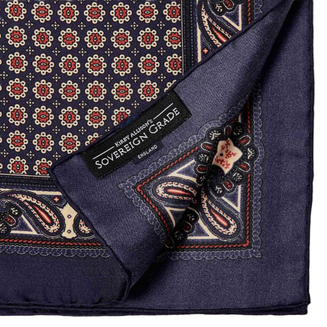 Sovereign Grade 100% Silk Small Floral & Paisley Navy Pocket Square