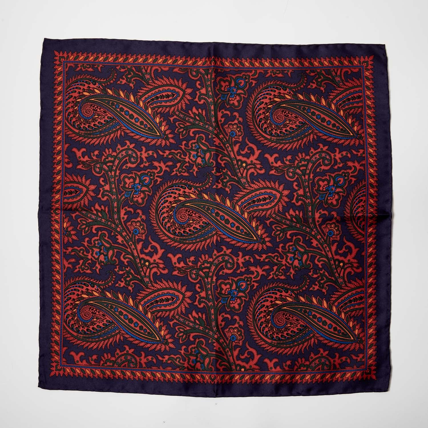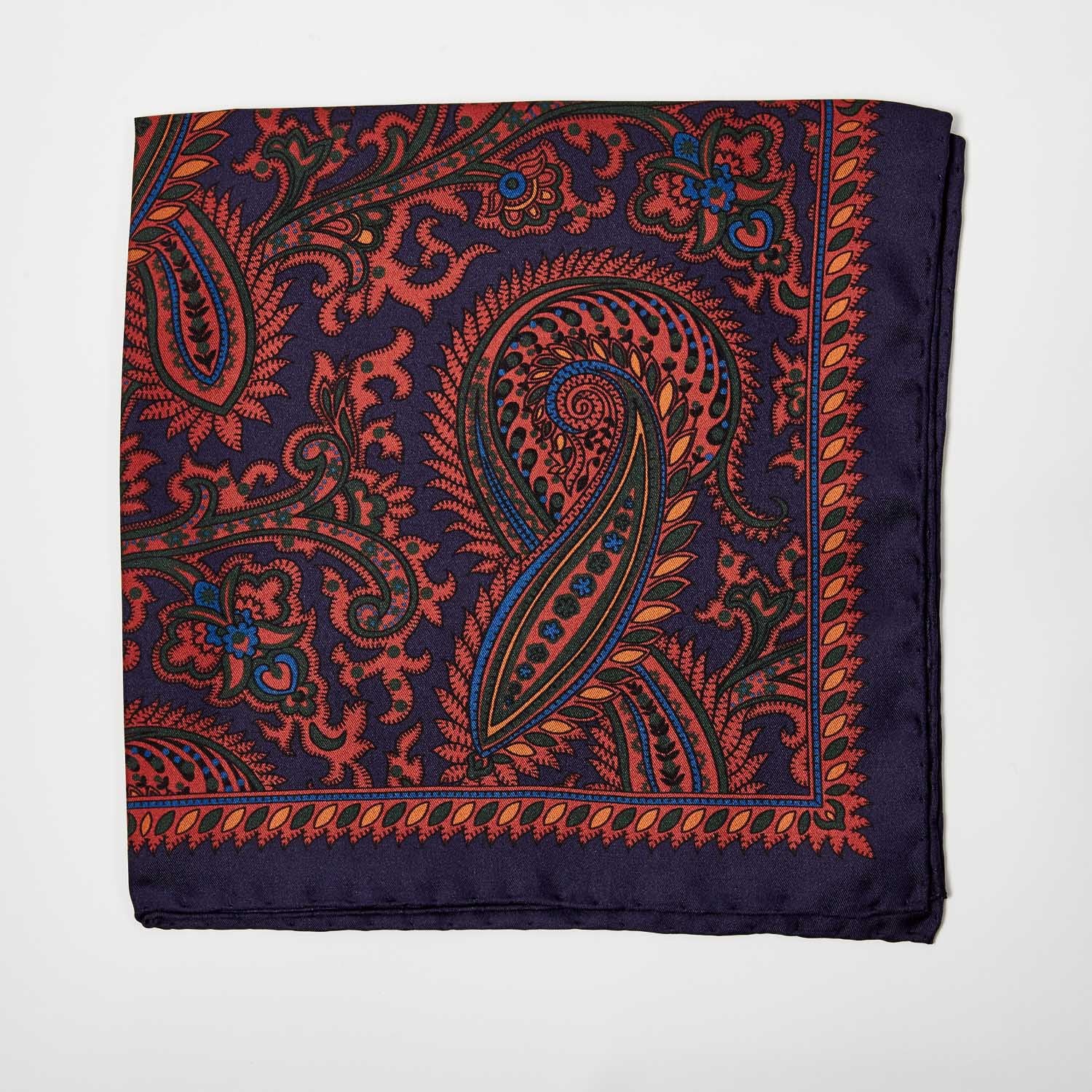 Sovereign Grade 100% Silk Large Paisley Navy Pocket Square