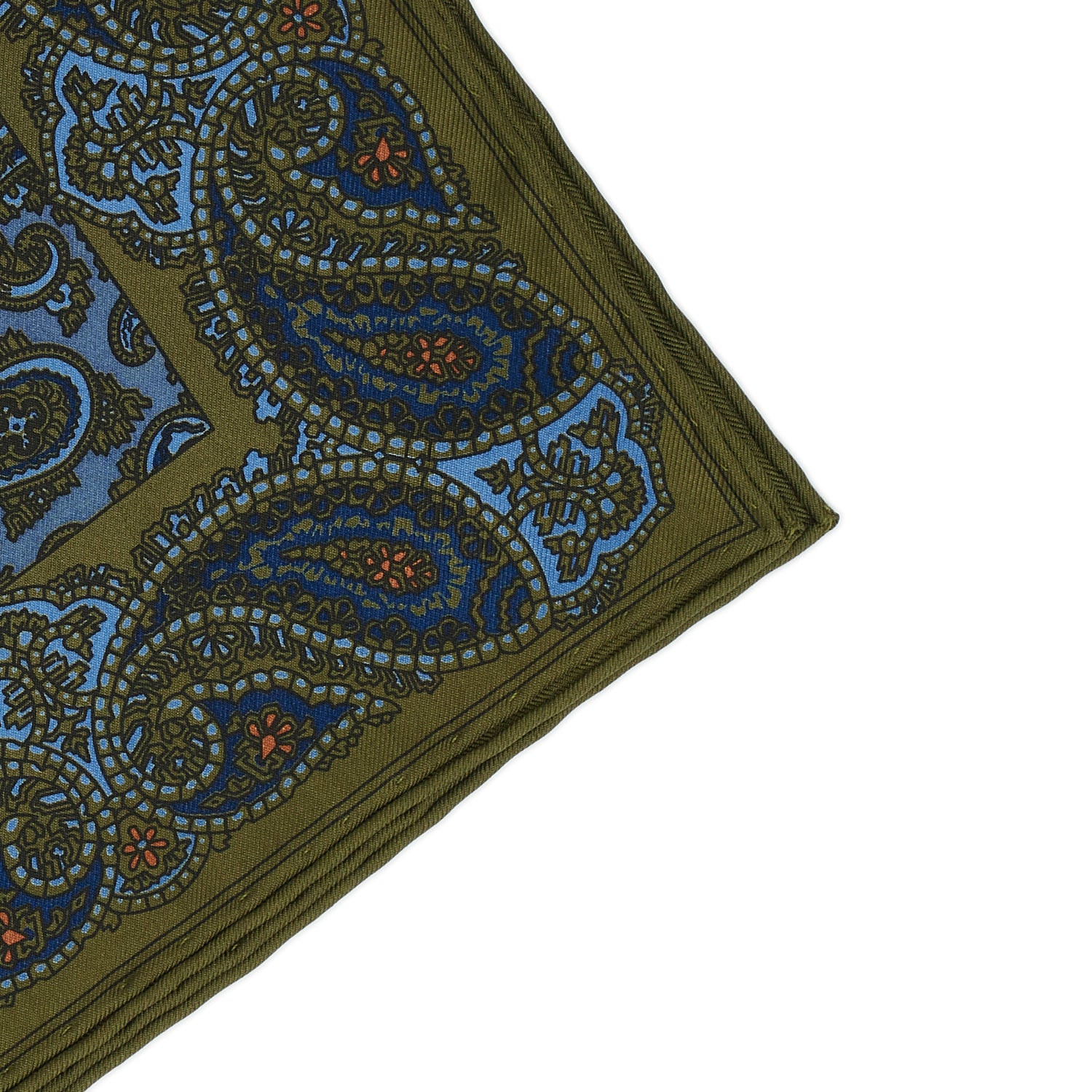 TypeSovereign Grade Olive and Blue Paisley Ancient Madder Pocket Square