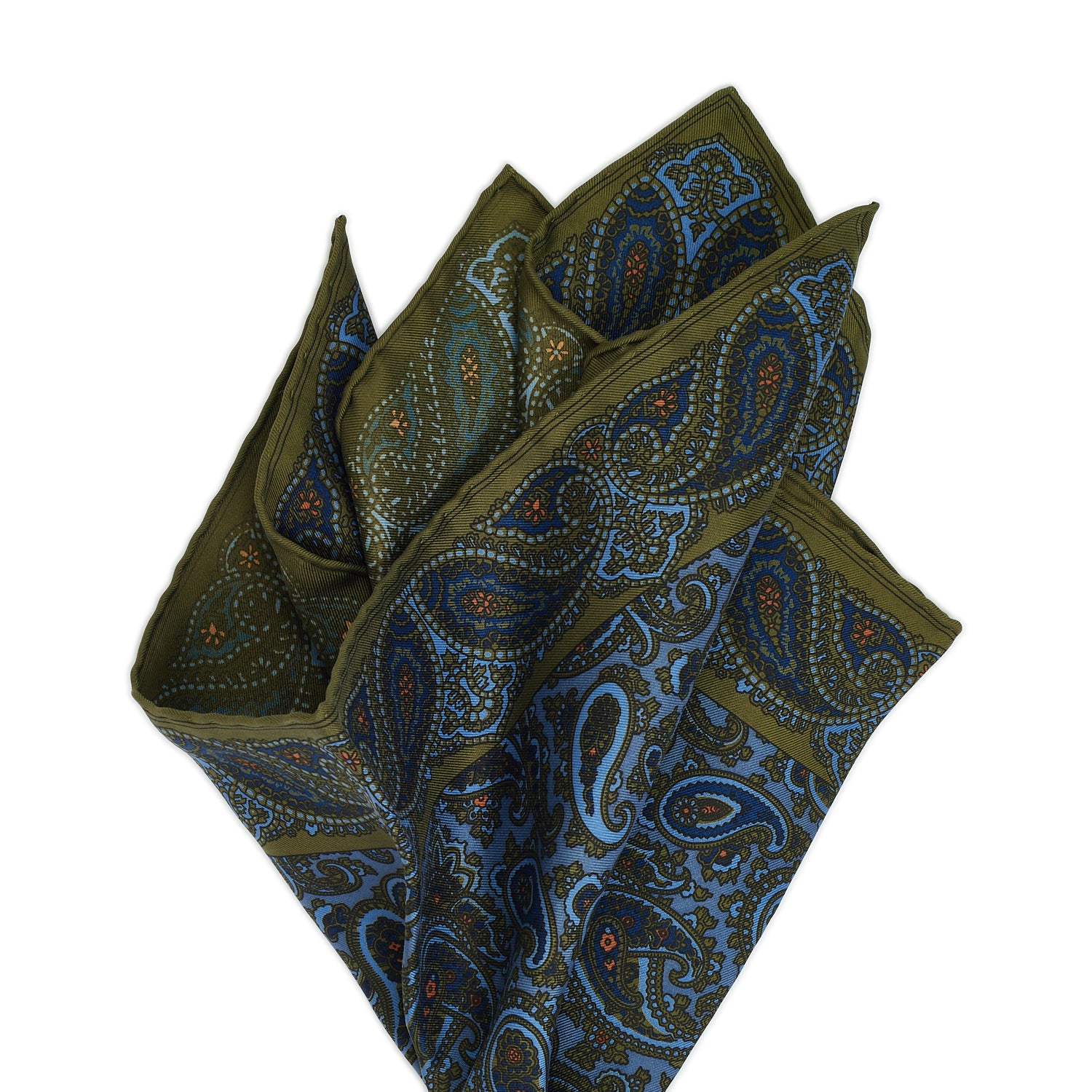 Sovereign Grade Olive and Blue Paisley Ancient Madder Pocket Square
