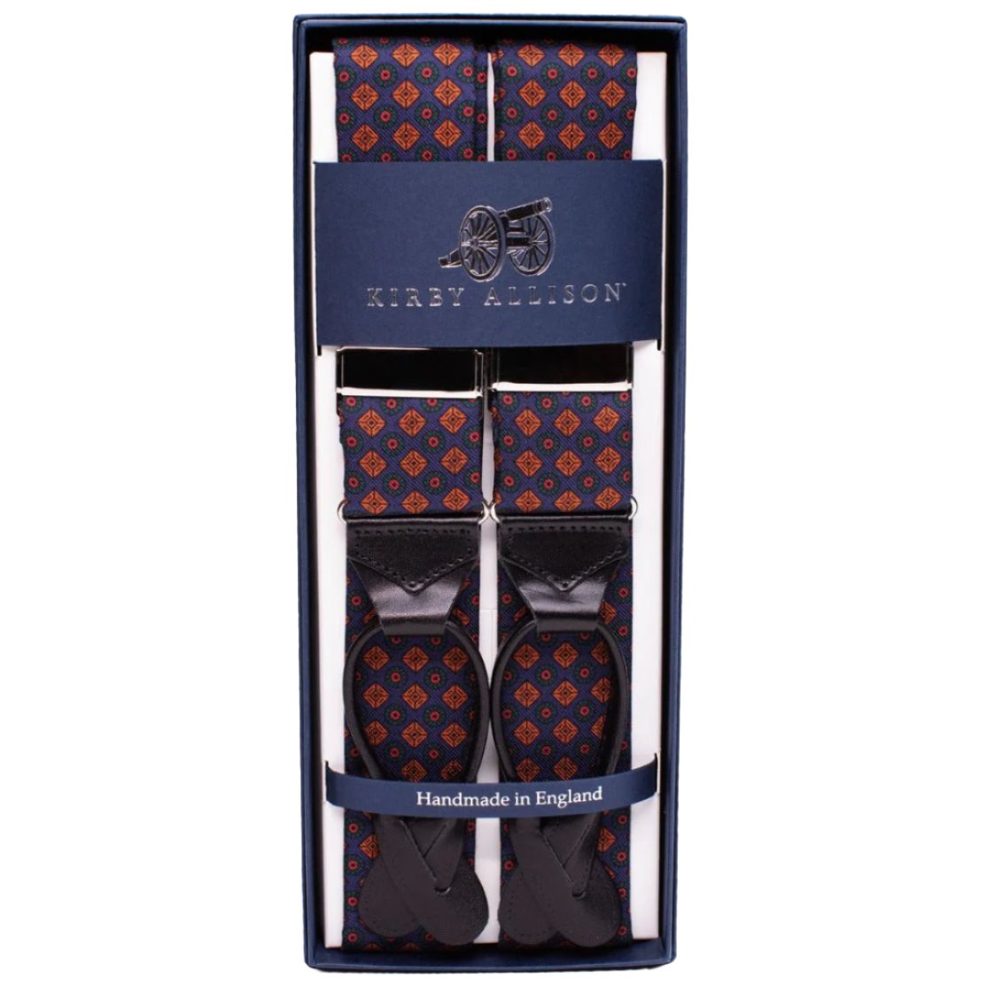 Our Sovereign Grade Braces are made exclusively for Kirby Allison in the United Kingdom. All of our braces feature smart leather ends and are fully adjustable, both the front and the back. The adjustable back is especially important for allowing the proper placement of the back yoke at the shoulder blades, which prevents the braces from sliding down the shoulders.