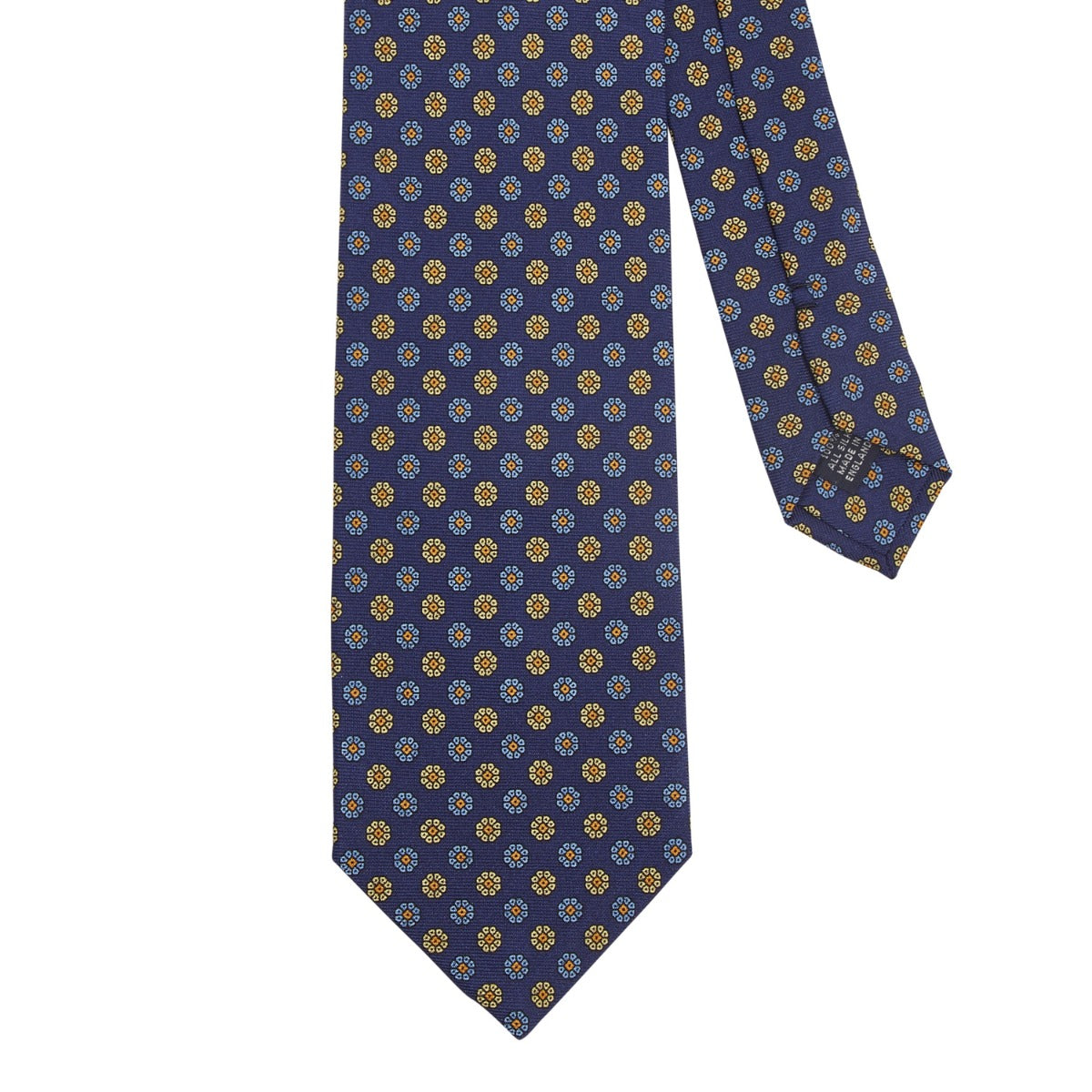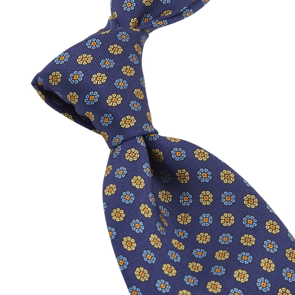 A Sovereign Grade Rust Small Floral Ancient Madder Tie by KirbyAllison.com, handmade in the United Kingdom. A Sovereign Grade Blue Small Floral Ancient Madder Tie from KirbyAllison.com, with a blue and orange pattern of the highest quality. A high-quality Sovereign Grade Dark Navy Small Floral Ancient Madder Tie, handmade in the United Kingdom and available on KirbyAllison.com.
