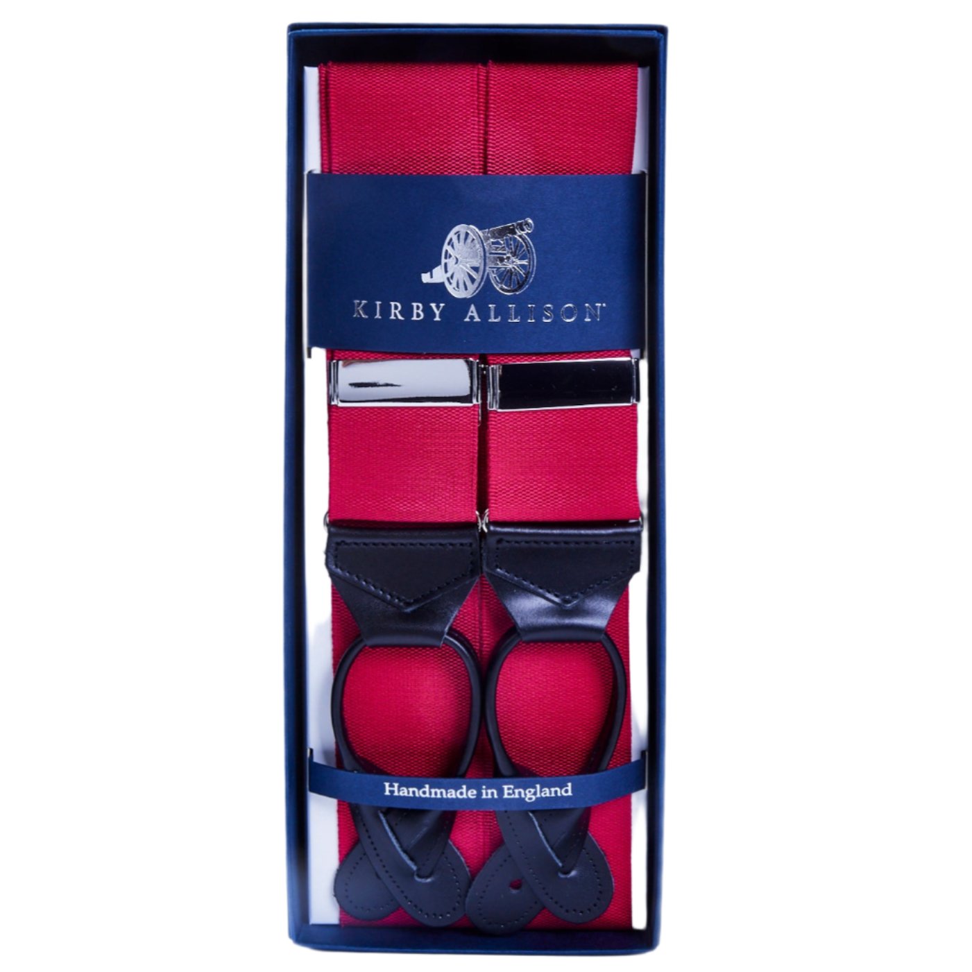 Our Sovereign Grade Braces are made exclusively for Kirby Allison in the United Kingdom. All of our braces feature smart leather ends and are fully adjustable, both the front and the back. The adjustable back is especially important for allowing the proper placement of the back yoke at the shoulder blades, which prevents the braces from sliding down the shoulders.