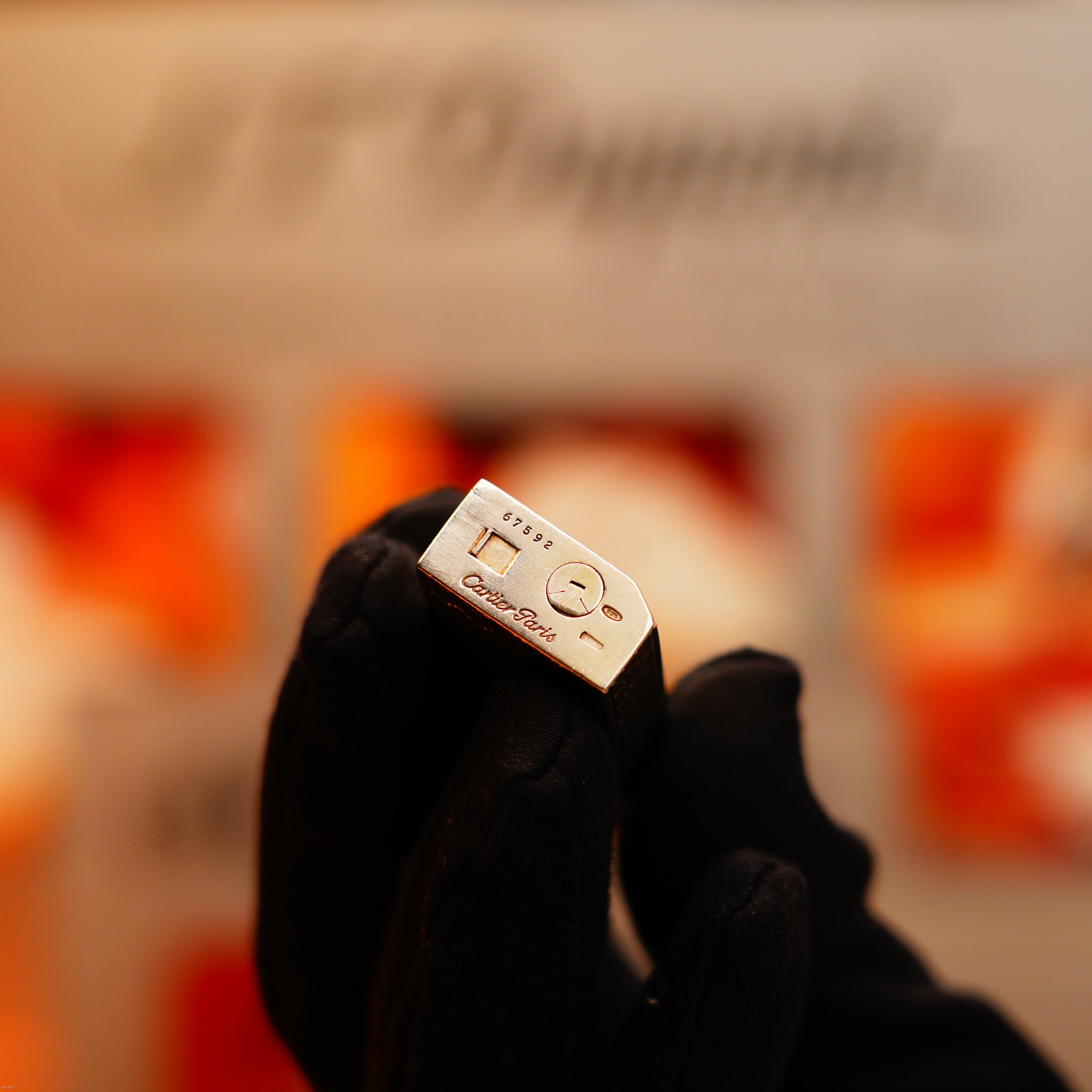 Collectors will appreciate not only its striking design but also its investment-level value, as fully solid silver Cartier lighters from this era are exceedingly rare and coveted.
