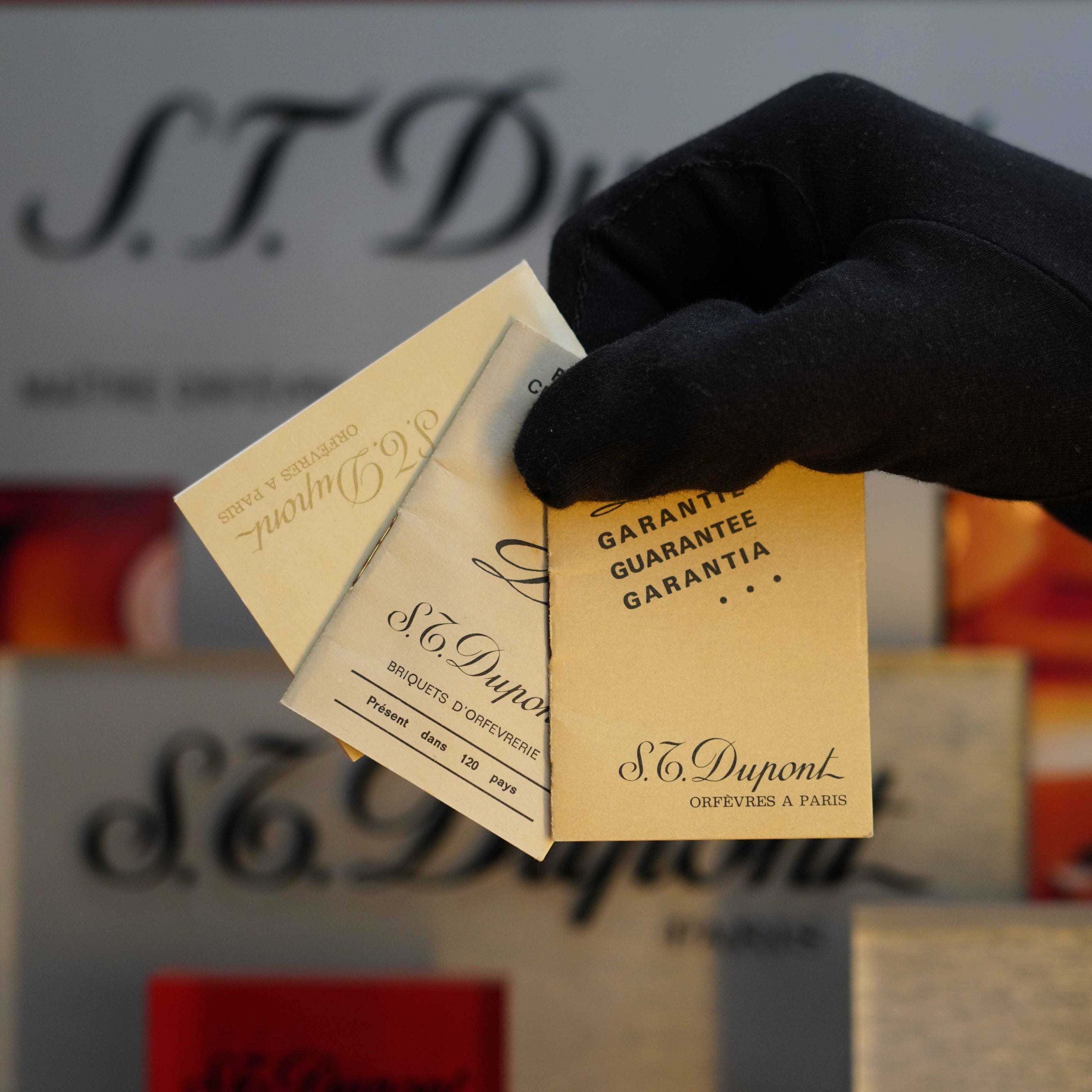 A distinguished example featuring the iconic red S.T. Dupont signature on the back—a hallmark of authenticity and vintage charm.