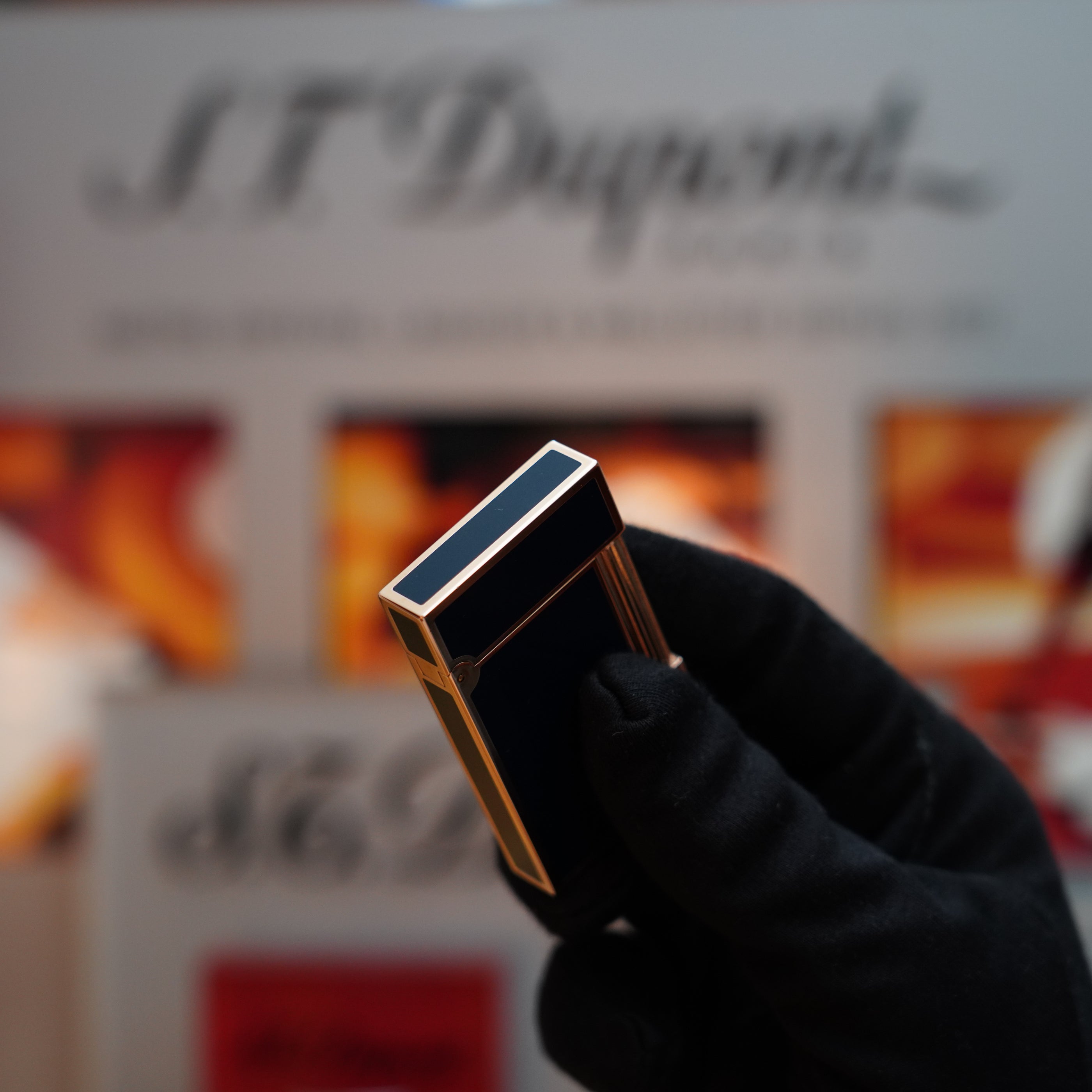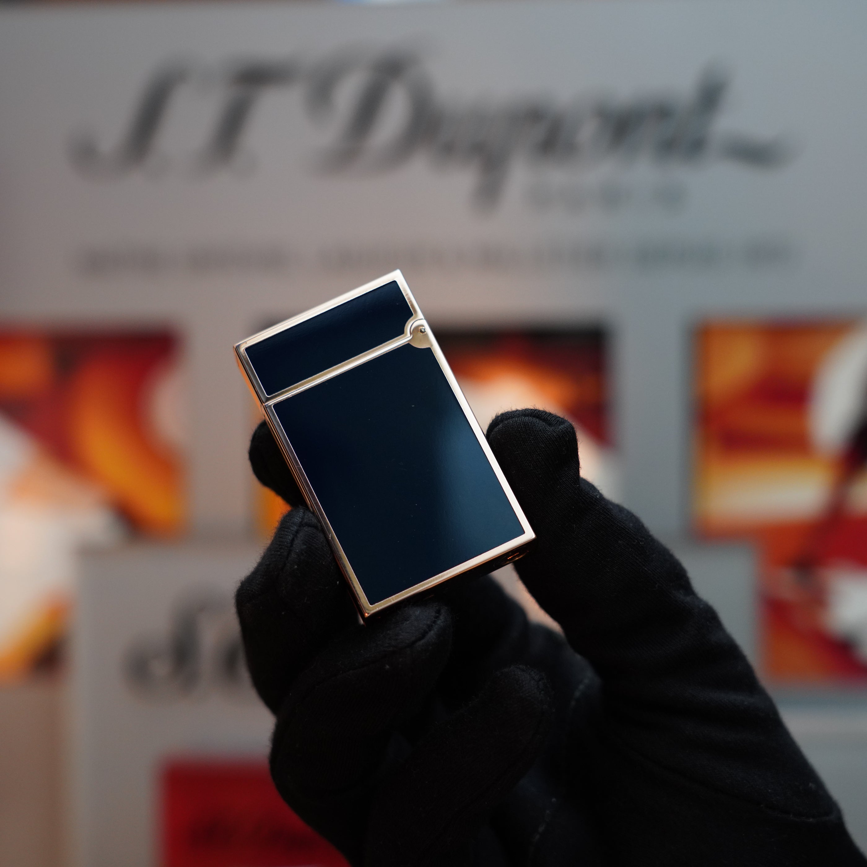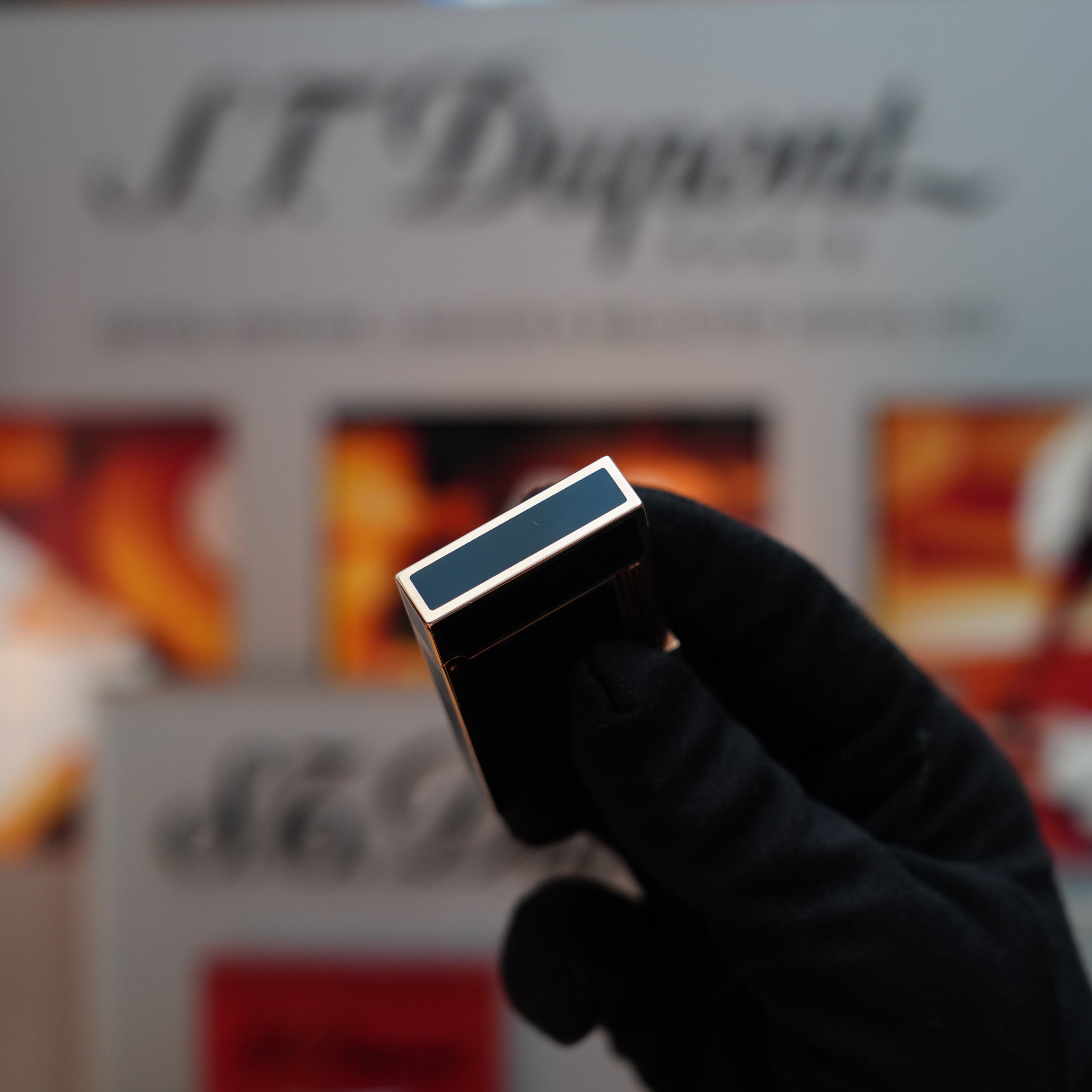 Vintage 1970 St Dupont Dark Blue Lacquer Early Model Heavy 24k Rose Gold Finish Ligne 2 Lighter