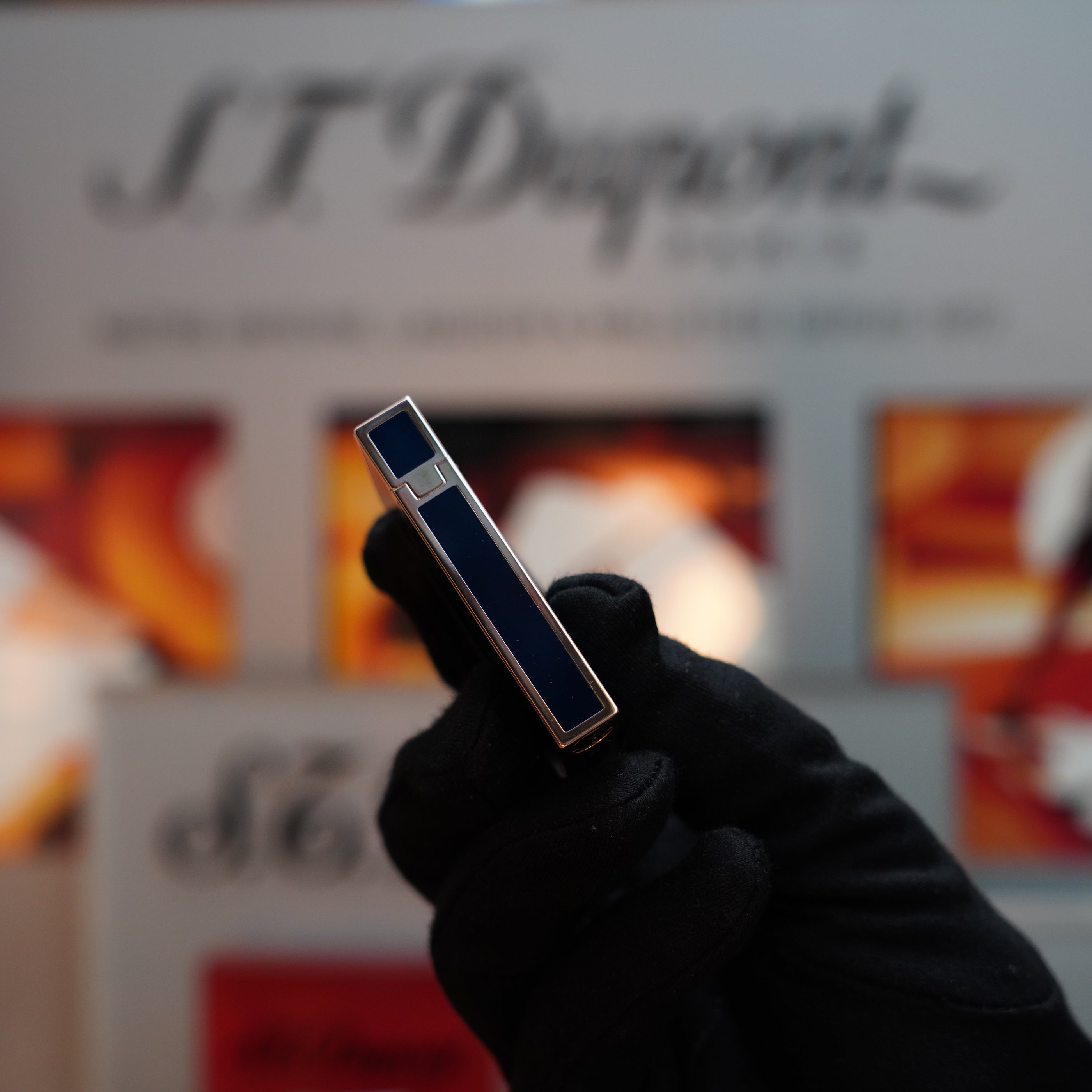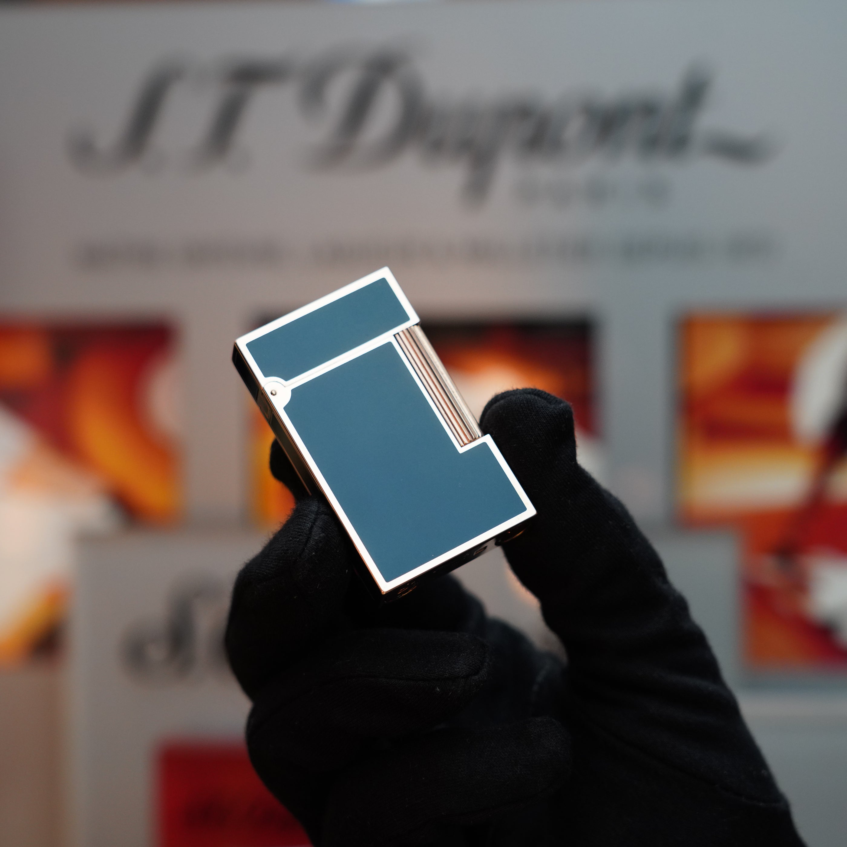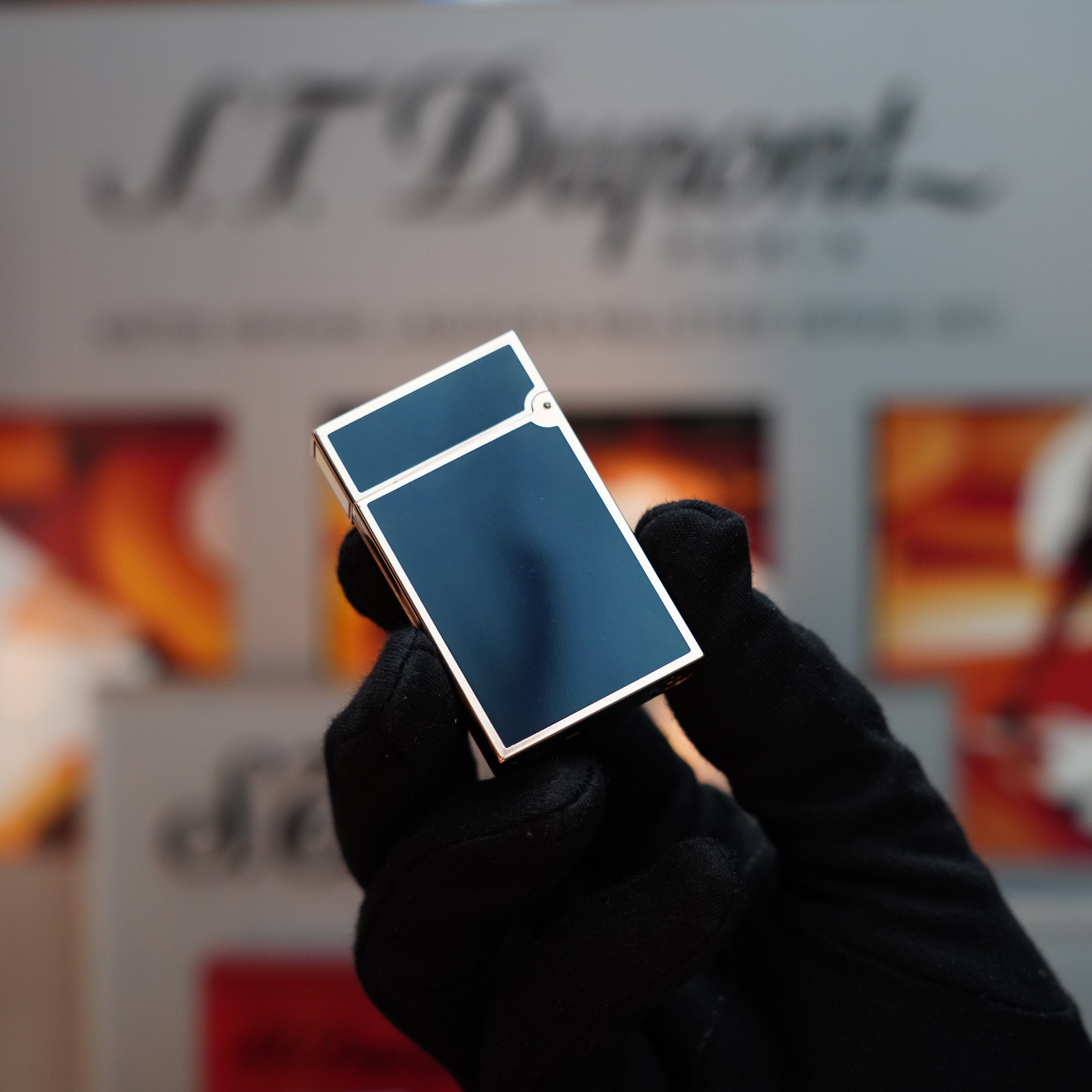 Vintage 1970 St Dupont Dark Blue Lacquer Early Model Heavy 24k Rose Gold Finish Ligne 2 Lighter
