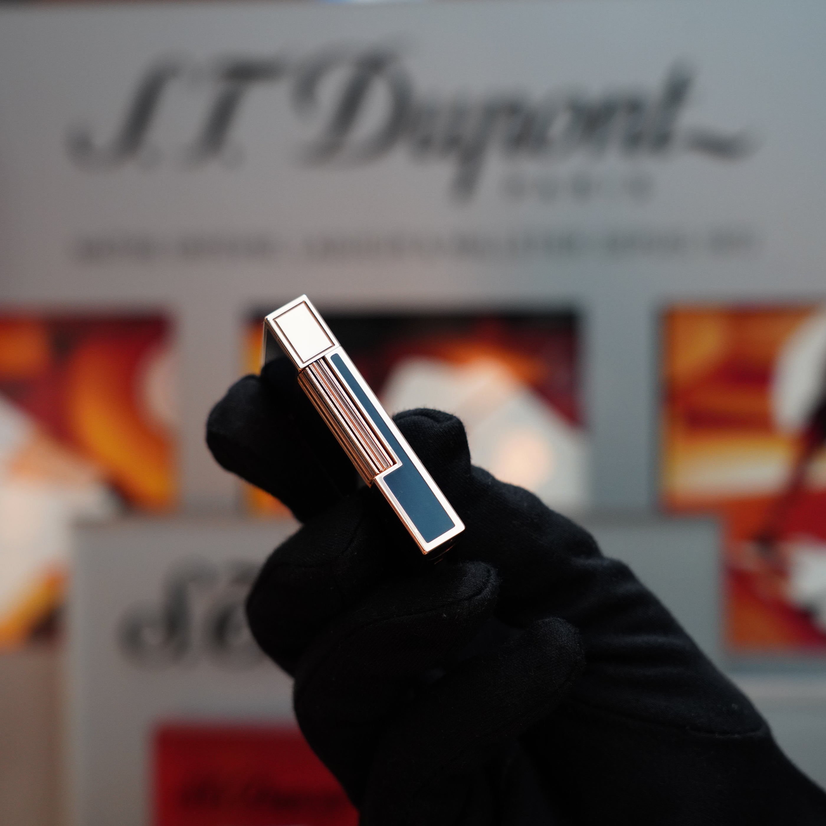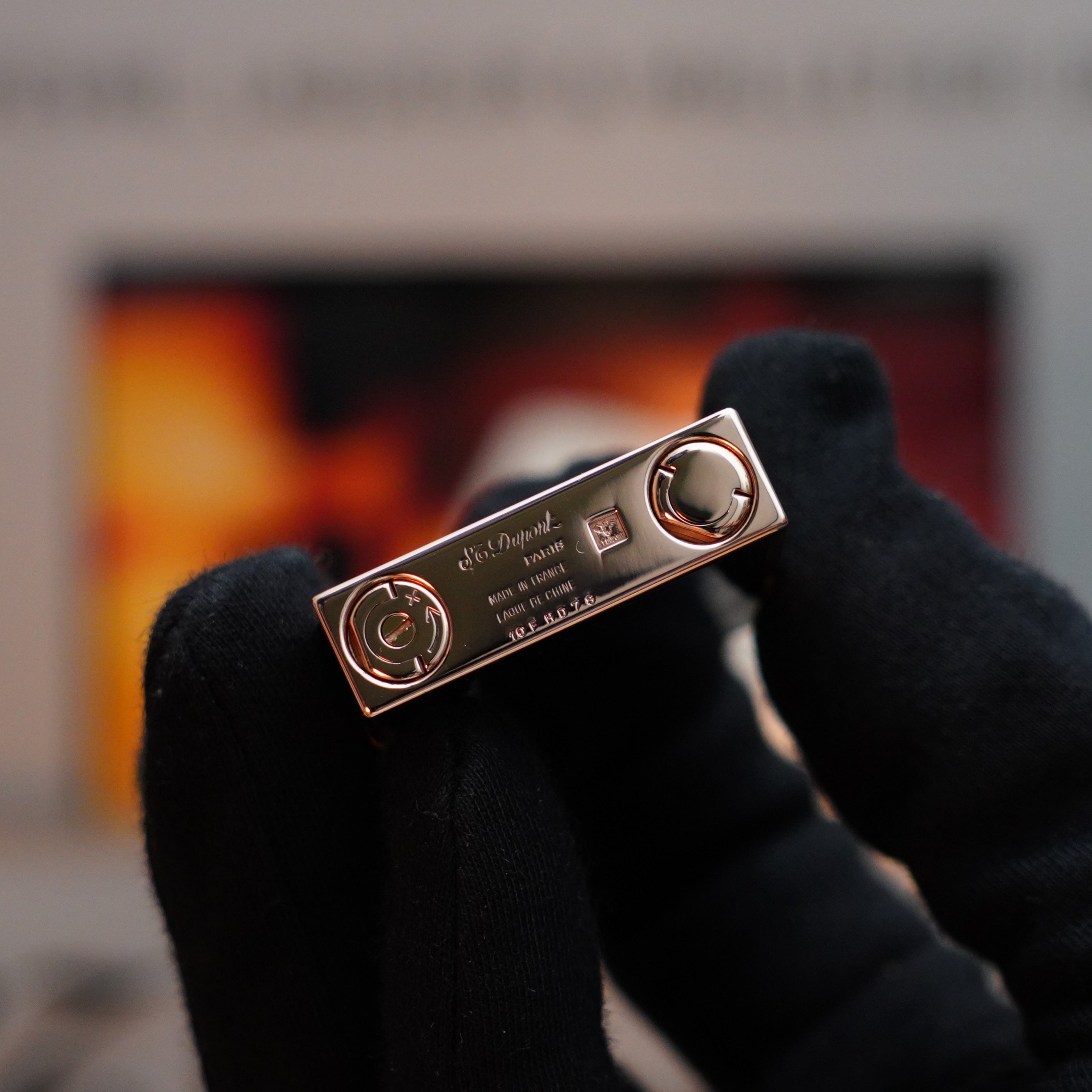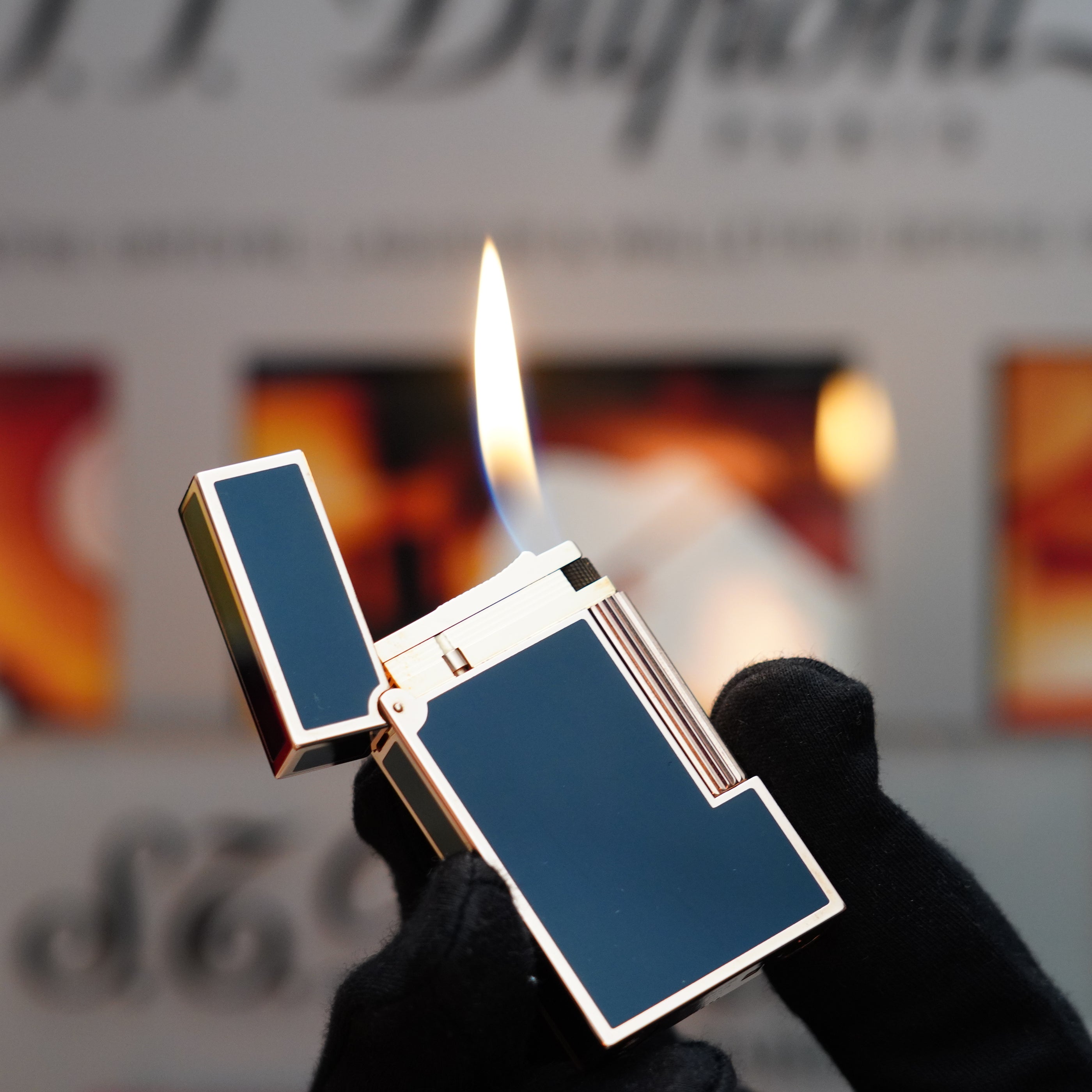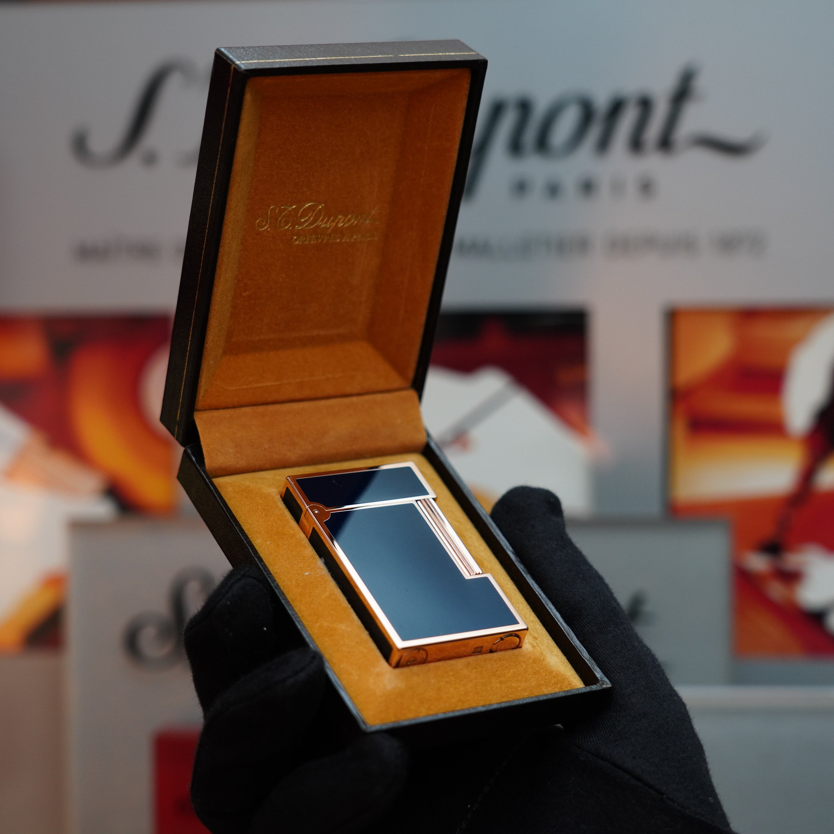 This beautiful Vintage St Dupont Dark Navy Lacquer Early Model Heavy 24k Rose Gold Finish Ligne 2 Lighter was crafted in the 1970 . It is a beautiful example of Ligne 2 Large Size Rose Gold Series.