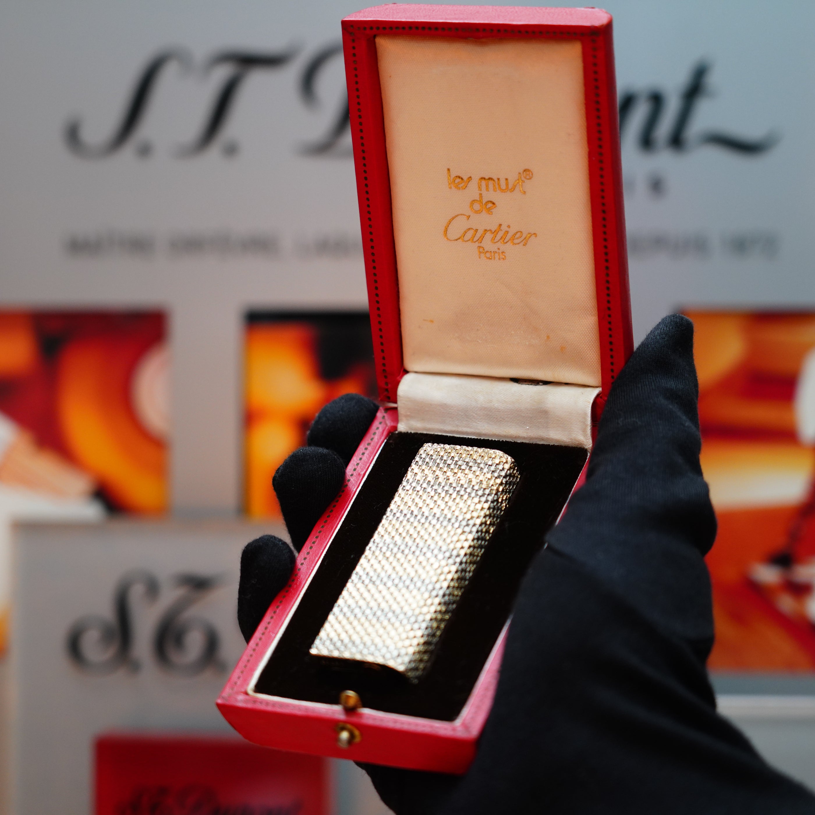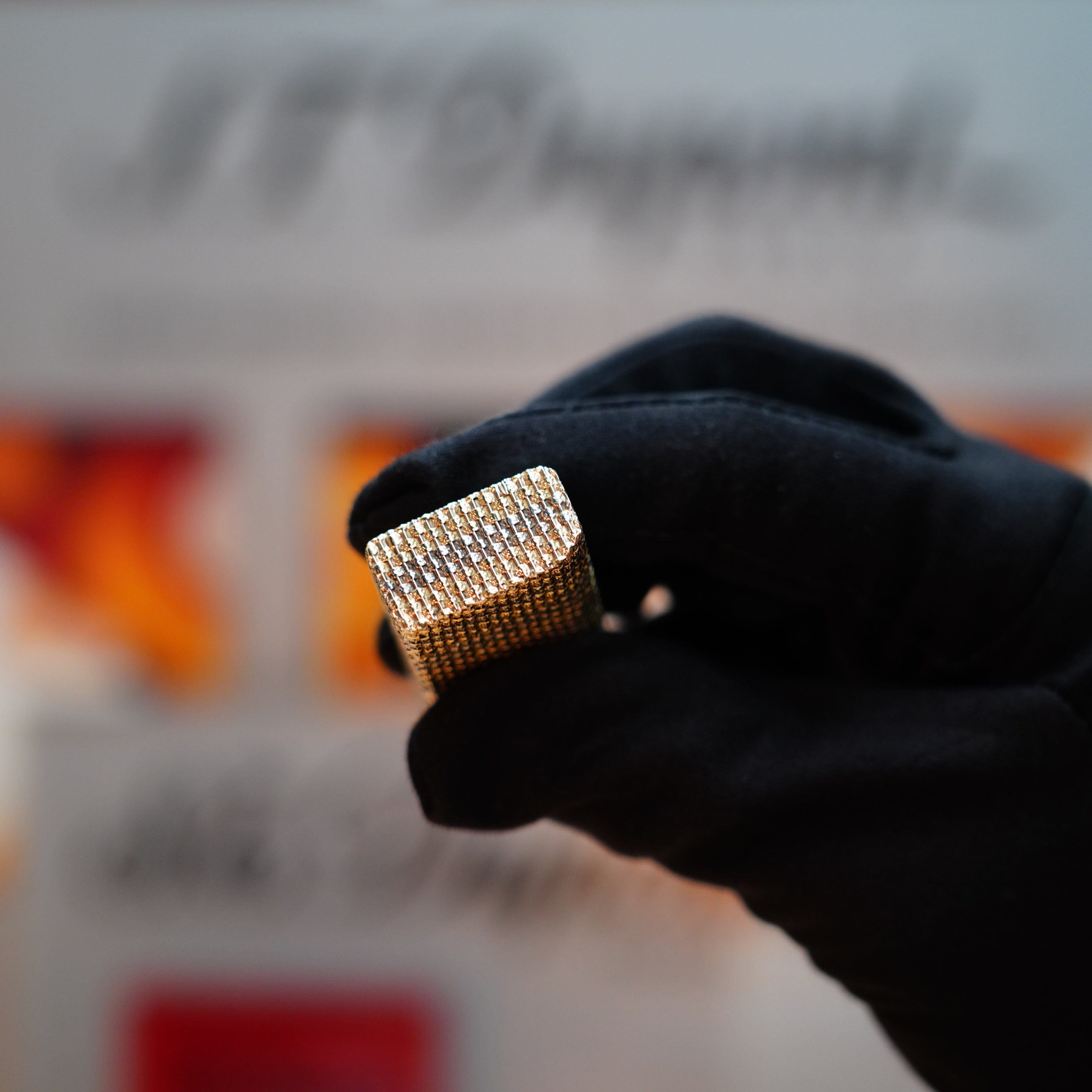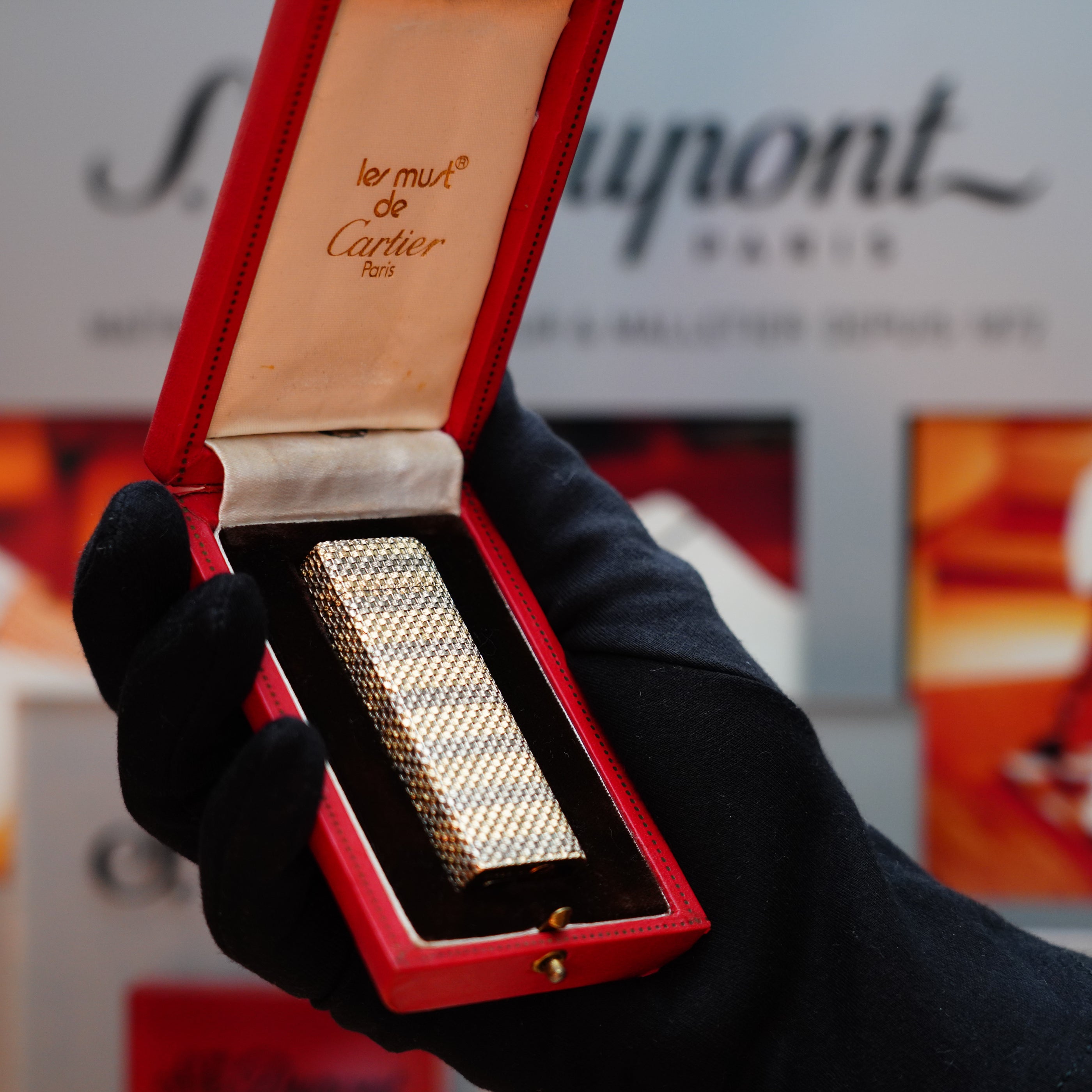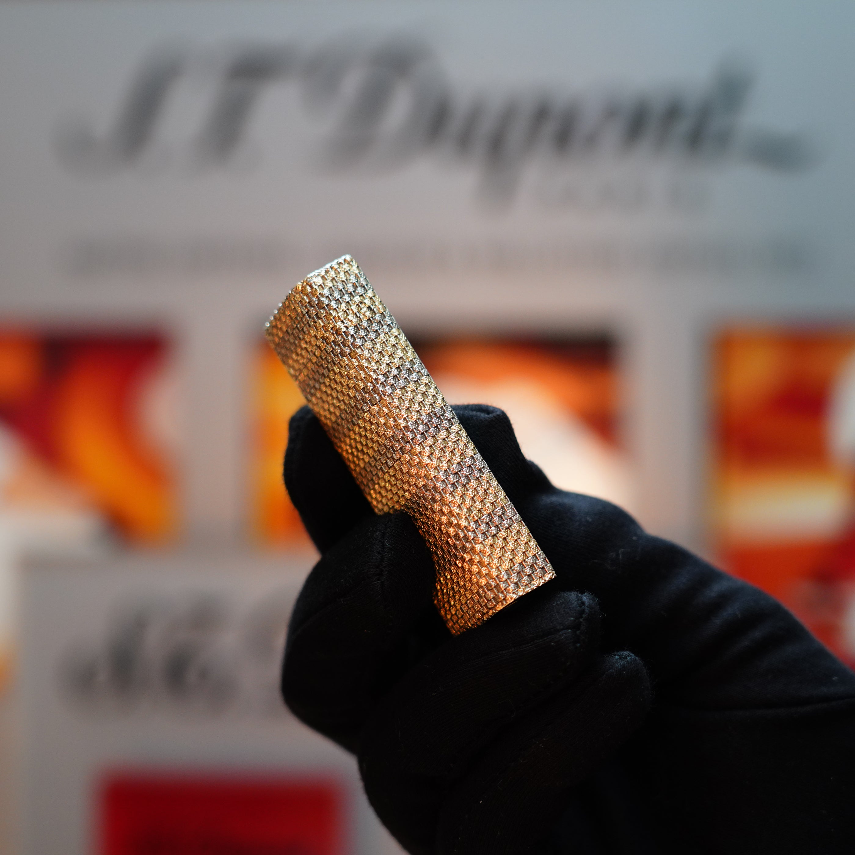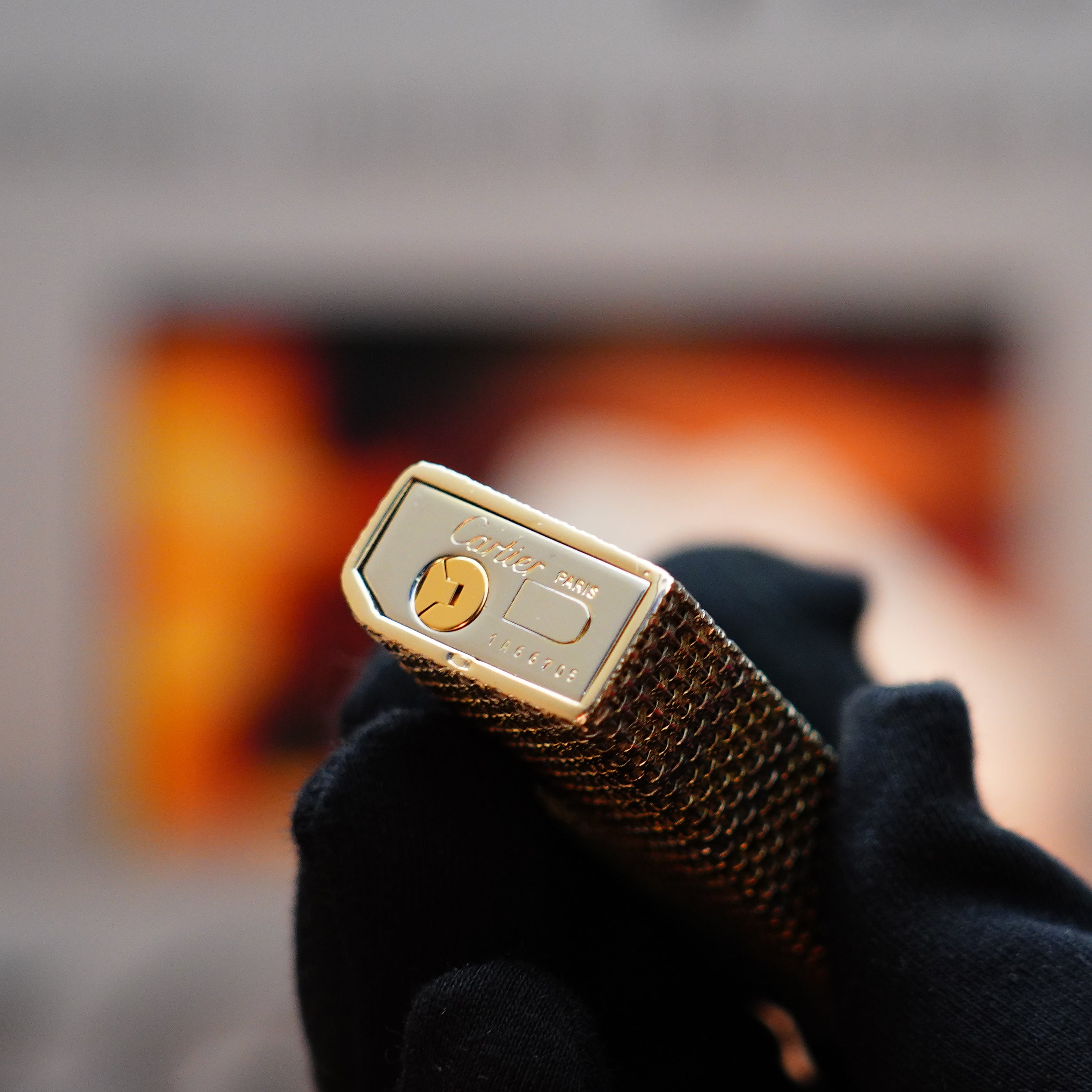 This vintage piece is a rare iconic Basket Solid 18k Gold Heavy Pentagon lighter made by Cartier ,