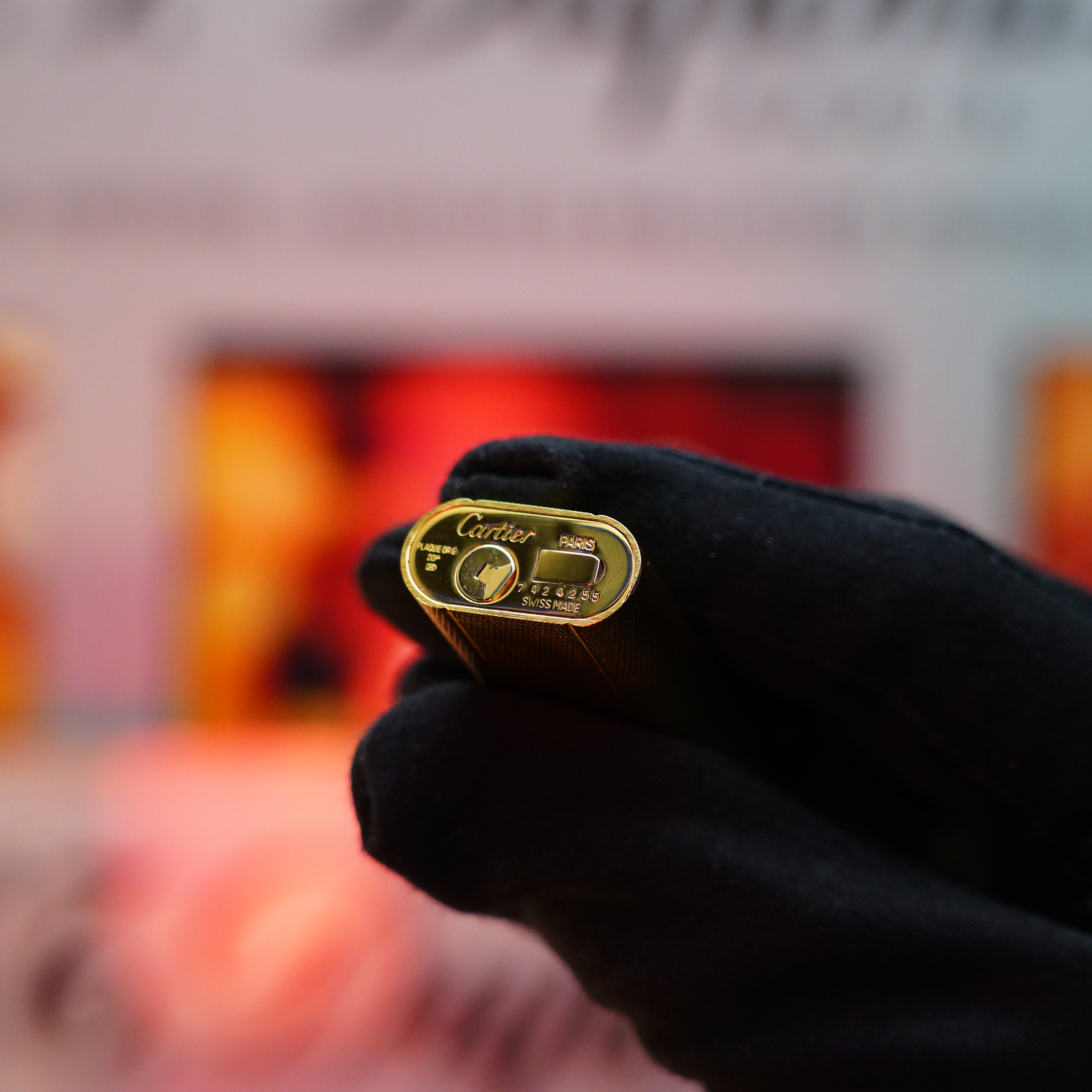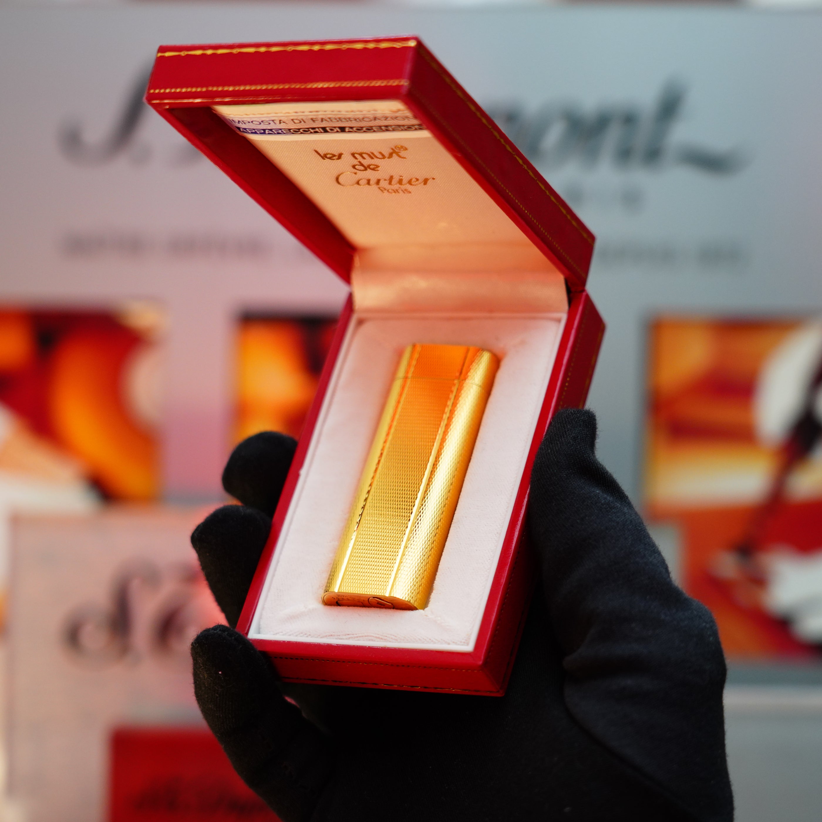This beautiful Vintage 1980 Cartier 24k Gold Finish Le Must Fine Hobnail & Lines Pattern Lighter was crafted in the 1980.