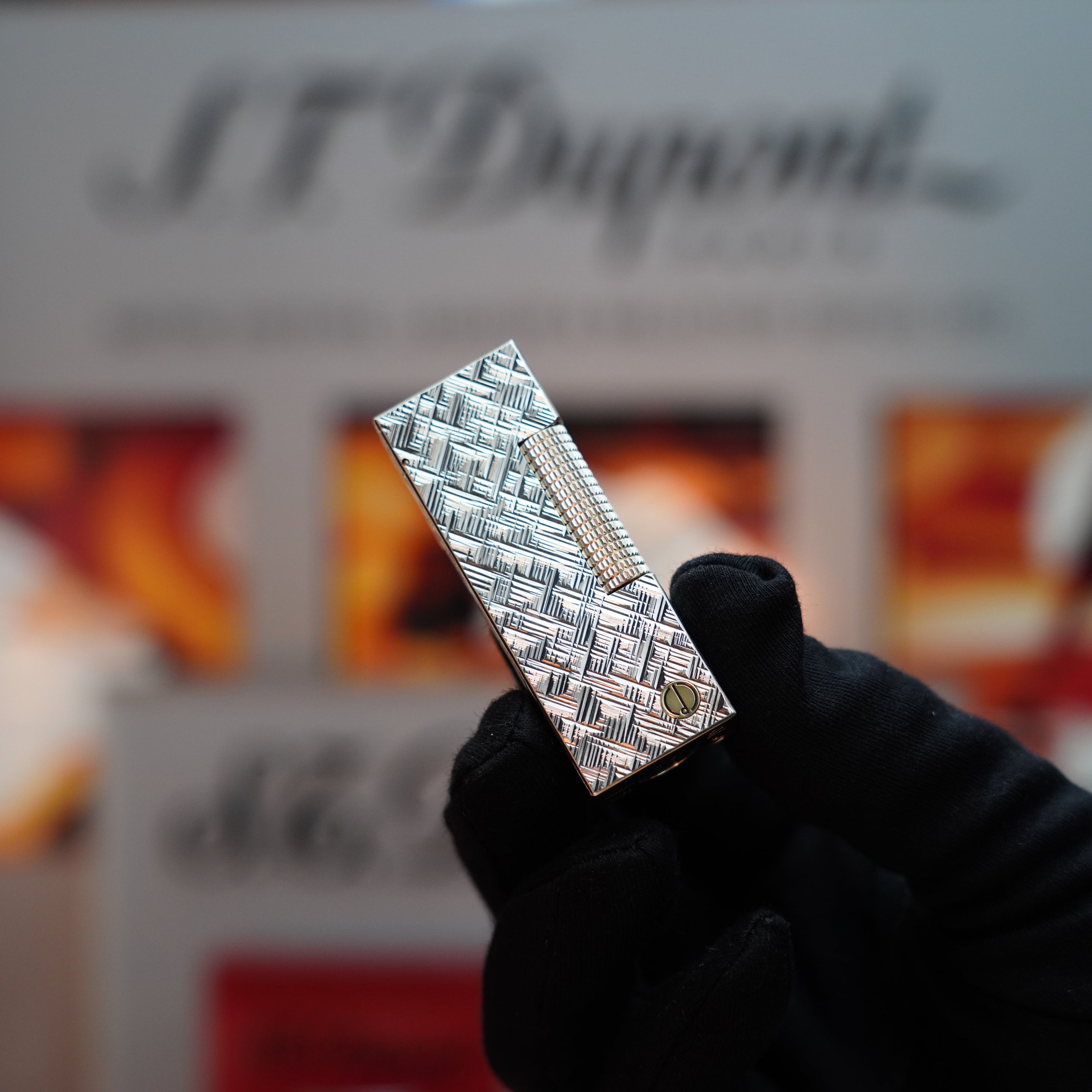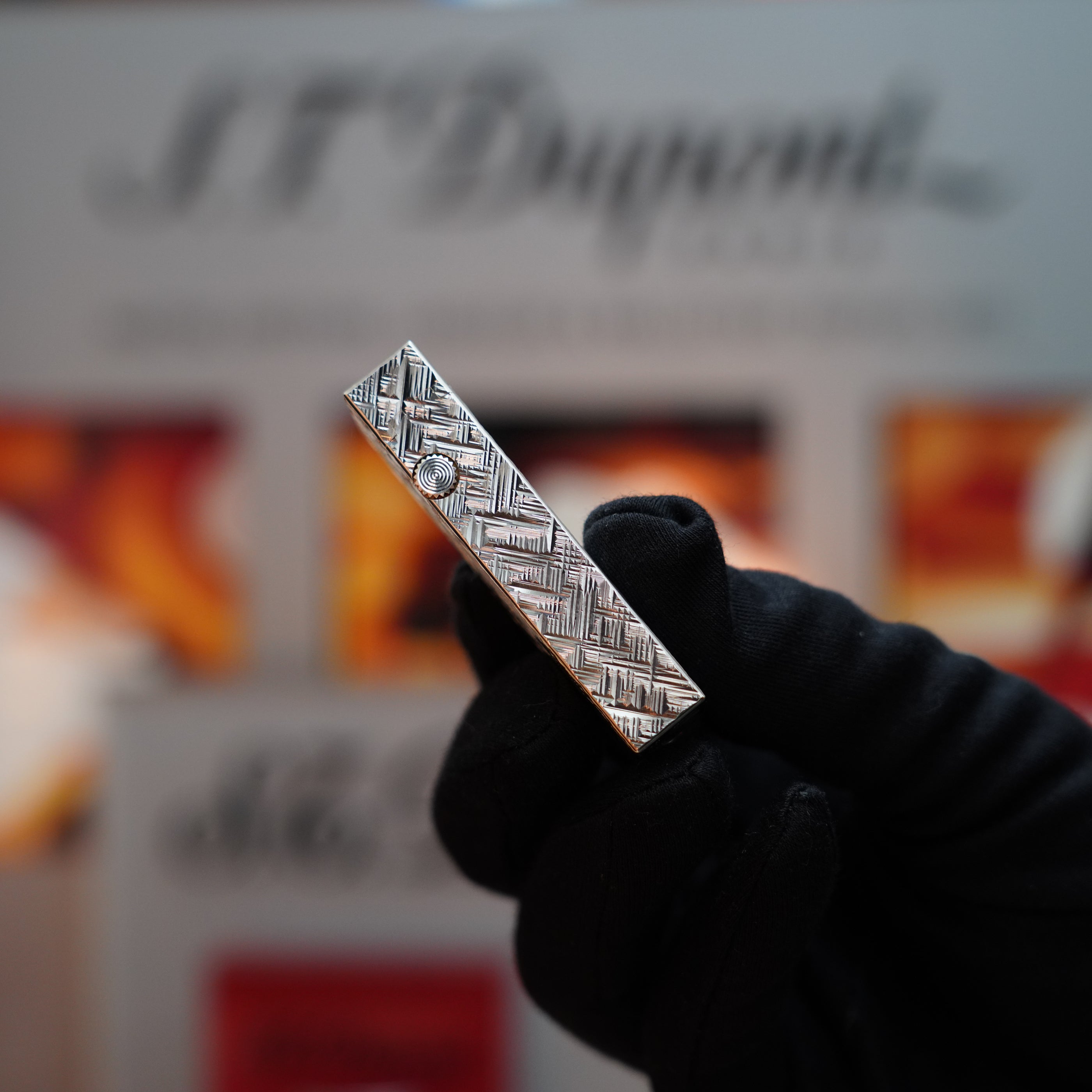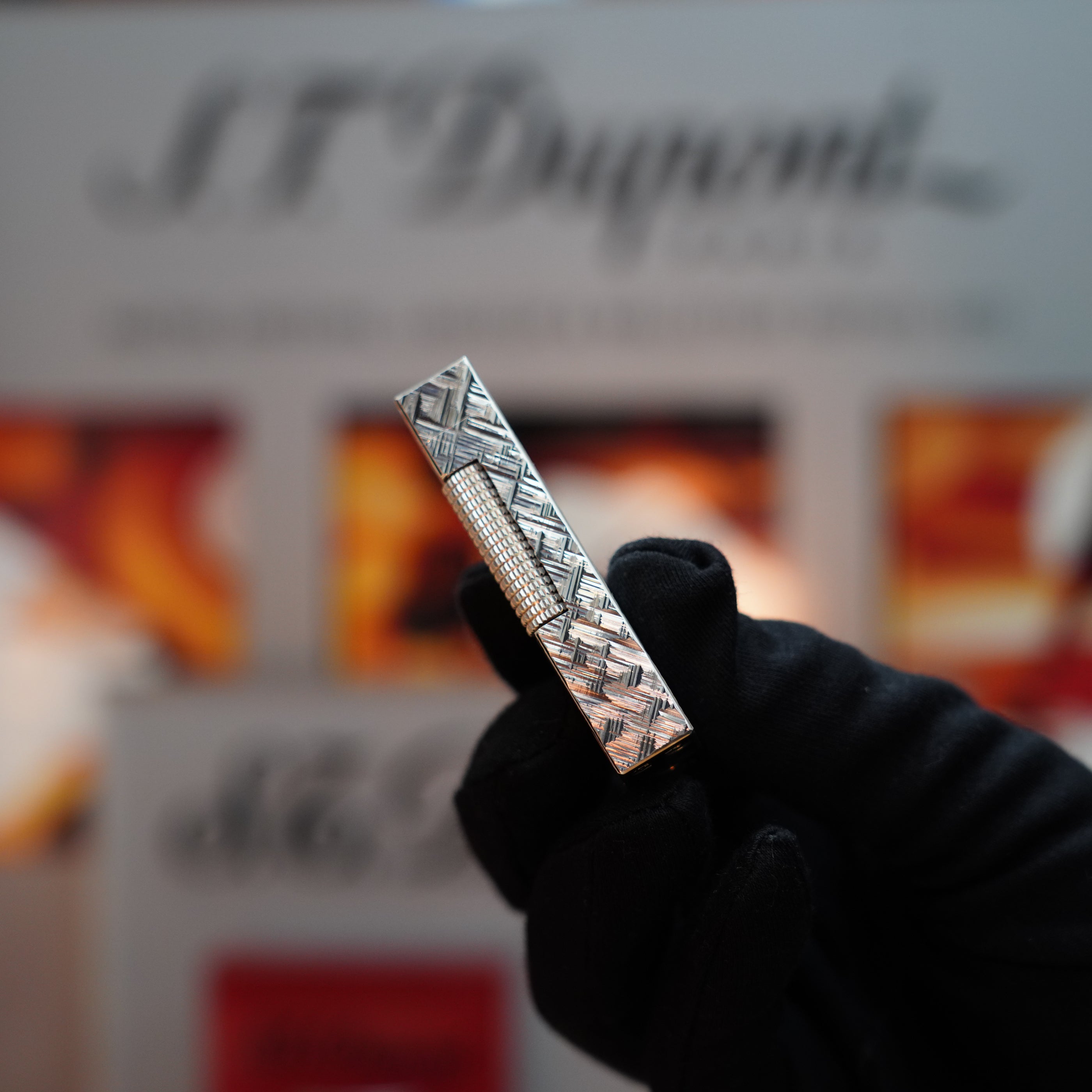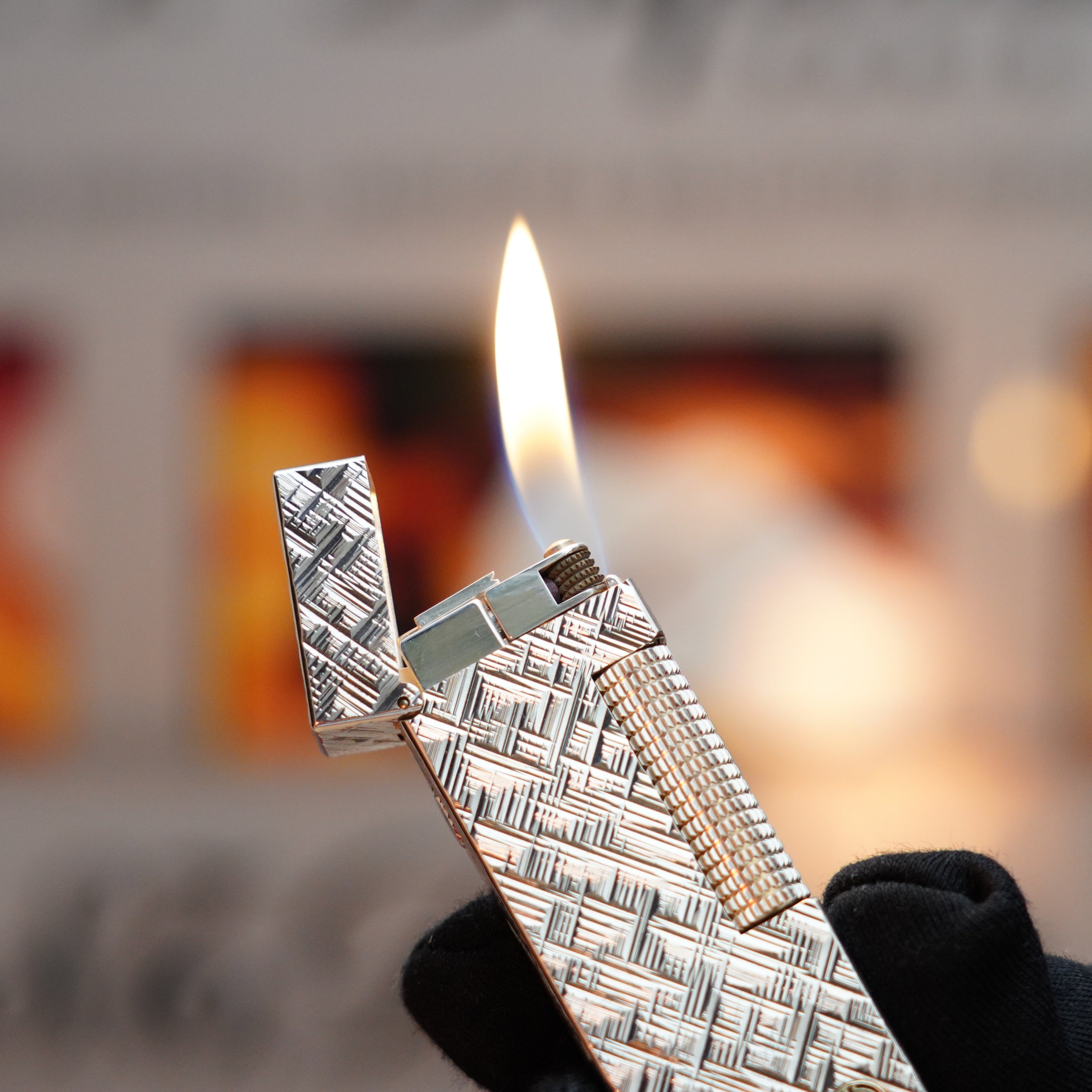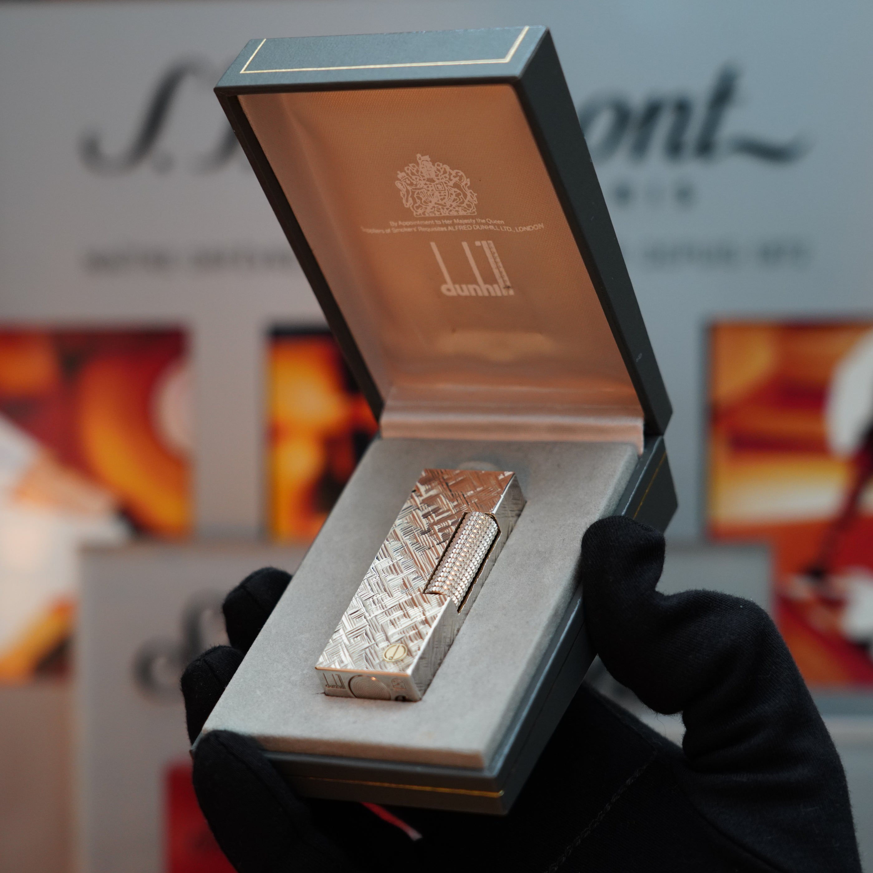This beautiful Vintage Dunhill D line Rollagas Cross Hatch Heavy Silver Finish rare Lighter was crafted in the 1980. It is a beautiful example of Rare D line Rollagas Series.