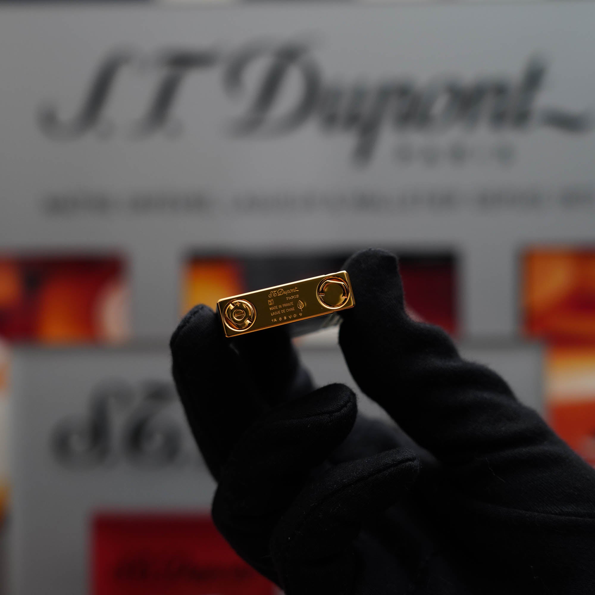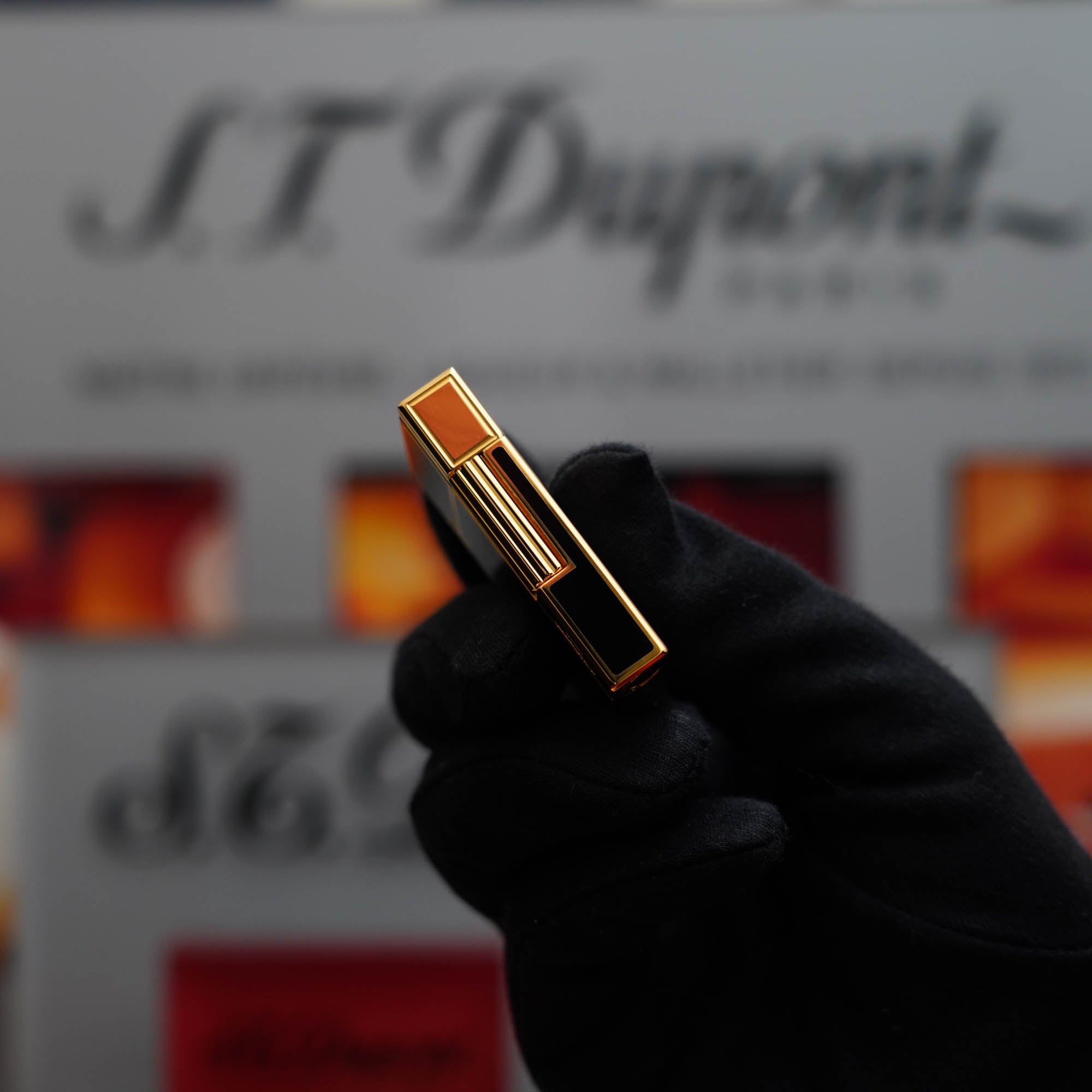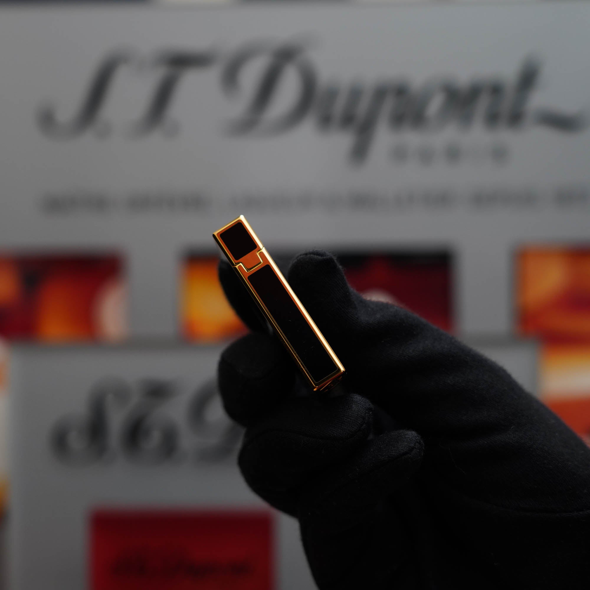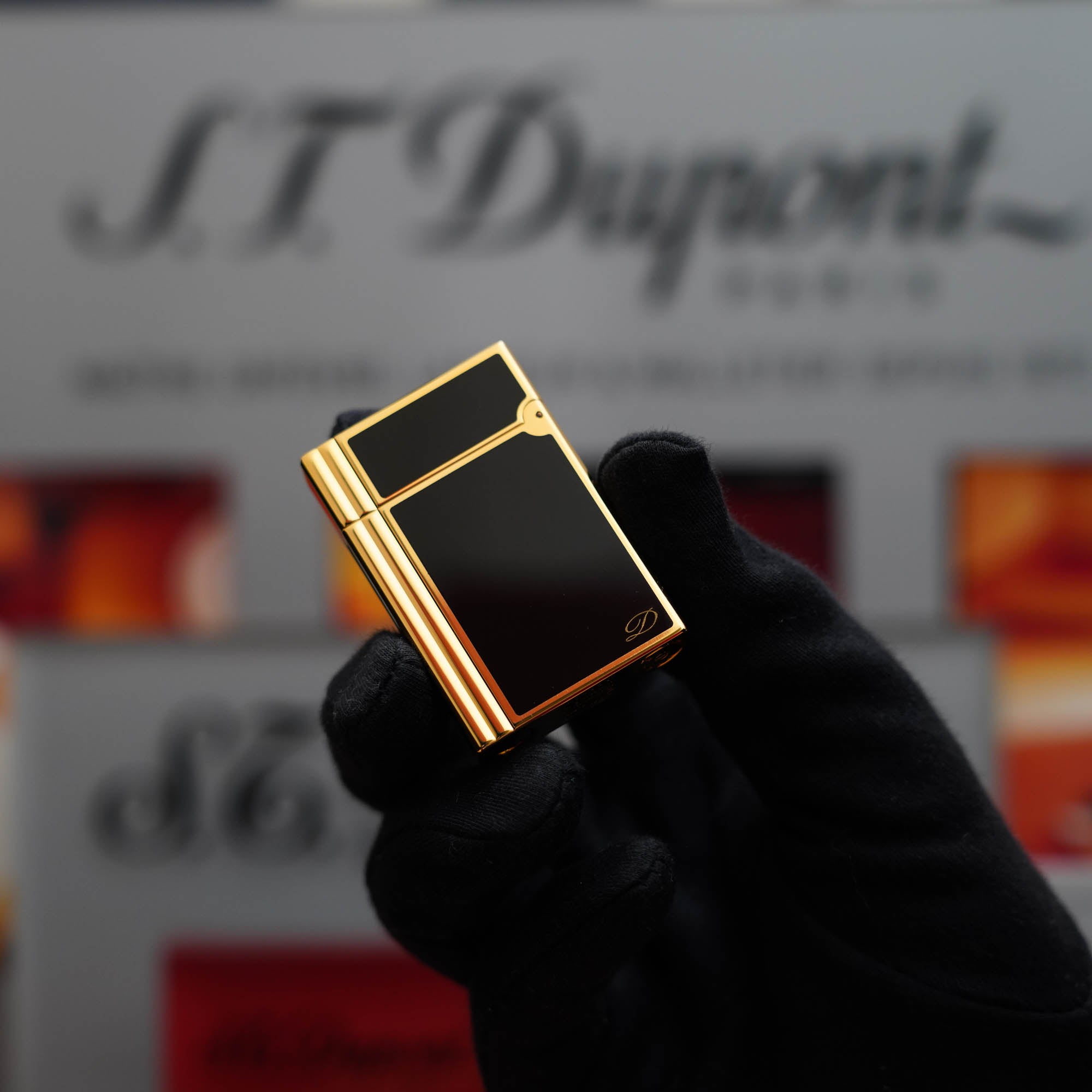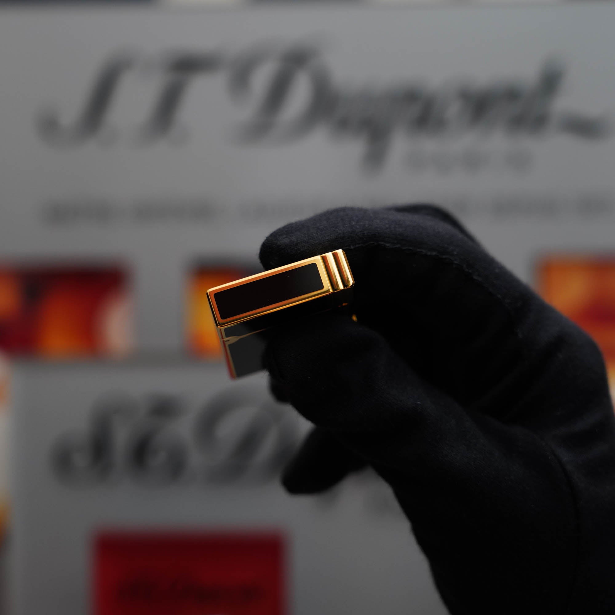 This beautiful S.T. Dupont Gatsby Ligne 2 Lighter, finished in heavy 24k gold with black lacquer, was expertly crafted in the 1980s.