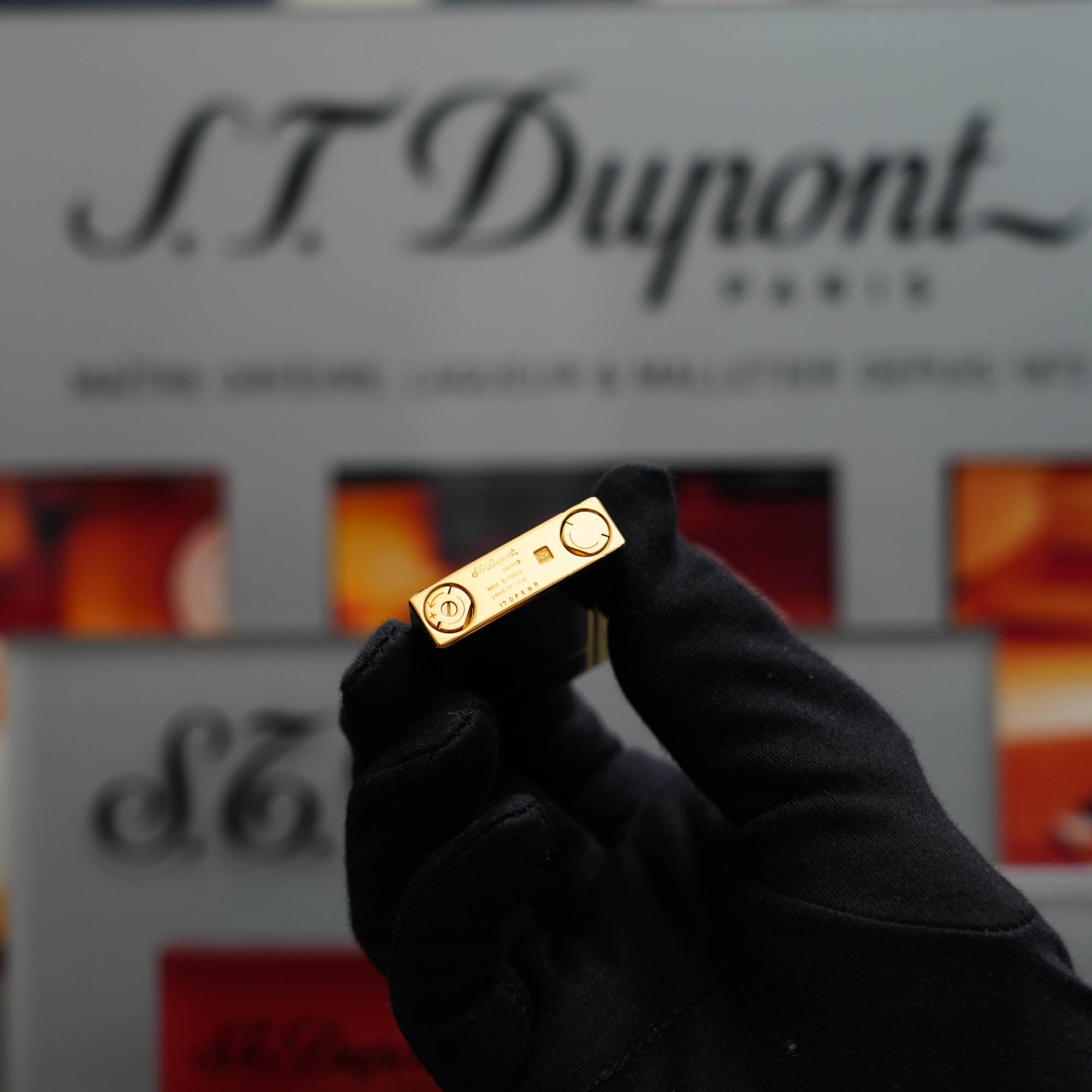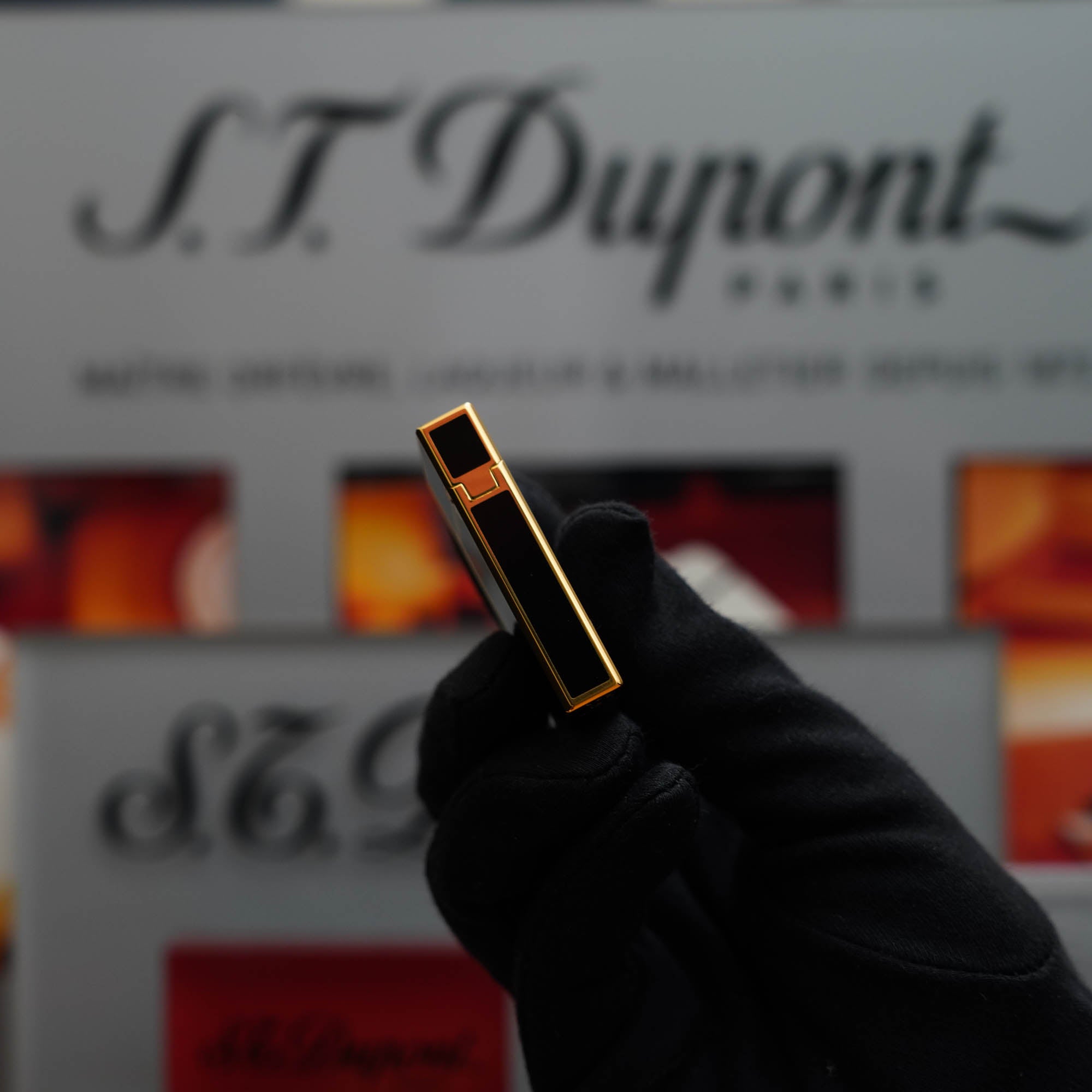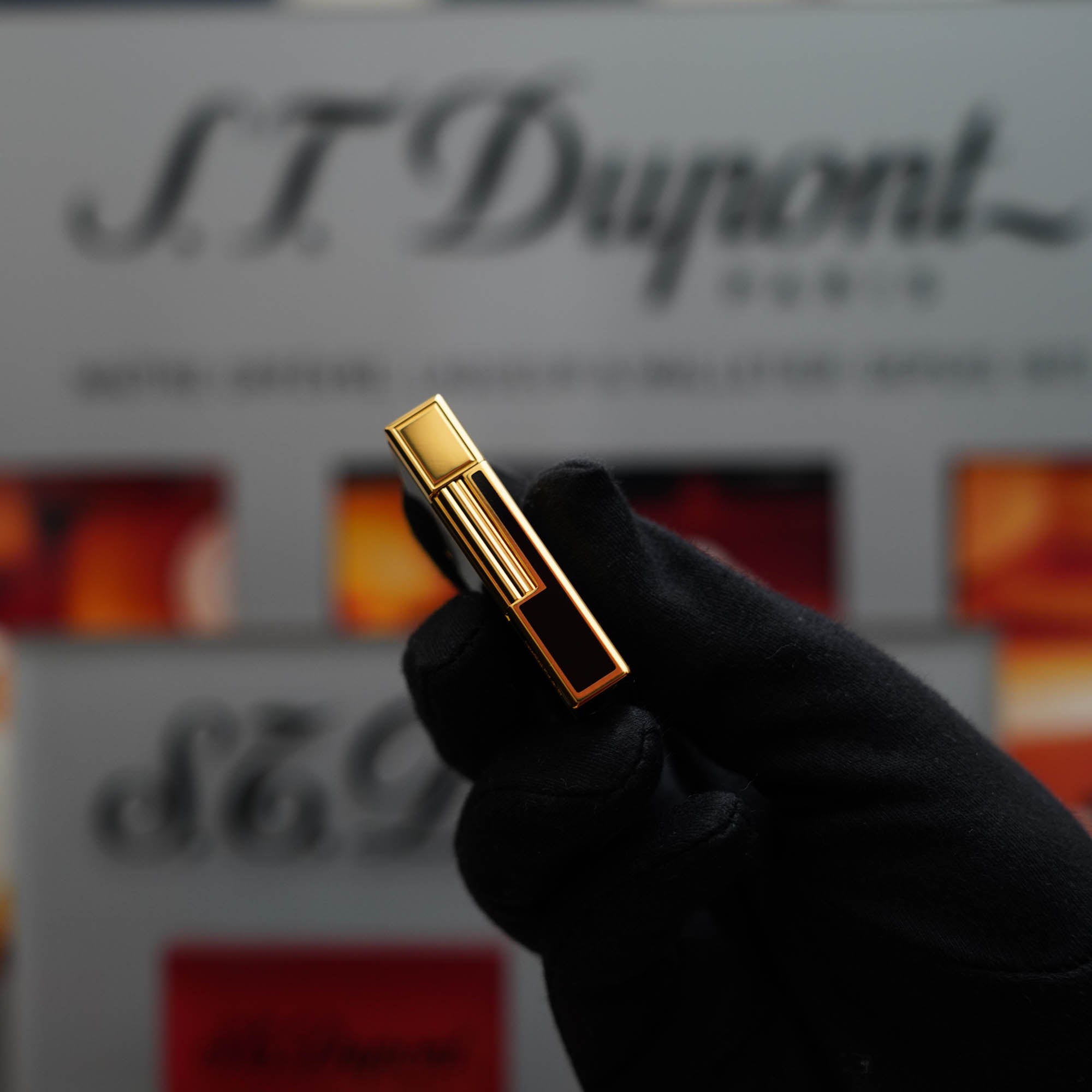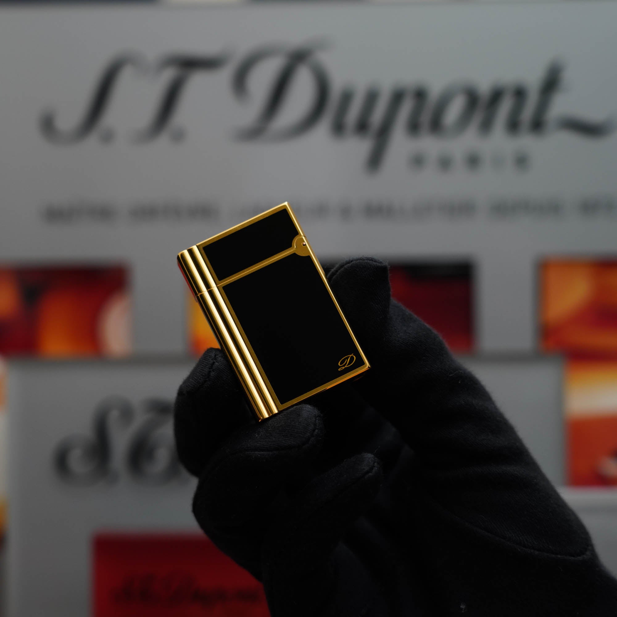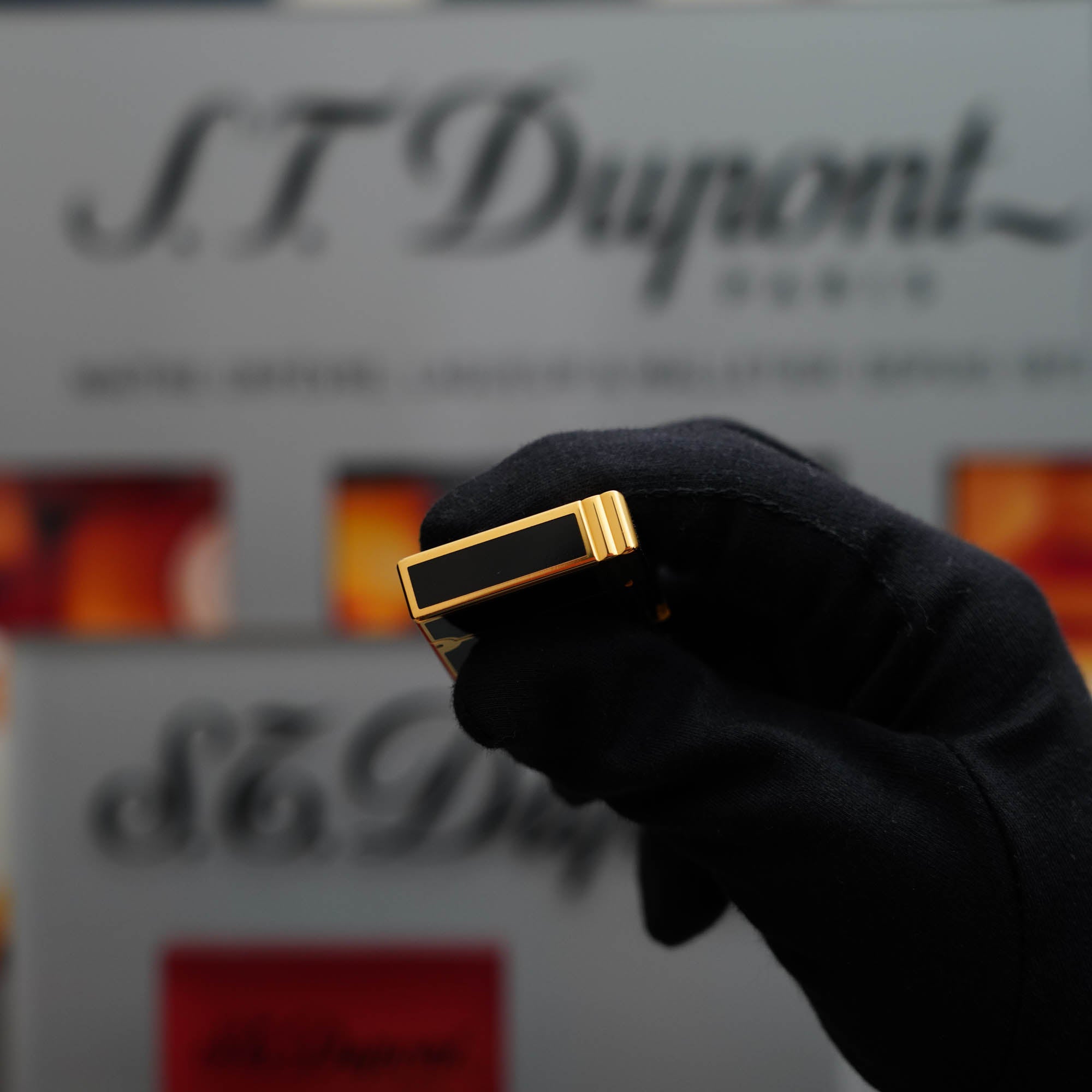This exceptional S.T. Dupont Gatsby Ligne 2 Lighter, finished in heavy 24k gold with natural black lacquer, was masterfully crafted in the 1980s.