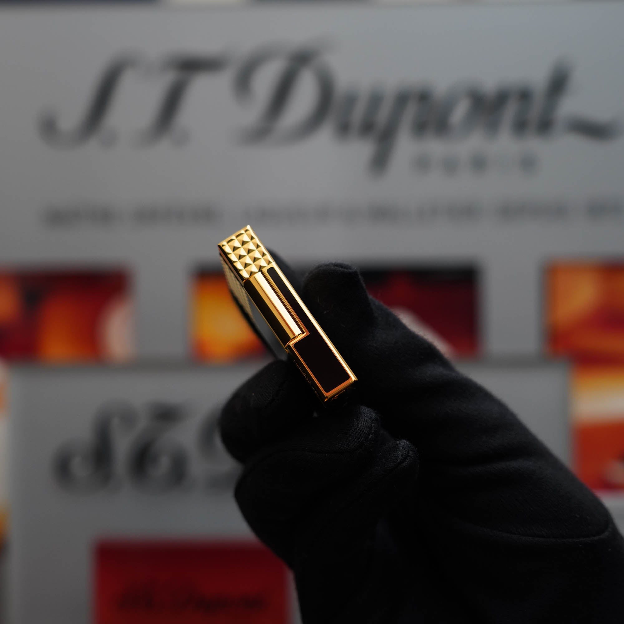 This distinguished S.T. Dupont Gatsby Ligne 2 Lighter, finished in heavy 24k gold with deep black lacquer, was masterfully crafted in the Early 1990
