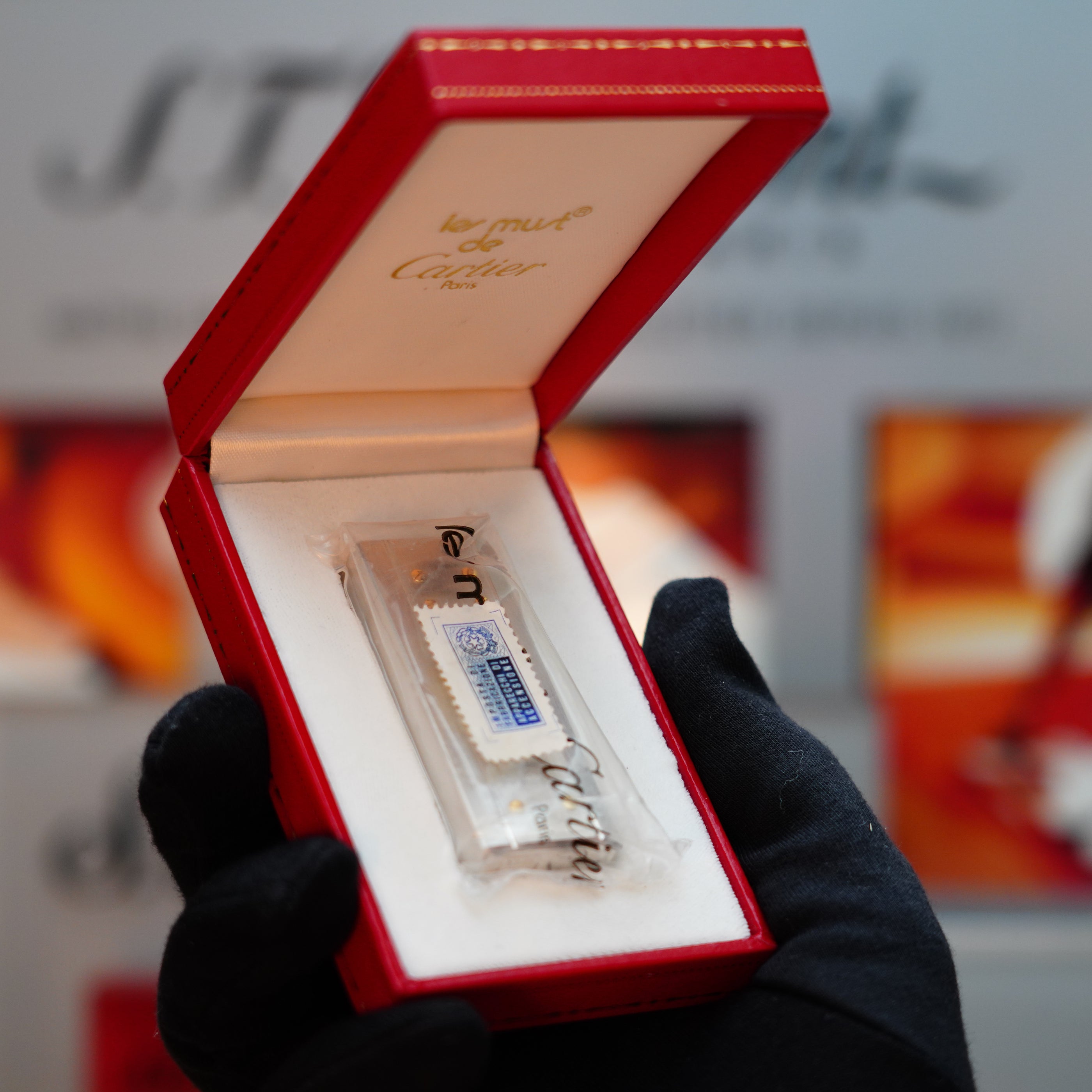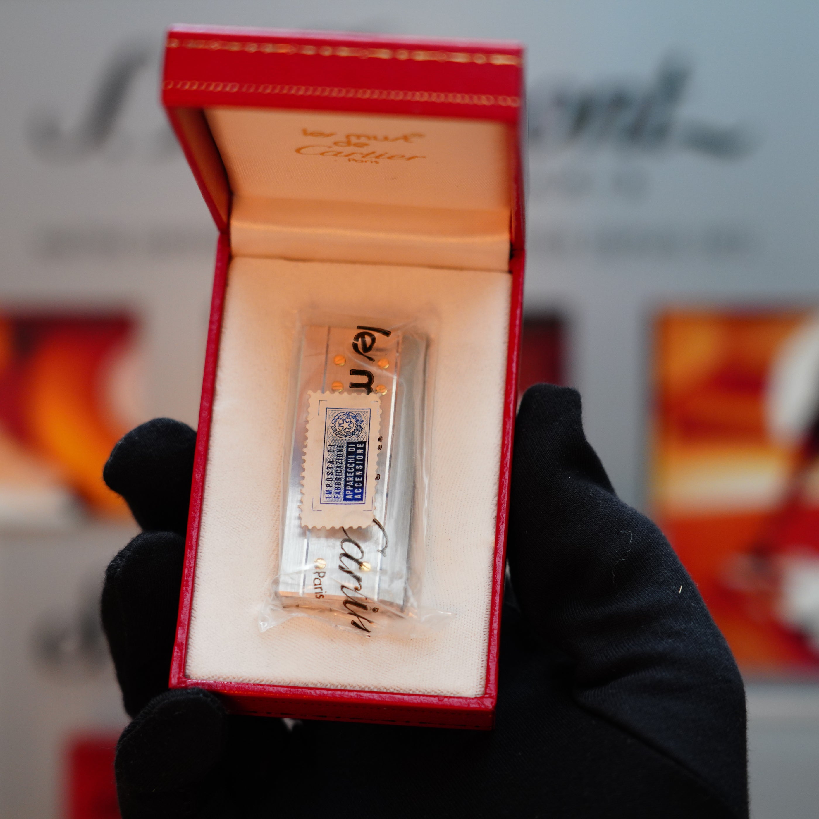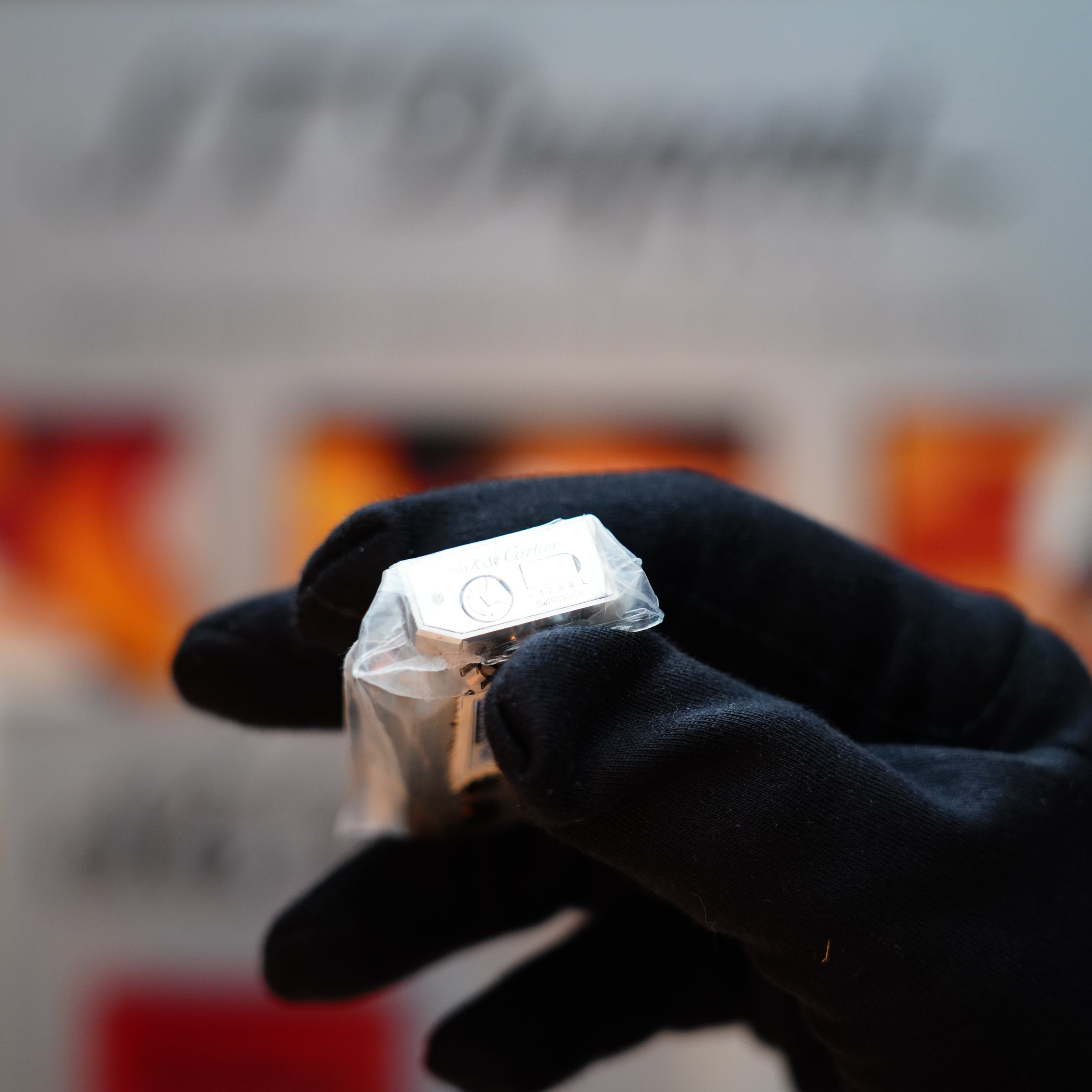 This exquisite vintage Cartier Santos Mini lighter, crafted in 1982, is a rare gem from the iconic Pentagon Series. It features a sleek palladium finish complemented by authentic solid 18k gold screws, highlighting Cartier’s commitment to luxury and detail.