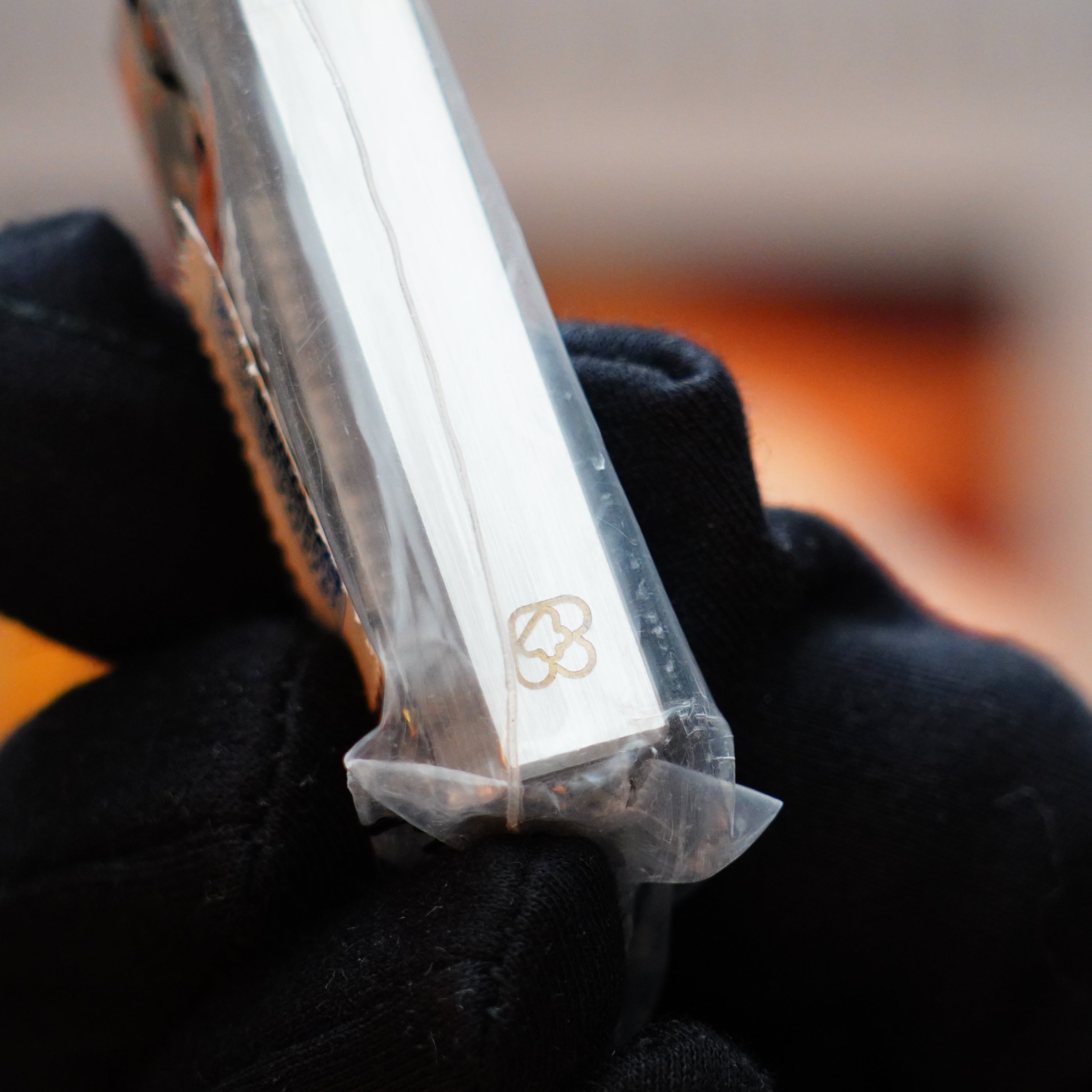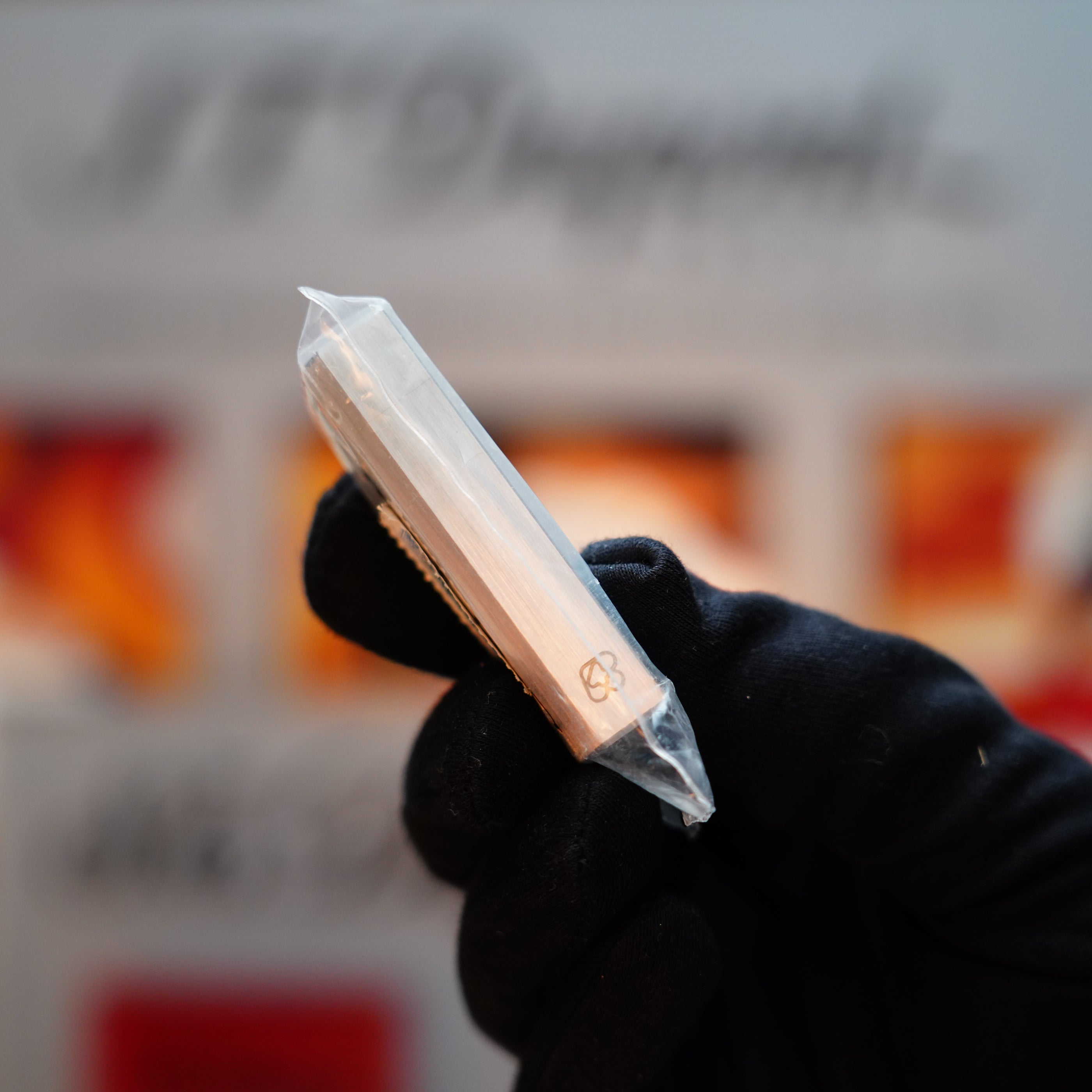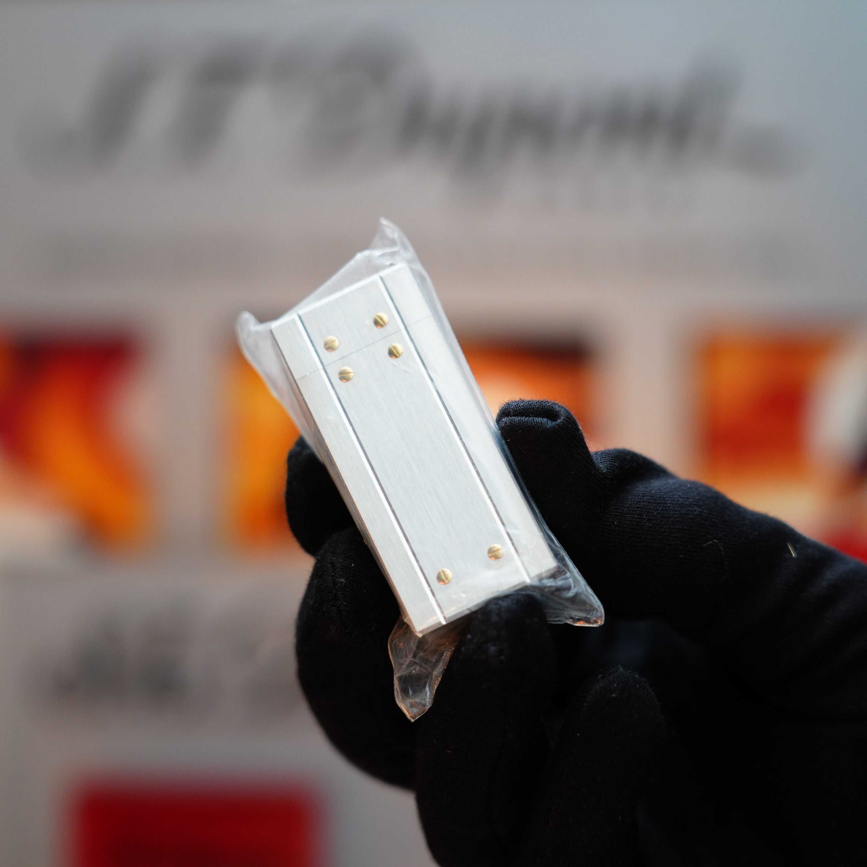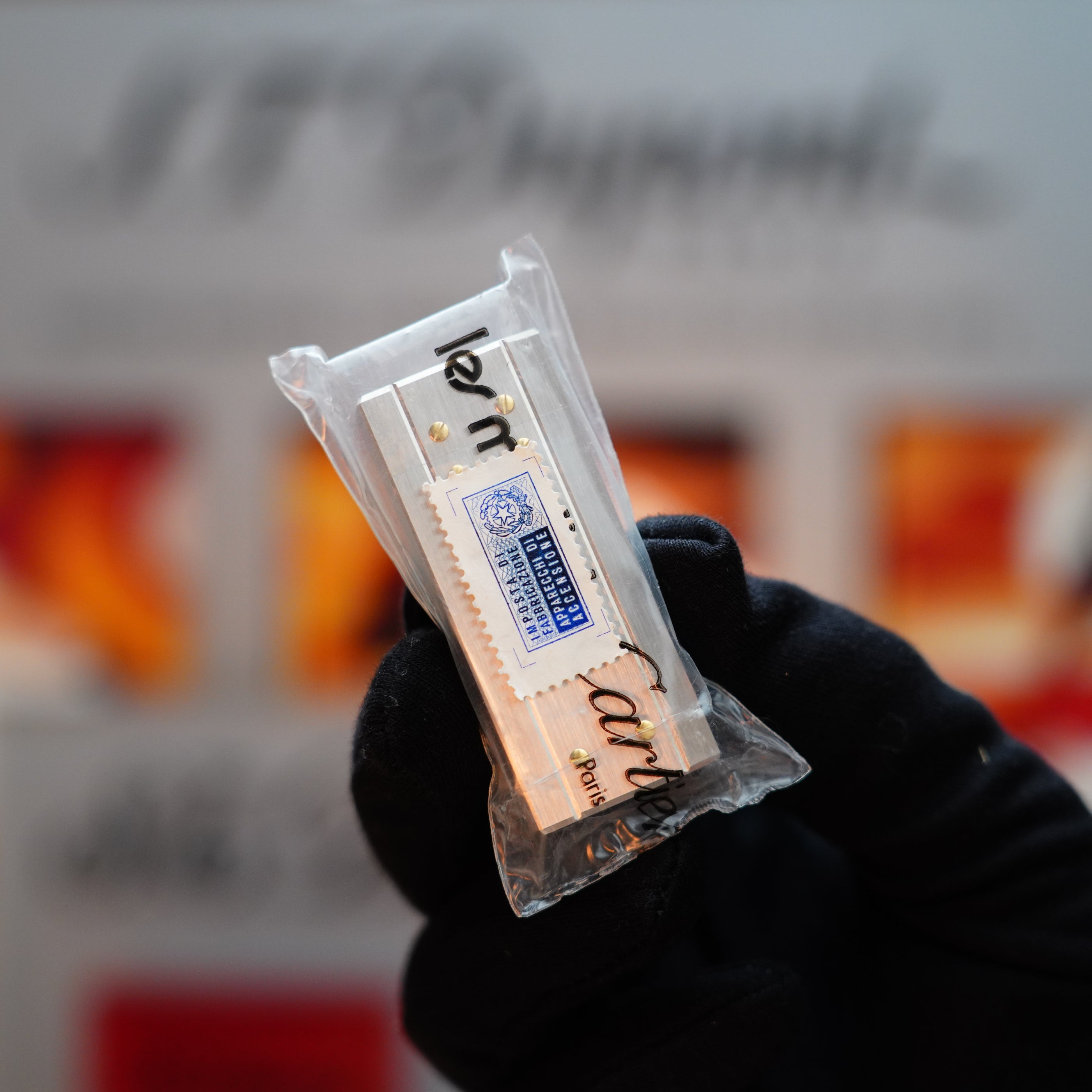 This exquisite vintage Cartier Santos Mini lighter, crafted in 1982, is a rare gem from the iconic Pentagon Series. It features a sleek palladium finish complemented by authentic solid 18k gold screws, highlighting Cartier’s commitment to luxury and detail.