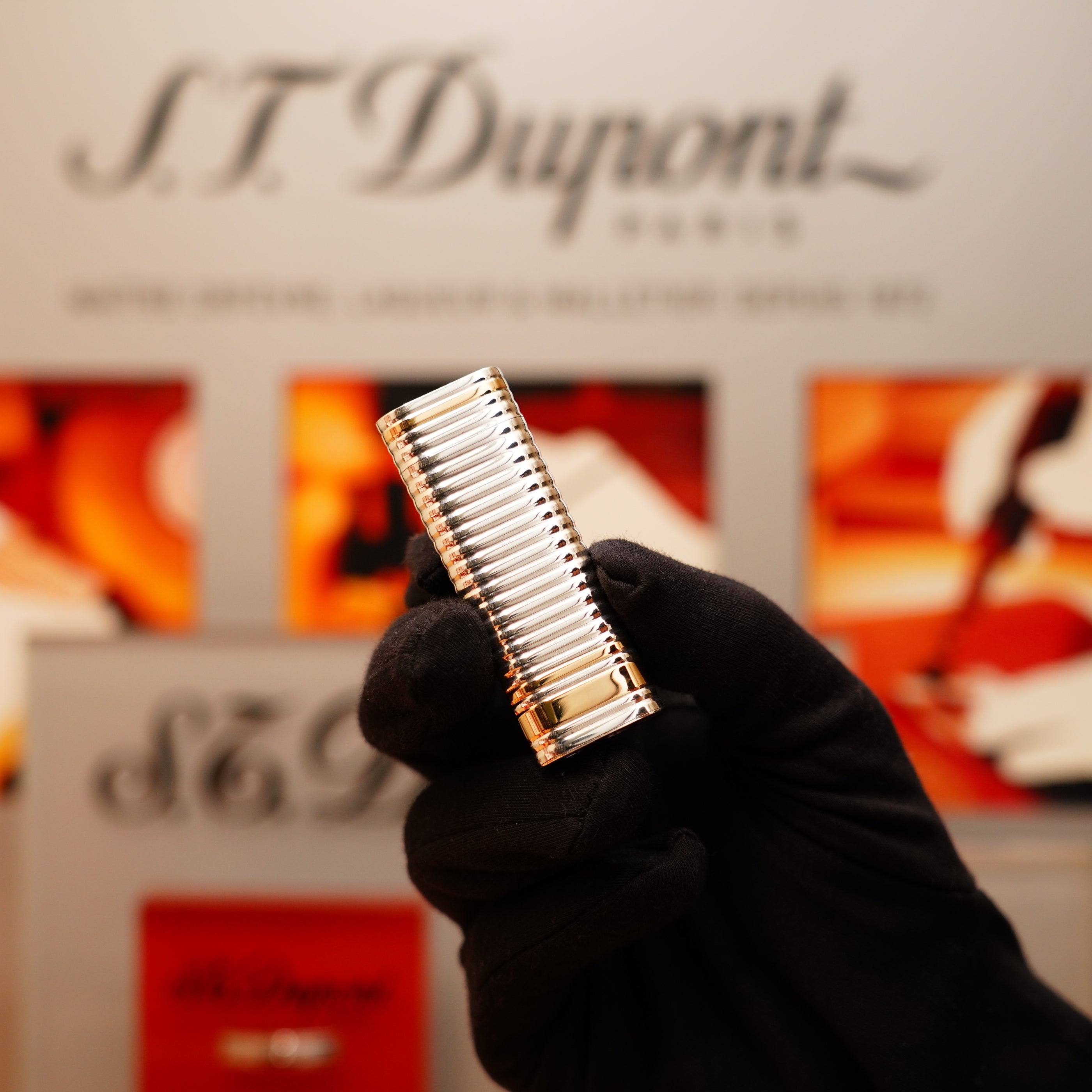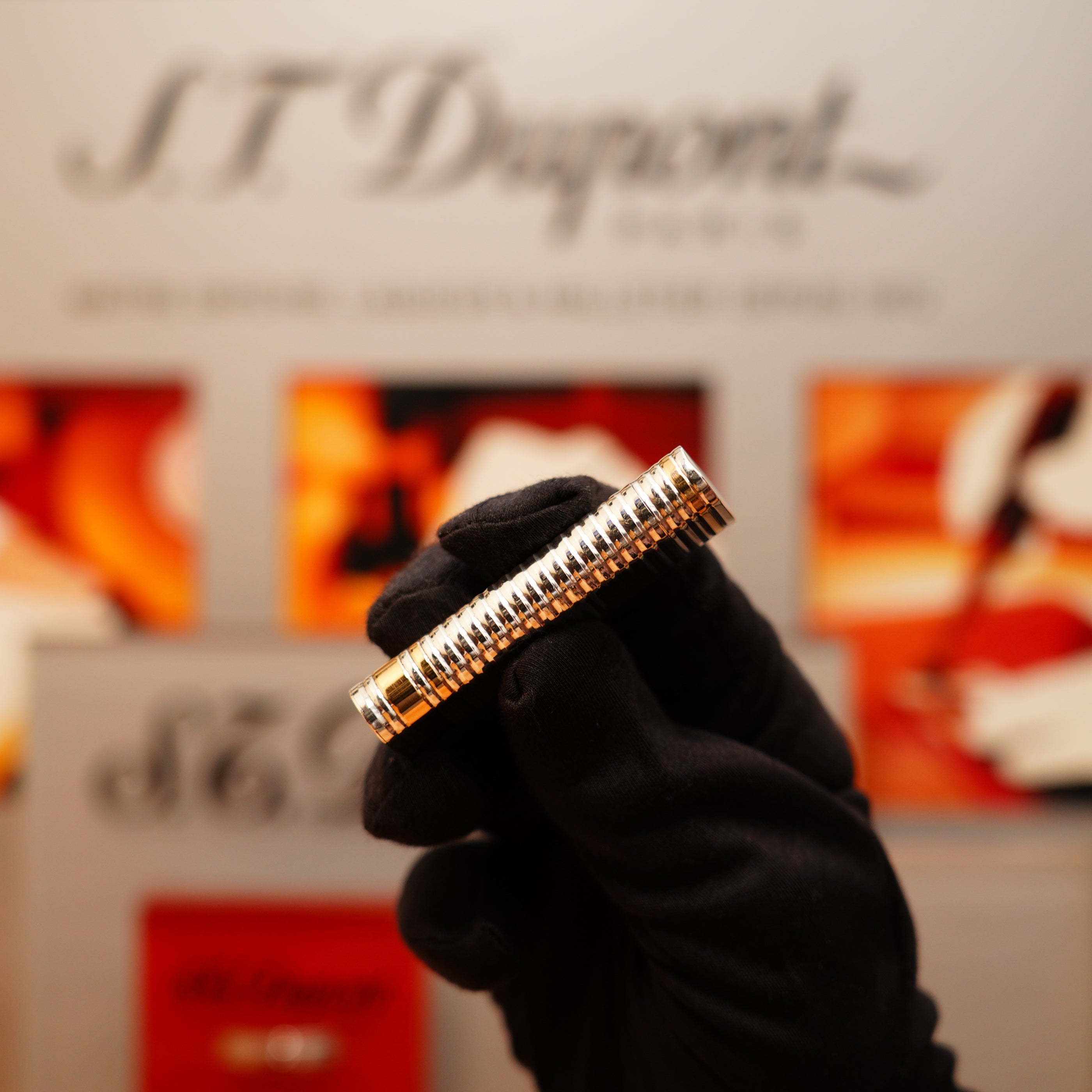This exquisite Vintage Extremely Rare Cartier Solid 925 Sterling Factory With 18k Solid Gold Bands Horizontal Pattern Lighter is a true collector’s piece, crafted in 1987 and representing one of Cartier’s rare Oval-shaped designs.