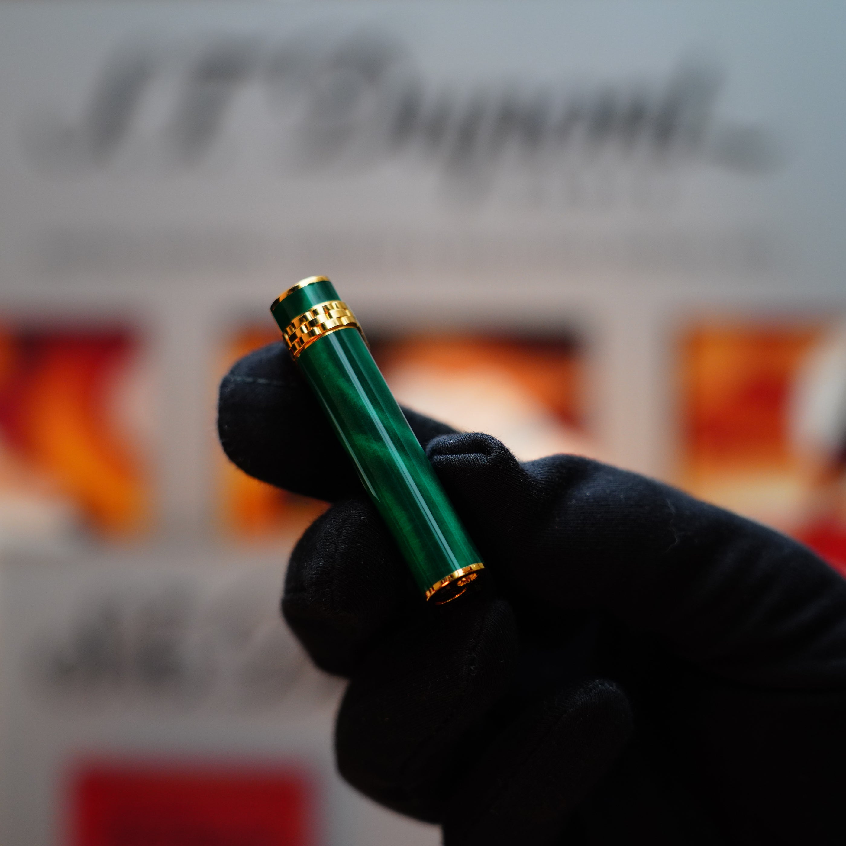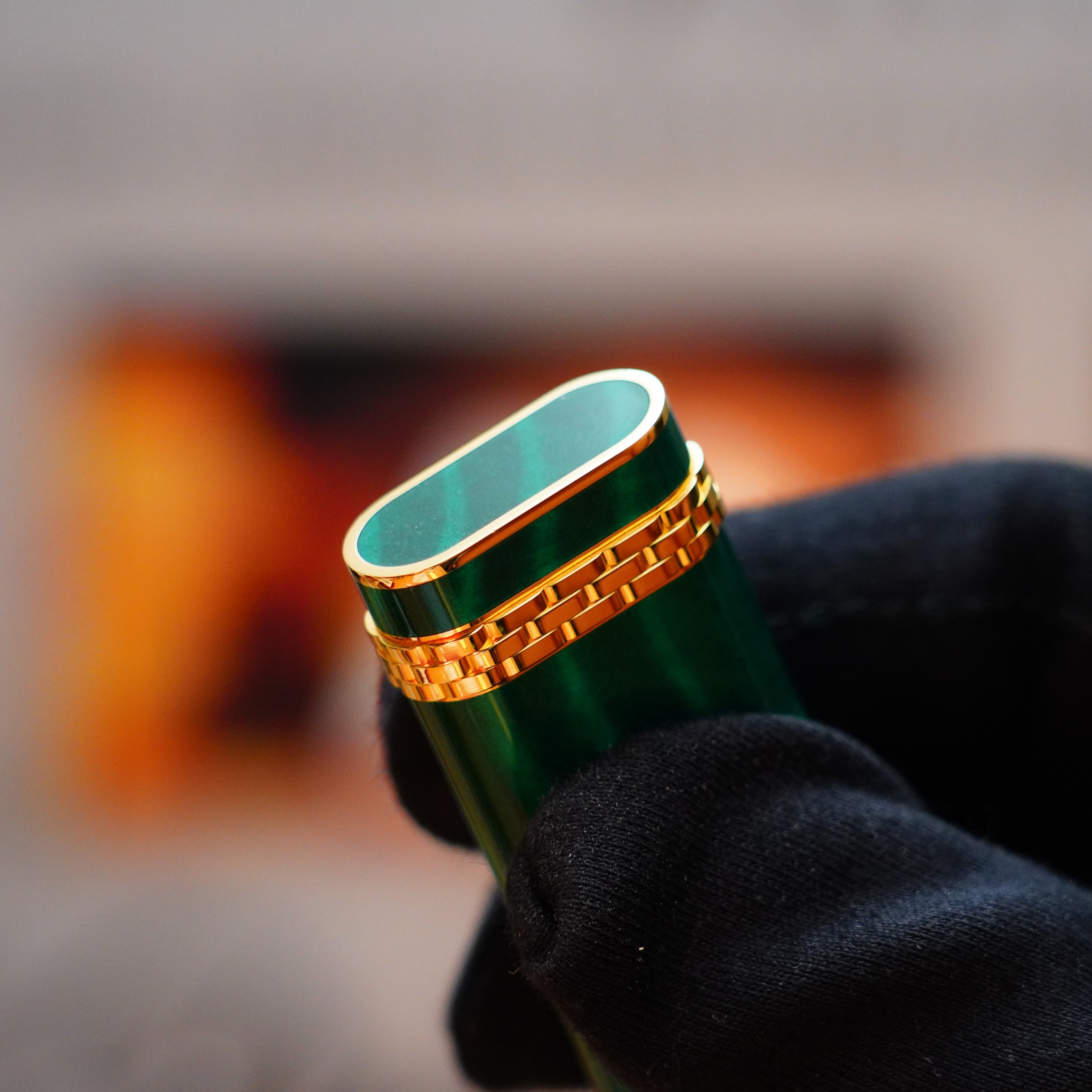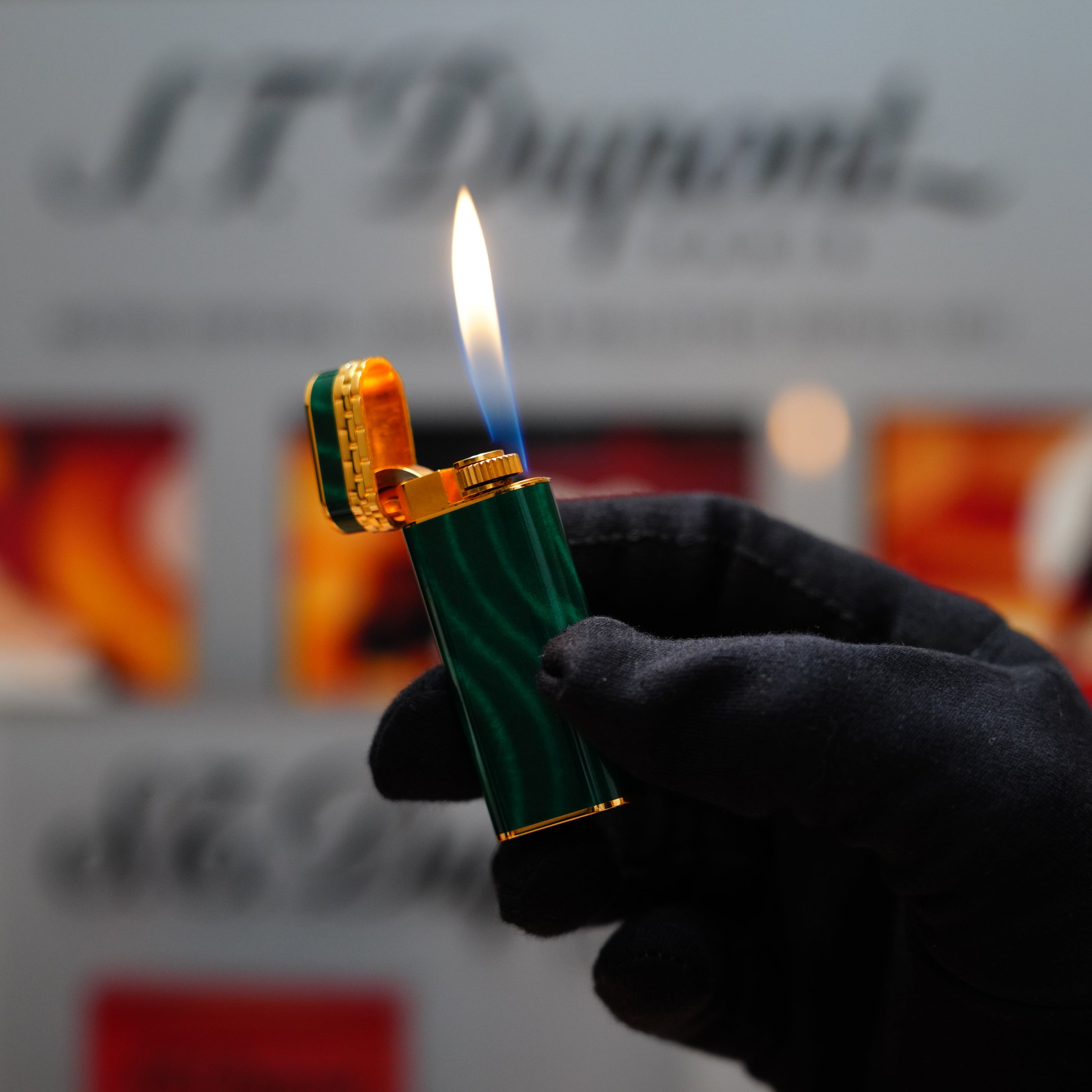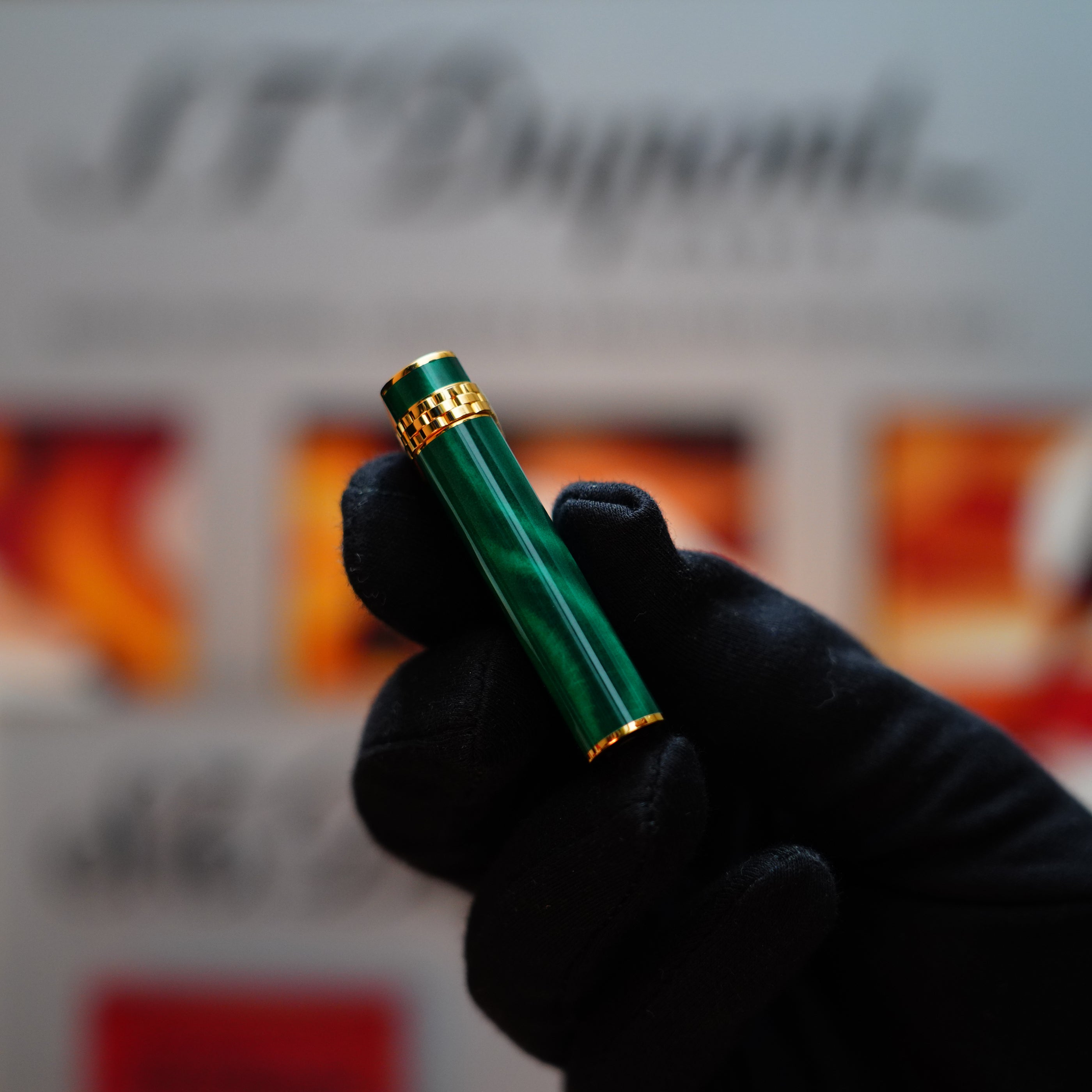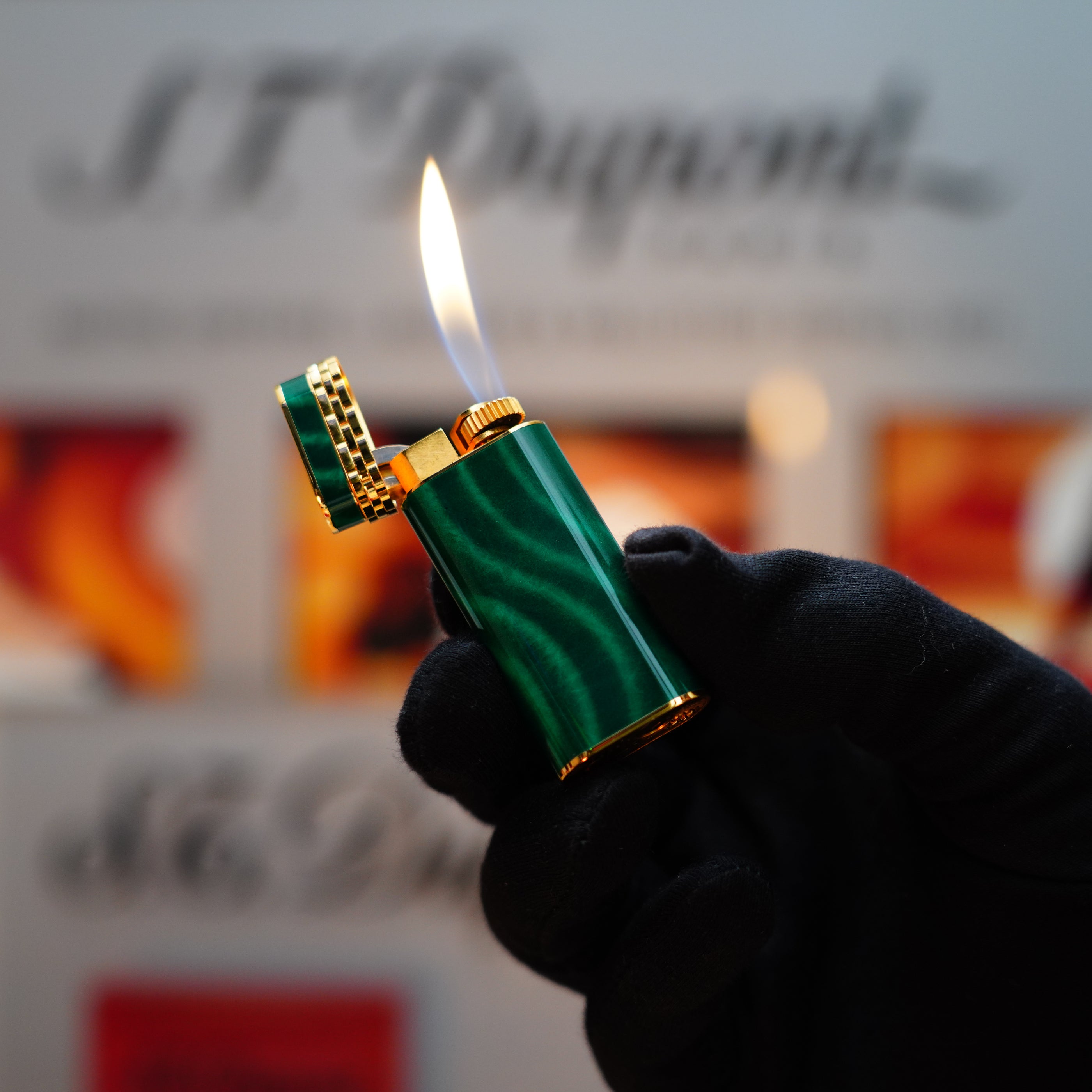 This vintage piece is a rare iconic Mini Size Malachite Gemstone with 18k Gold Ring on Door Lighter made by Cartier ,