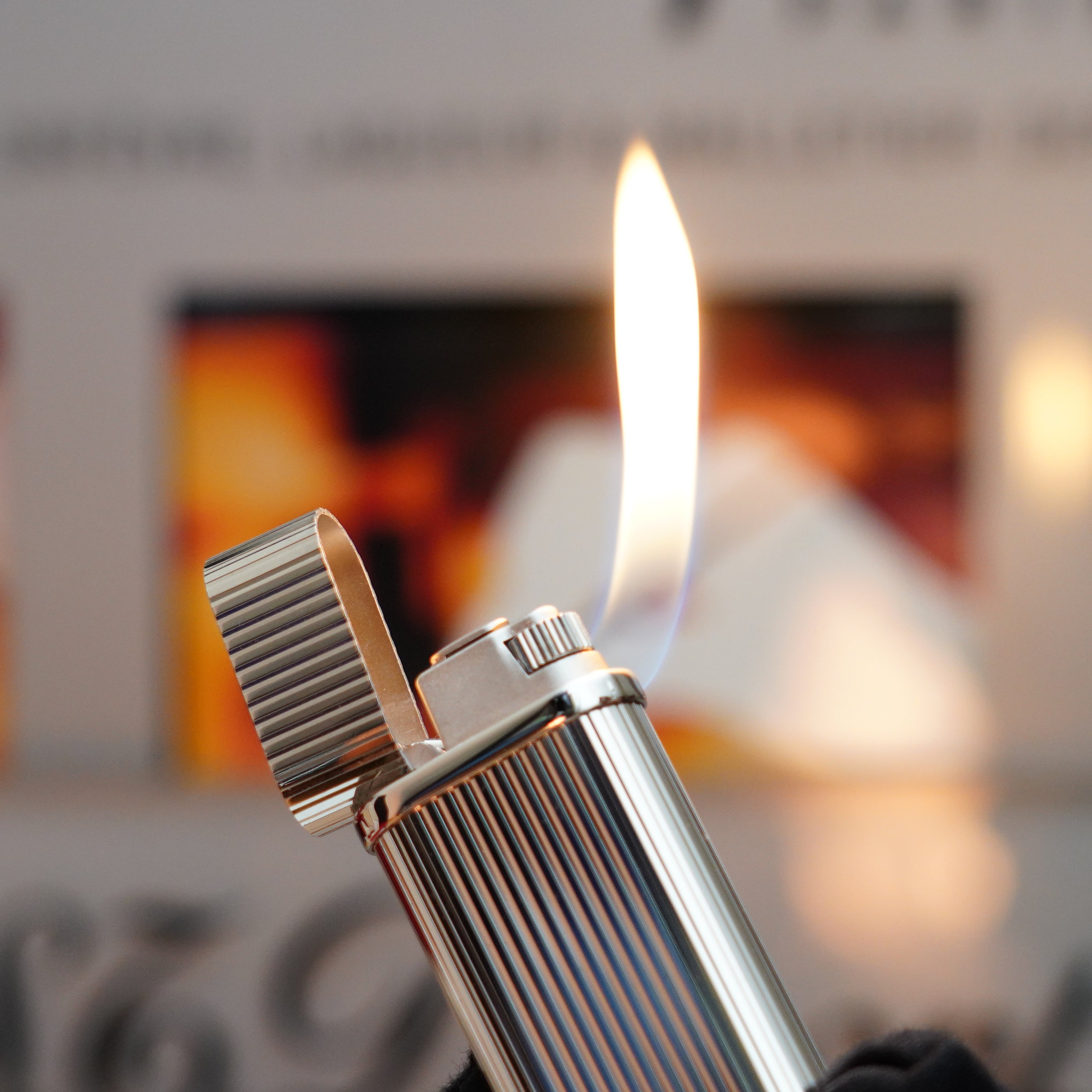 This particular table lighter has a cigar flame nozzle, which combines light and fire to create a unique flame that resembles two flames together.